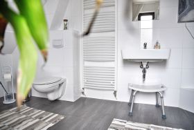 Im Badezimmer mit Fenster befindet sich eine Duschkabine, ein Handwaschbecken, WC und Handtuchtrockner. Das besondere ist die Dachterasse mit gemütlichen Möbeln. Hier genießen Sie den schönen Blick auf das schöne Örtchen. Oder Sie können auf der Liege im Garten entspannen. Für die schönen Abendstunden steht Ihnen ein Grillplatz zur Verfügung. Bettwäsche und Handtücher sind im Preis enthalten.
