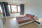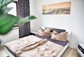 In ihrem Feriendomizil befinden sich zwei Schlafzimmer mit jeweils einem großzügigen Doppelbett (180 cm x 210 cm), das von zwei beidseitigen Nachttischen mit Leselampen umgeben ist. Desweiteren steht ihnen ein geräumiger Kleiderschrank mit Spiegeltüren, der ausreichend Platz bietet. Herzstück der Wohnung ist der 30 m² umfassende Wohn- und Schlafraum mit integrierter Küche und gemütlichem Essplatz.