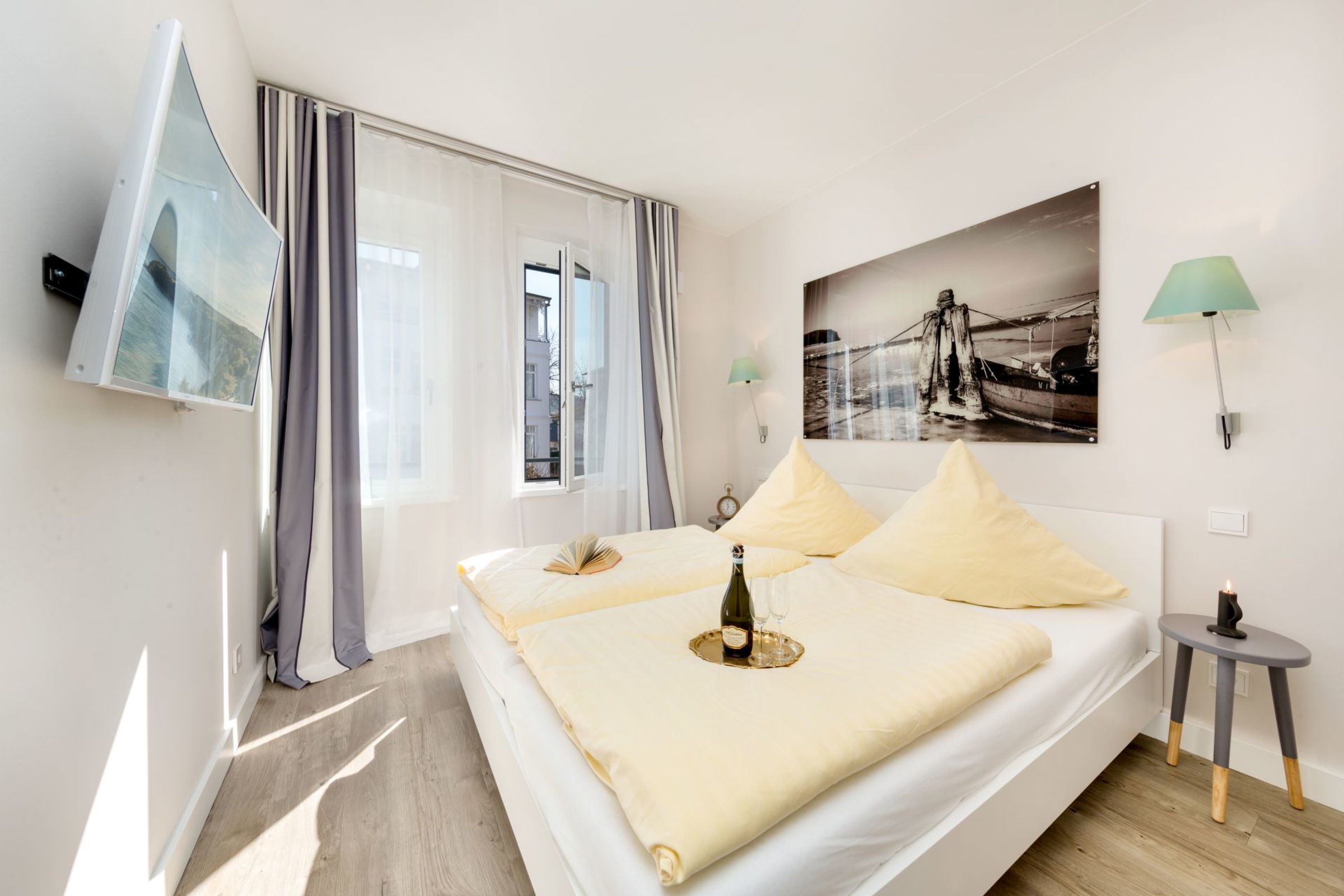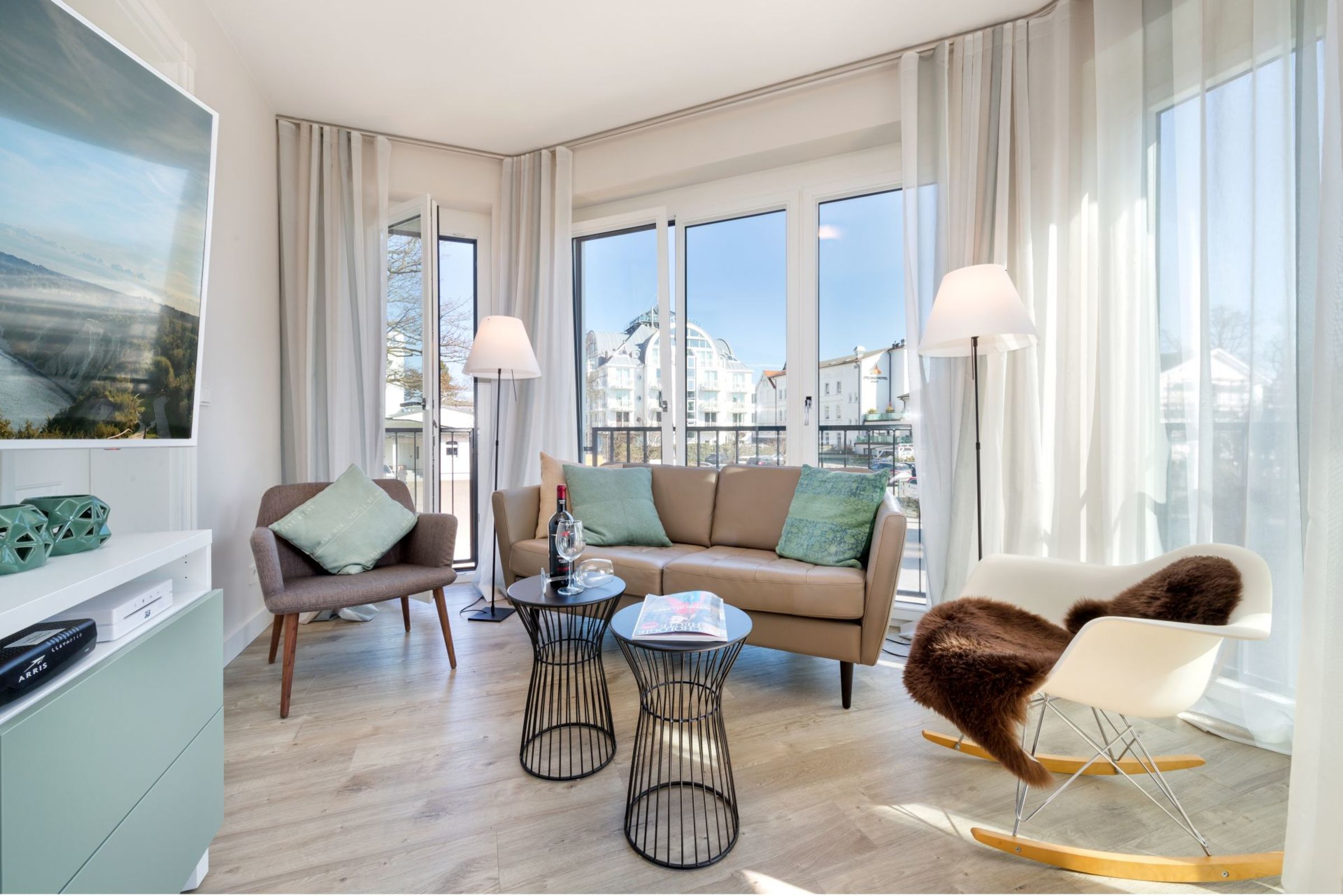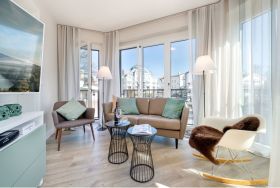 Sie wohnen in lichtdurchfluteten Luxus-Appartements die über große Balkone oder Terrassen verfügen. Die großzügigen Appartements verfügen häufig über 2 Bäder. Weiterhin erwarten Sie vollausgestattete Küchen mit Markengeräten, anspruchsvolles Interieur in den Wohnzimmern mit WLAN, Stereoanlagen und HDTV.