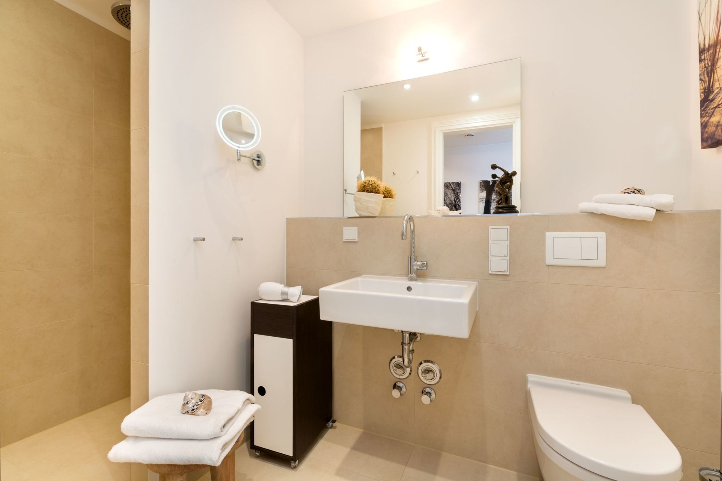 Ihren Pkw parken Sie in der Tiefgarage und mit dem Fahrstuhl erreichen Sie komfortabel Ihr Appartement. Die hauseigene Sauna lädt nach ausgedehnten Spaziergängen zur Entspannung ein.