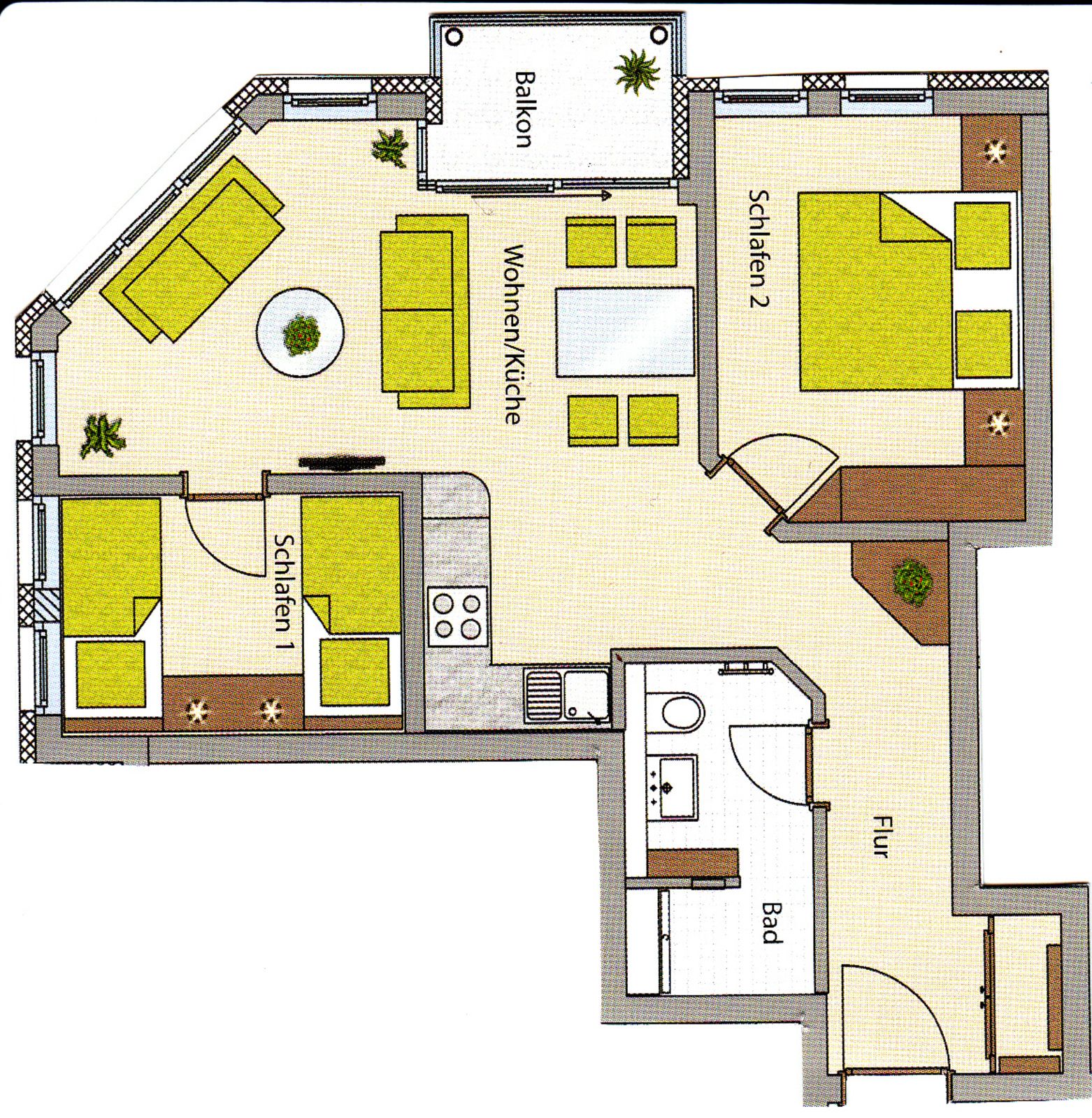 2 Schlafzimmer, 1 Wohnzimmer