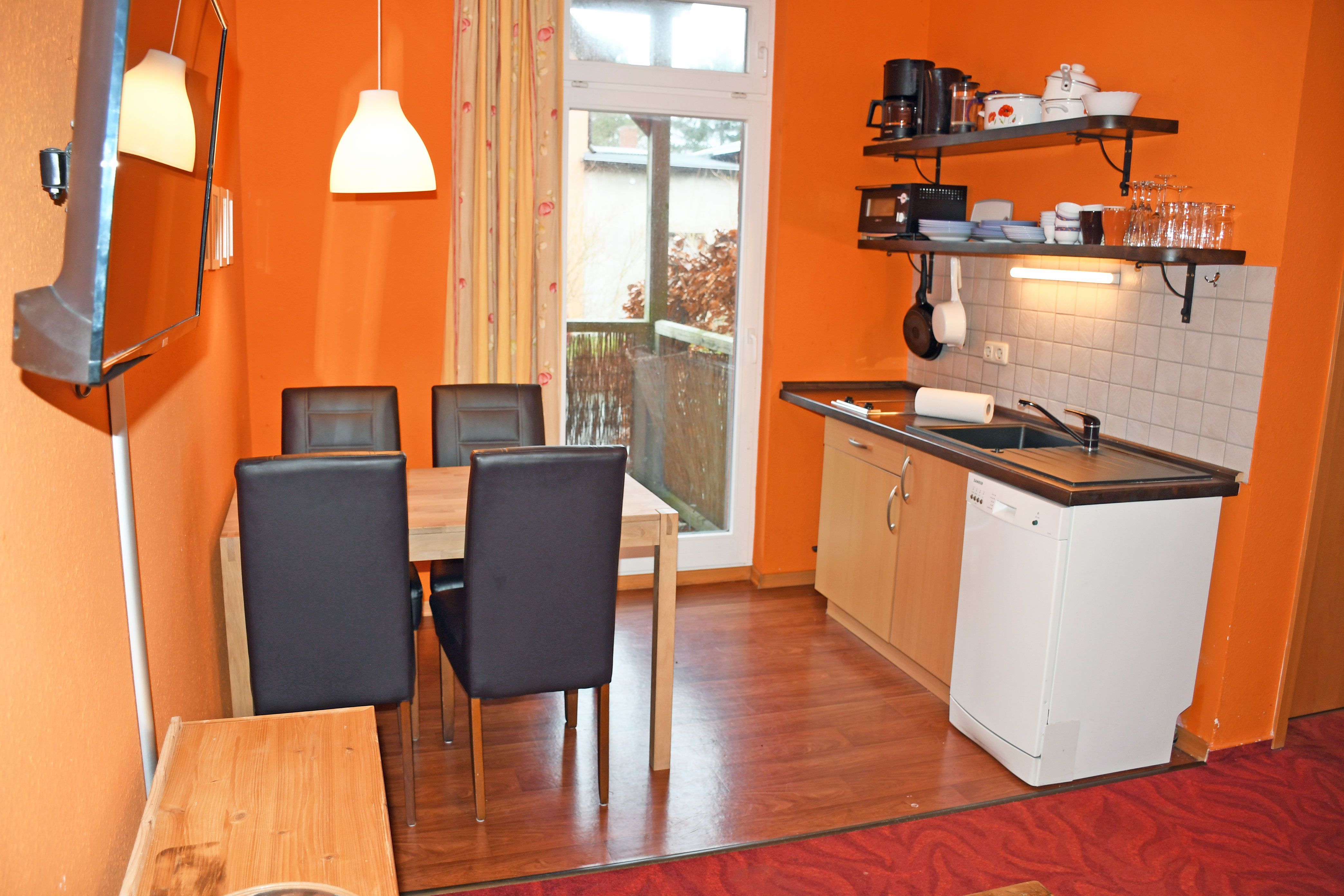 Die Pantry-Küche ist ausgestattet: 2 P. E-Herd, Spülmaschine, Minibackofen, Kaffeemaschine, Wasserkocher, 6-Set-Ess-Geschirr und Besteck, kleine Auswahl an Gläsern, kleine Topfsammlung, ein paar kleine Küchenhelfer --- Grundausstattung!!!
