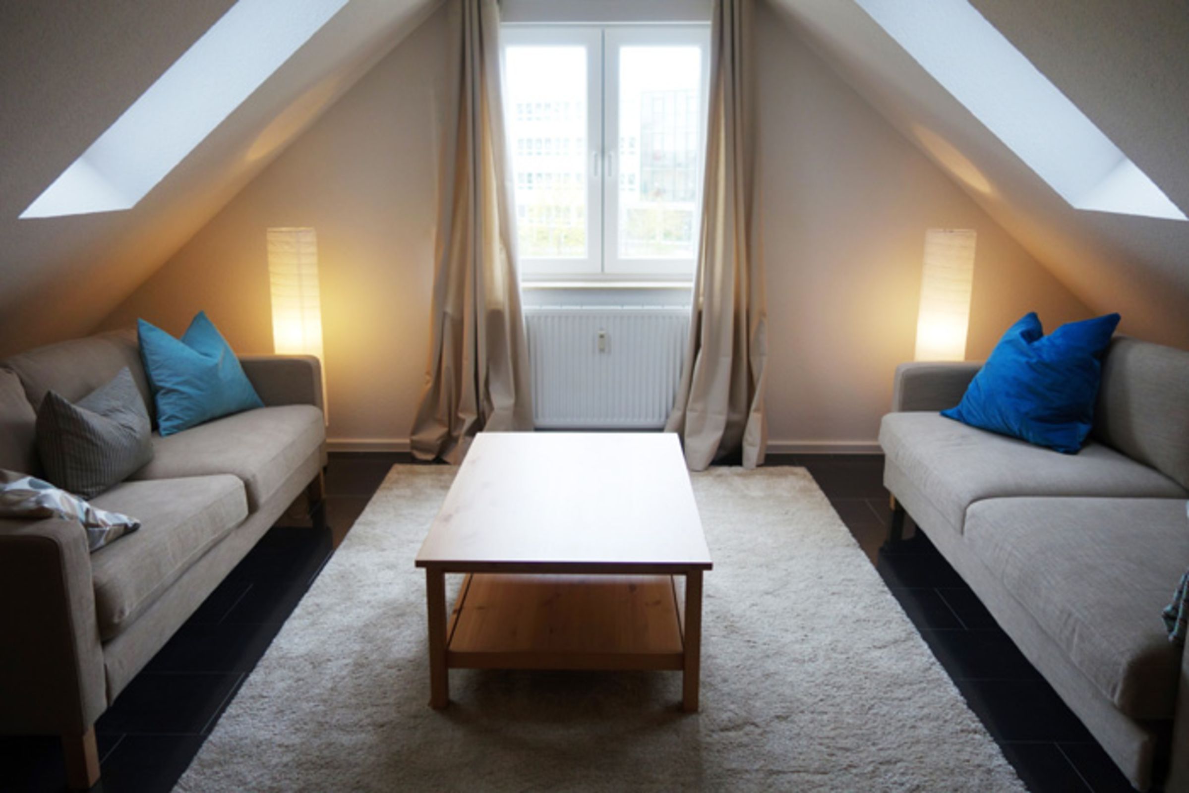 Unsere moderne 3-Zi-Maisonette-Wohnung – direkt gegenüber des Bahnhofes – ist trotz ihrer zentralen Lage ruhig gelegen.
