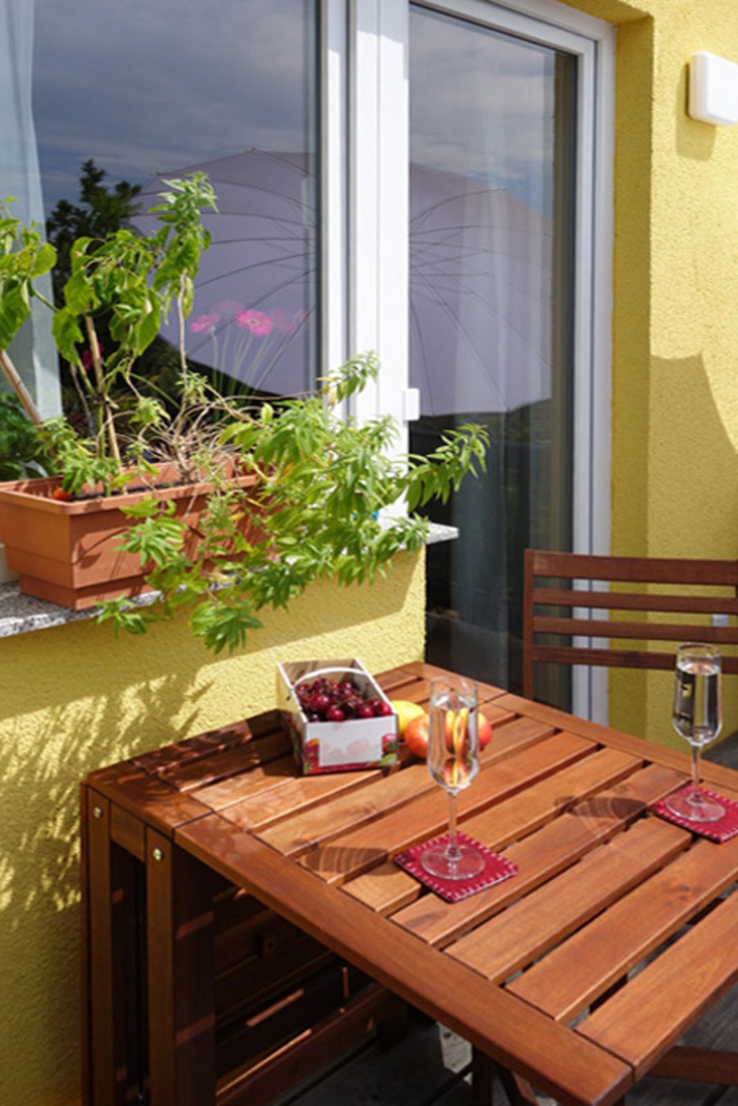 Sonnenbalkon mit Gartenmöbeln (Tisch und 4 Stühle)
