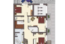 • 1 Terrasse am Schlafzimmer im EG angrenzend für 2 Personen: 2m x 4m