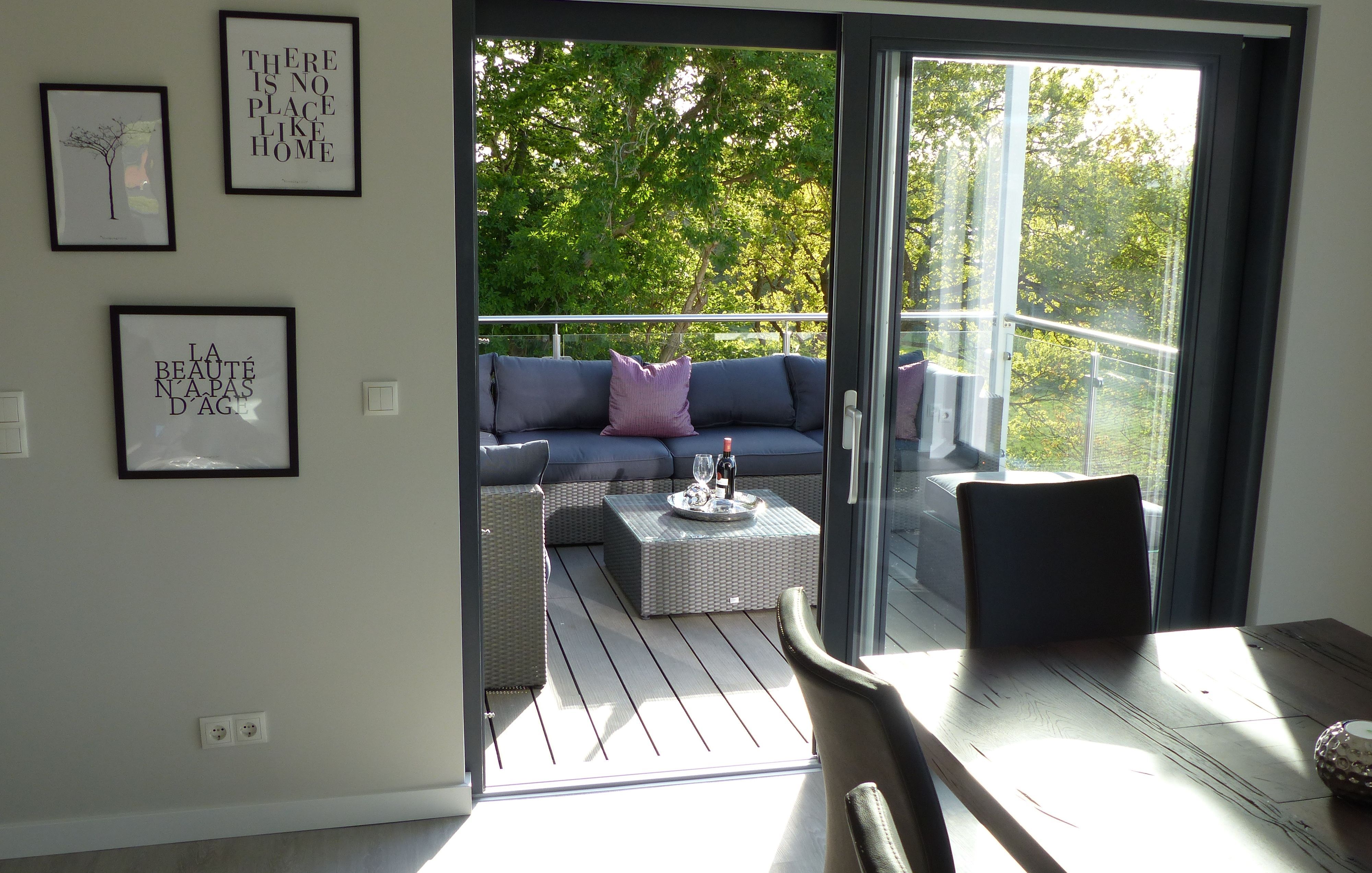 • 1 Dachterrasse 3,90m x 3,30m mit Blick auf den Schmachter See mit Loungemöbel