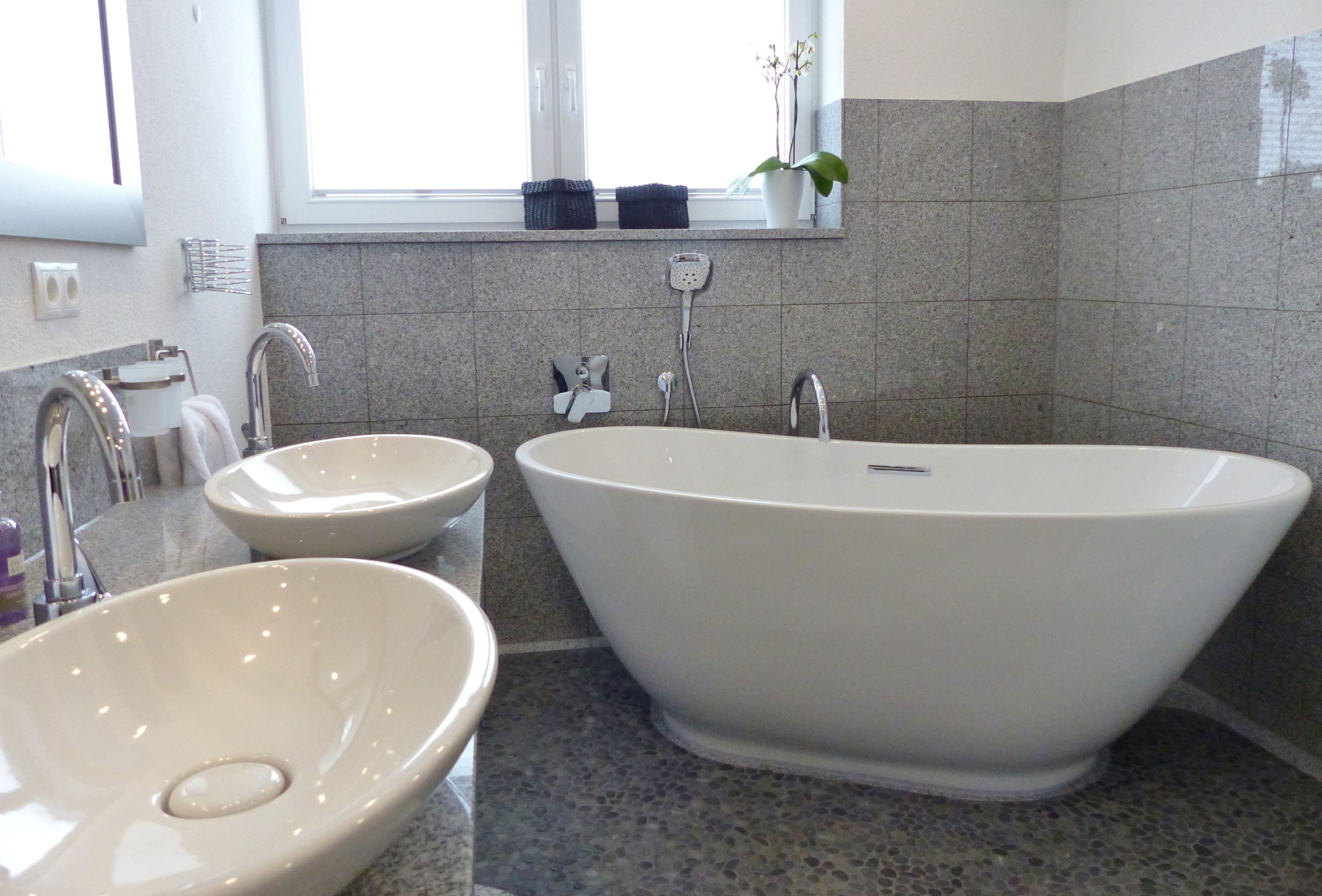 • Badezimmer 2 - WC , Dusche & Badewanne - 1 freistehende Designbadewanne im EG-Bad