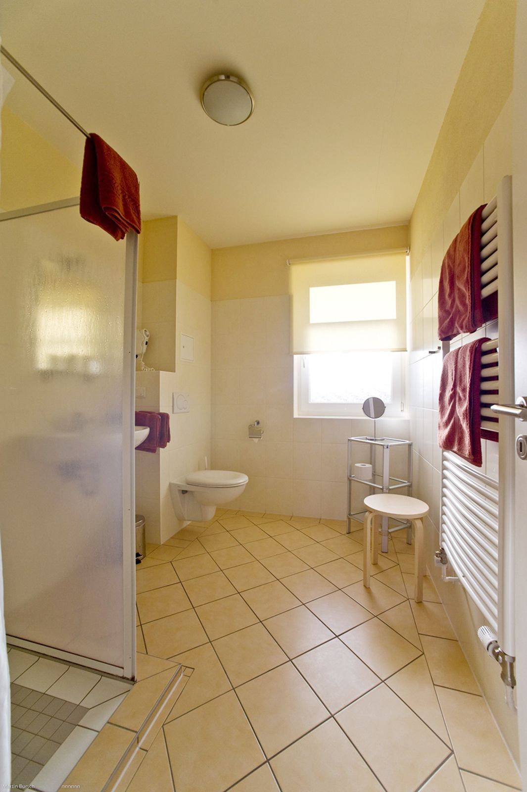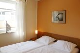 Wohnzimmer mit bequemer Couch und Sessel, Essecke, kleine Leseecke, SAT-TV, Kompaktstereoanlage mit Radio und CD, Einbauküche mit gehobener Ausstattung sowie Ceranfeld, Backofen, Geschirrspülmaschine, Dunstabzug und Kühlschrank, Schlafzimmer mit Doppelbett (1,60 m x 2 m), Kleiderschrank, Kommode und 2 Nachttischen, Großes Badezimmer mit ebenerdiger Dusche, WC, Haartrockner, Kosmetikspiegel, Handtuchheizung, Fußbodenheizung, Balkon Ost mit Blick in den Garten, ausgestattet mit Teakholzmöbeln.