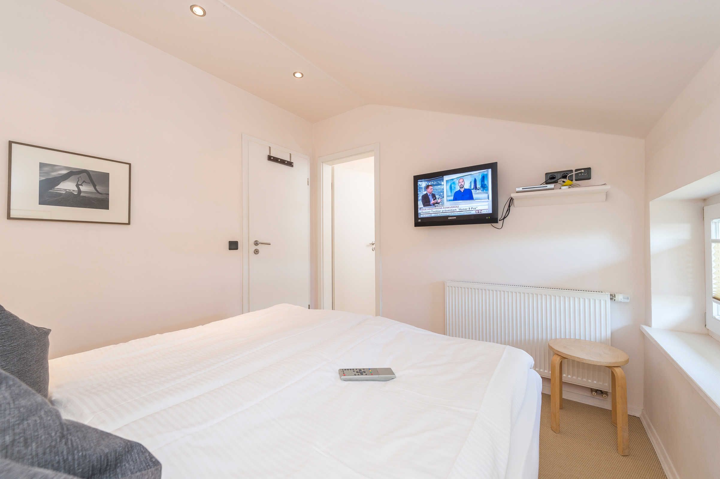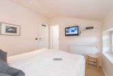 • Schlafzimmer mit Doppelbett (1,60 m x 2 m), LED-Fernseher und begehbarem Kleiderschrank