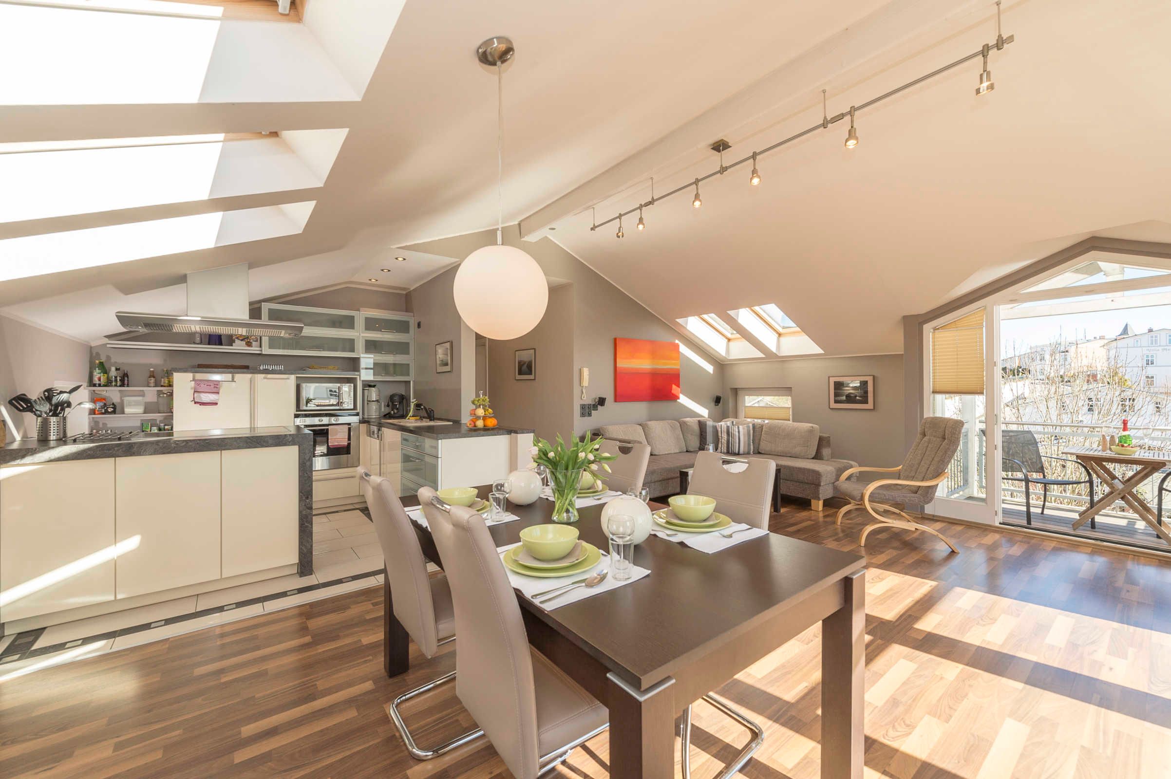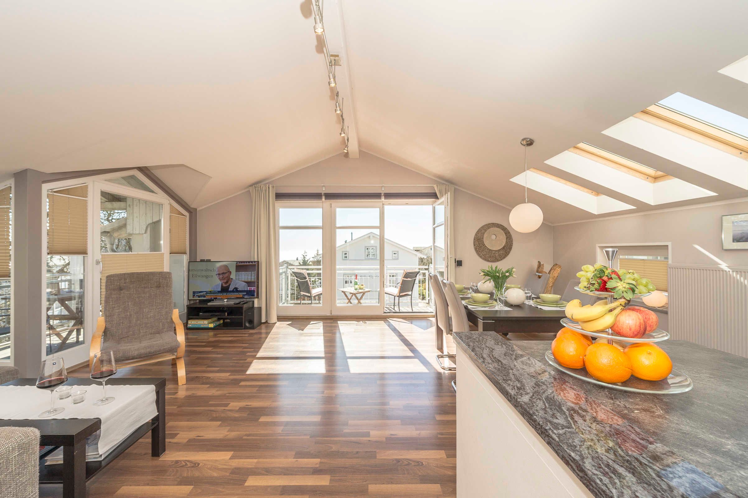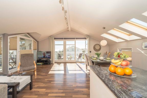 Luxus für die ganze Familie - Seeblick inklusive - 3-Raum-Wohnung im Dachgeschoss, 80 qm, Wohnraum mit integrierter Einbauküche, 2 Schlafzimmer, Bad, Abstellraum, 2 Balkone, mit Ostseeblick, Fußbodenheizung in allen Räumen, Internetzugang