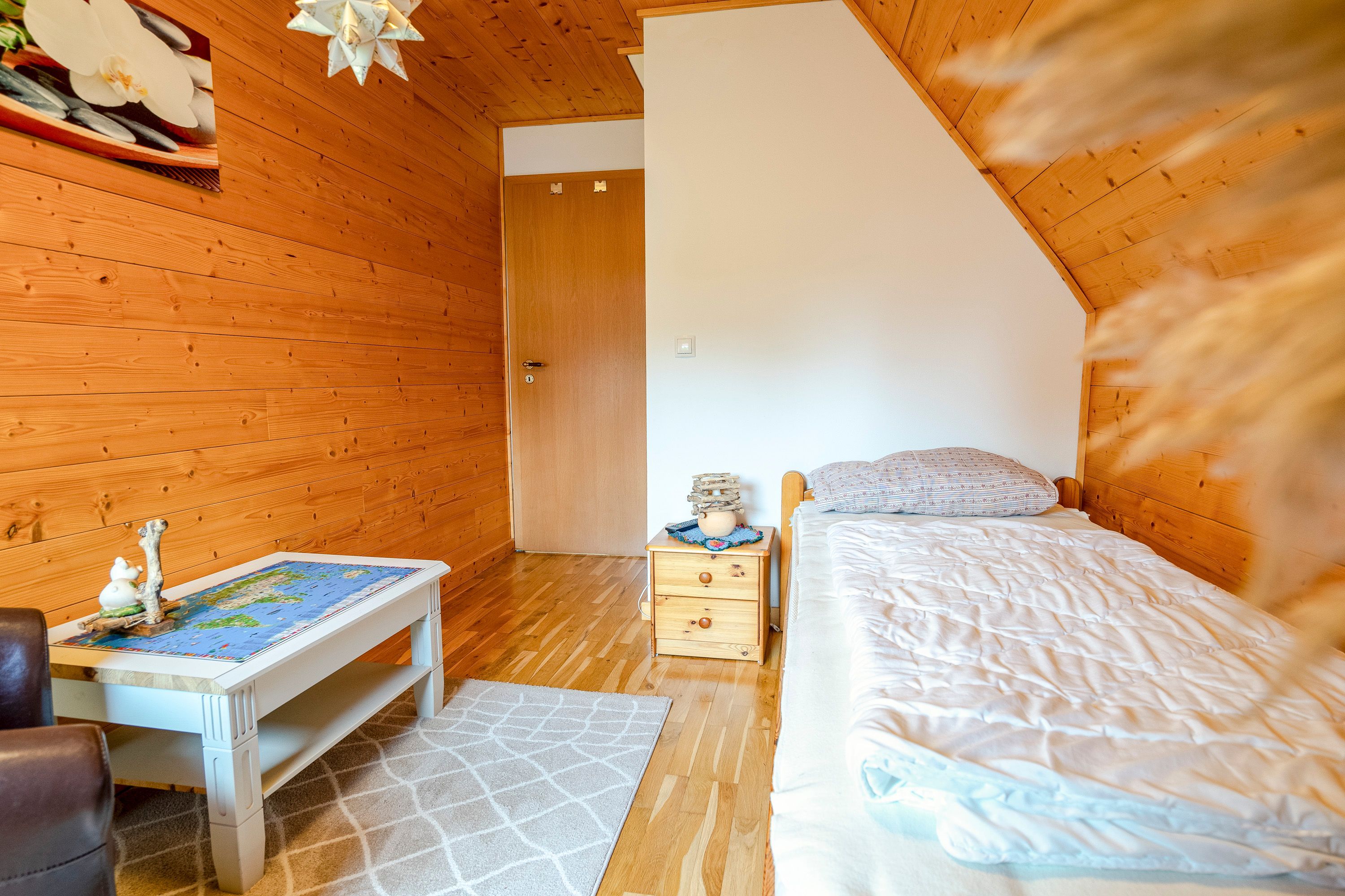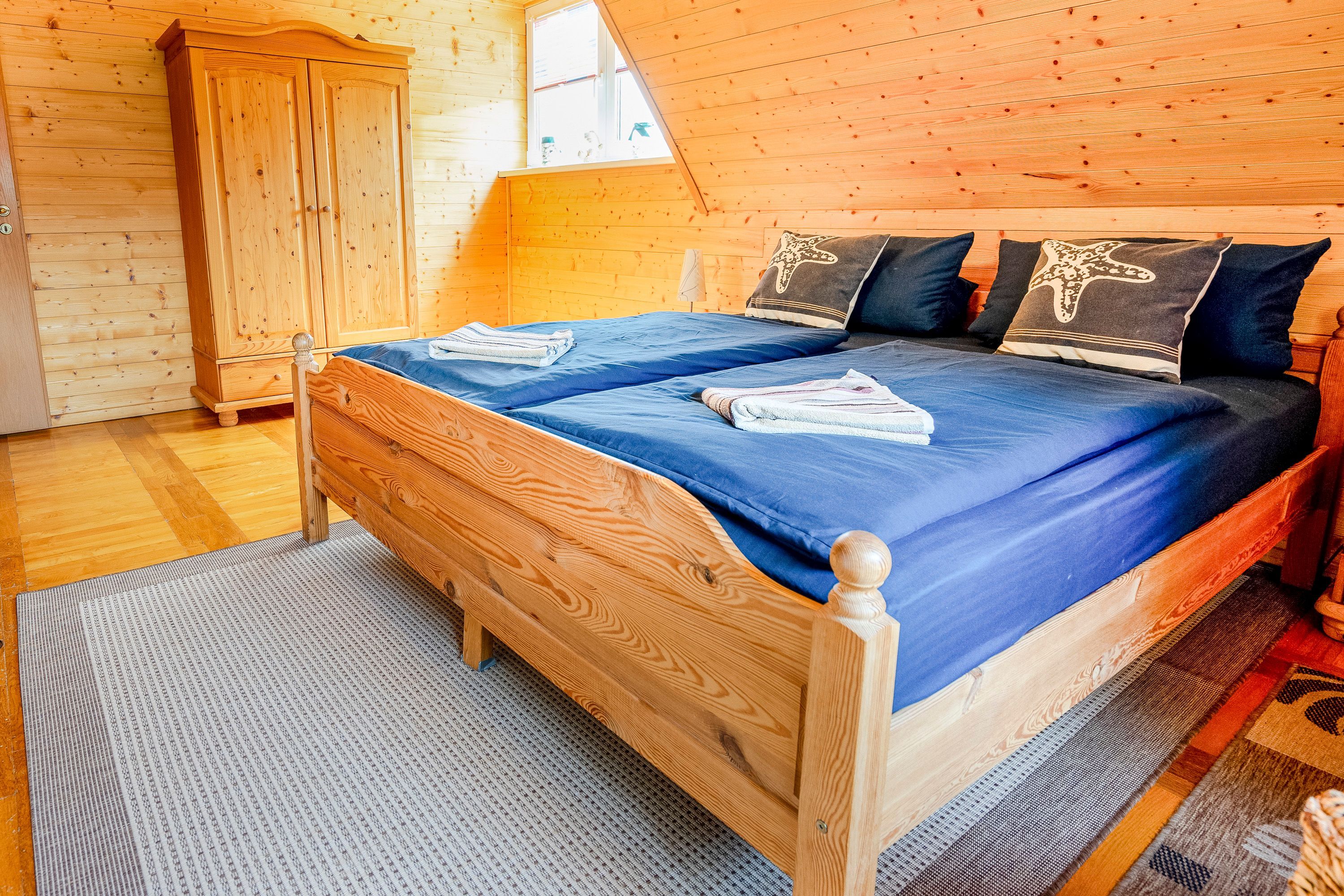 Die 65m² Ferienwohnung für 2 Personen befindet sich im Dachgeschoss des Reetdachhauses. Die Ferienwohnung besteht aus einem Wohnzimmer mit Couch, TV, Essbereich mit Esstisch und einer Küchenzeile (2 Kochplatten, Backofen, Kaffeemaschine, Wasserkocher, Toaster). Weiterhin befinden sich in der Ferienwohnung ein separates Schlafzimmer mit Doppelbett, Kleiderschrank und TV, ein weiteres Schlafzimmer mit Einzelbett, Kommode und TV sowie ein Badezimmer mit Dusche und WC. Die einzelnen Räume sind über den offenen Flur zu erreichen. Ein Parkplatz steht auf dem Hinterhof kostenfrei zur Verfügung. Internet-WLAN ist kostenfrei vorhanden.