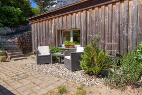Auf dem Hinterhof befindet sich die 30m² Ferienwohnung Sanddorn mit Platz für 2 Personen.