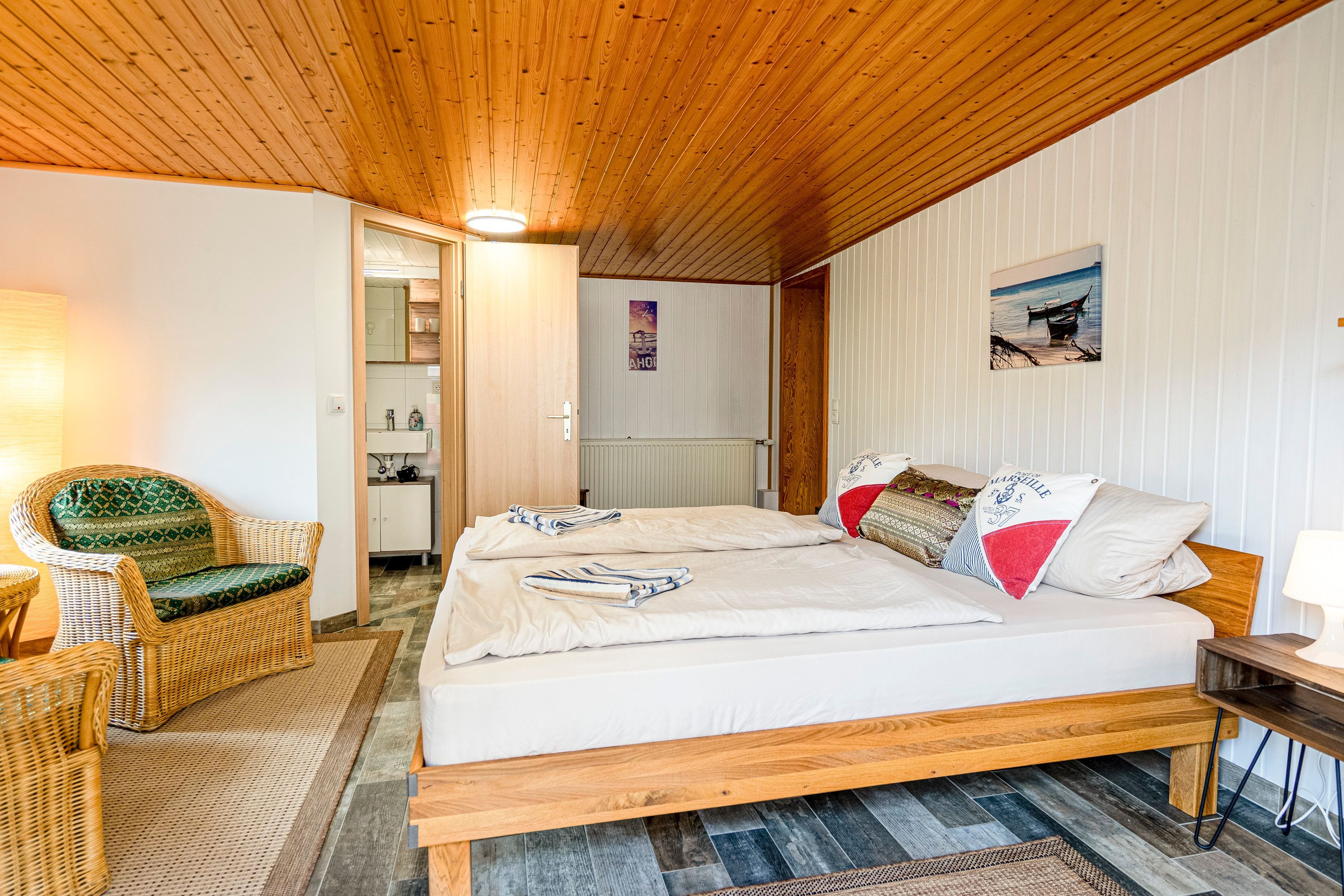 Die Ferienwohnung Sanddorn besteht aus einem Schlafzimmer Doppelbett, TV und kleiner Sitzecke, einer offenen Küche mit Herd, Kühlschrank, Spülmaschine, Mikrowelle, Toaster, Kaffeemaschine und Wasserkocher sowie einem Badezimmer mit Dusche und WC. Ein Parkplatz steht auf dem Hinterhof des Haupthauses zur Verfügung. Internet-WLAN ist kostenfrei vorhanden.