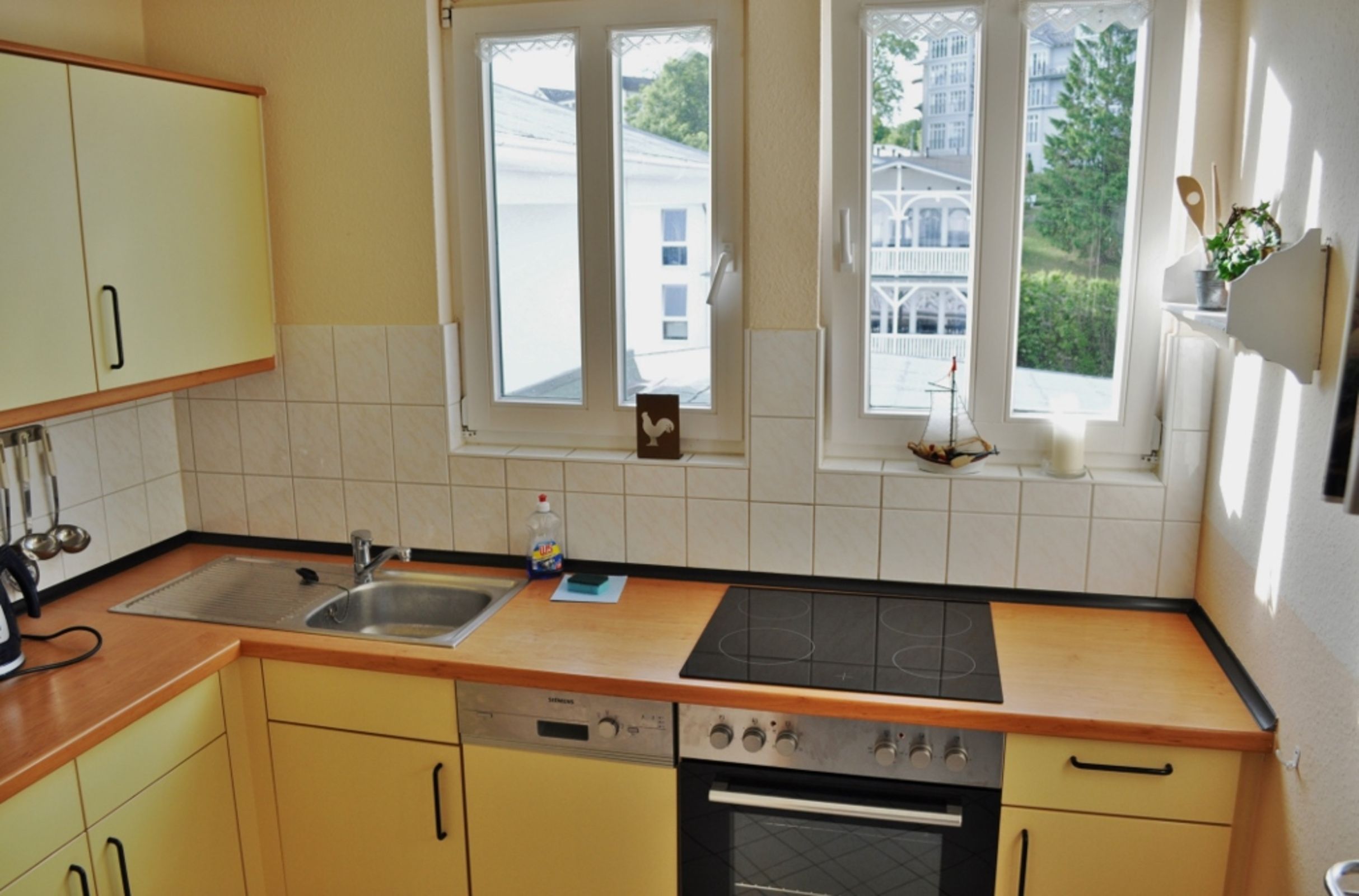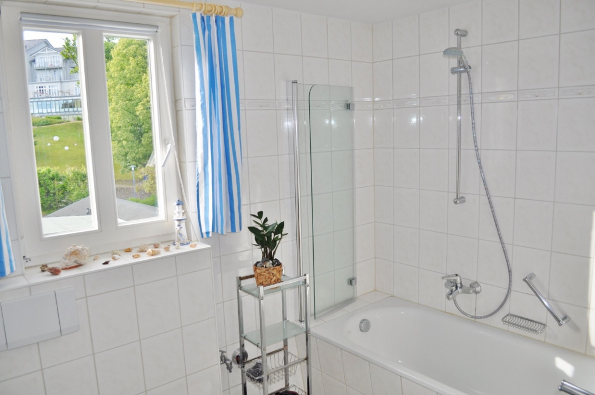 Die gemütliche Ferienwohnung befindet sich über den Dächern von Göhren im Dachgeschoss des Hauses - kein Aufzug im Haus. Von dort können Sie auf das Meer schauen.