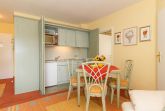 Die Wohnung ist im 1. Obergeschoss gelegen und hat einen Balkon zur Ostseite. Die Wohnungsgröße beträgt ca. 48 qm und teilt sich in Wohnzimmer, Küchenzeile, Schlafzimmer, kl. Kinderzimmer, Bad mit Wanne und Flur. Im Wohnzimmer befindet sich ein Esstisch mit 4 Stühlen, eine Küchenzeile, Kühlschrank, Ceranfeld, Mikrowelle mit Backofen, Tresor, HD-Sat TV und Telefon.