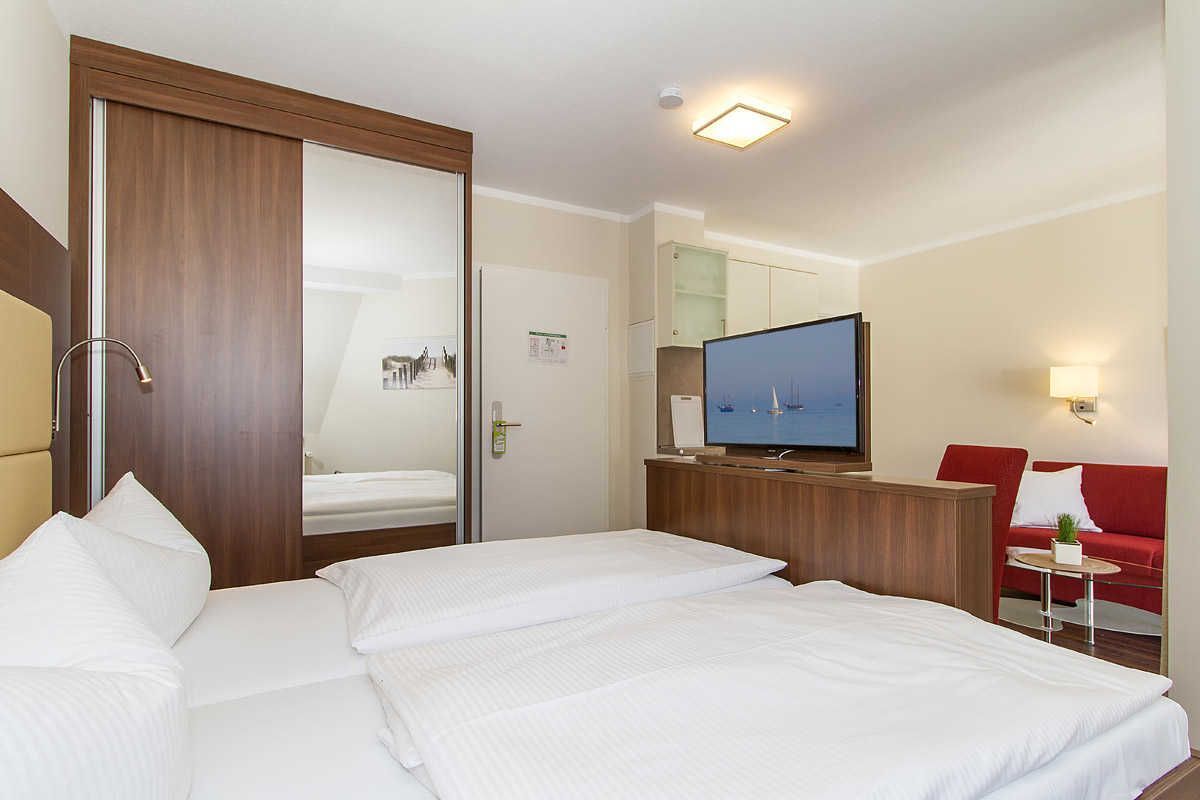 Zum Strand sind es nur ca. 50 Meter, der Stadtwald liegt hinterm Haus und zur Seebrücke etwa 500 Meter. Durch die Anbindung zum Hotel Am Strand haben Sie die Möglichkeit, Frühstücksbrötchen und Zeitung direkt an die Tür geliefert zu bekommen. Weitere Leistungen, wie zum Beispiel die Nutzung der Sauna oder auch das Frühstücksbüffet sind im Hotel am Strand zu buchbar.