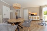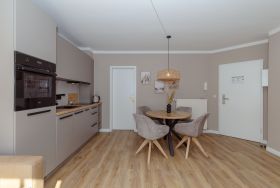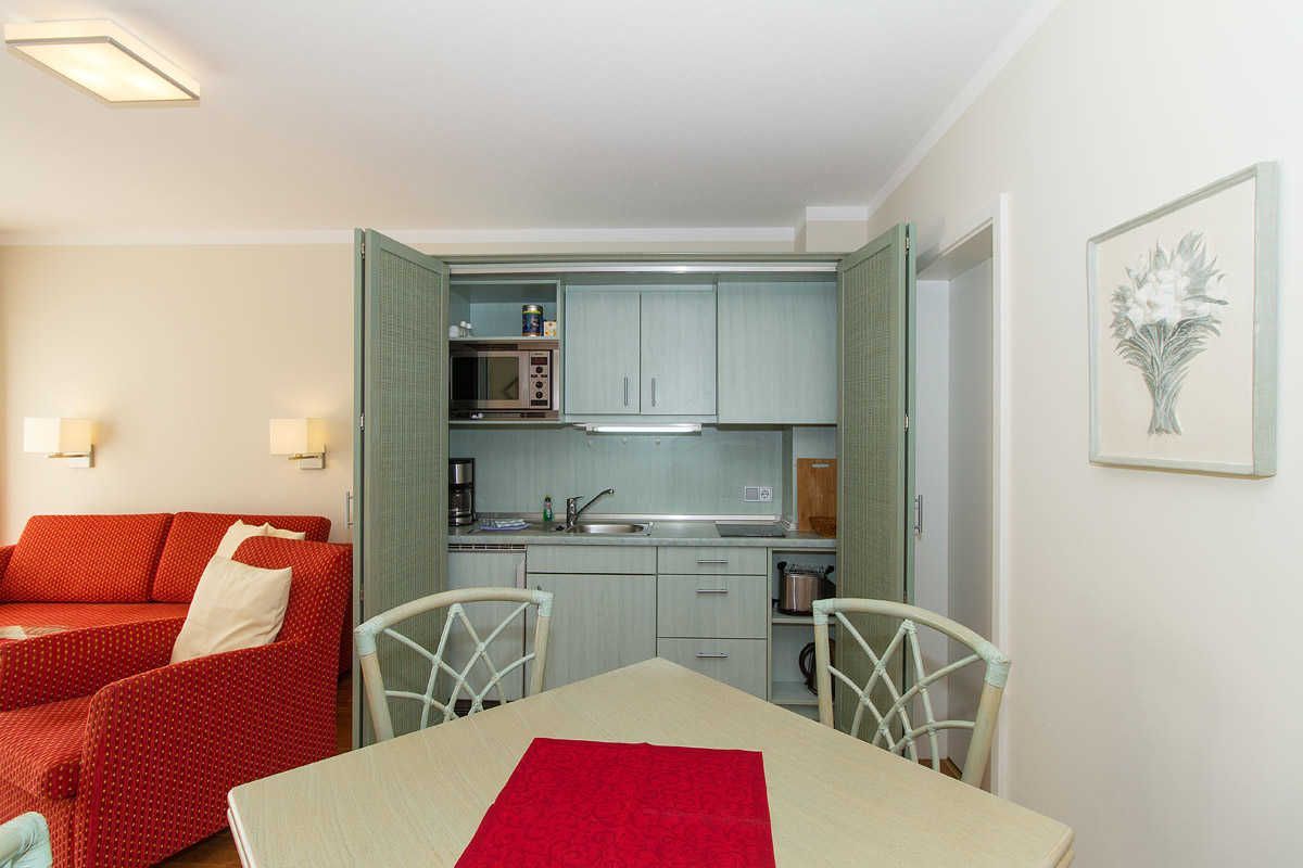 Die Wohnung ist im 3. Obergeschoss gelegen und hat einen Balkon zur Südseite. Die Wohnungsgröße beträgt ca. 45 qm und teilt sich in Wohnzimmer, Küchenzeile, Schlafzimmer, kl. Kinderzimmer, Duschbad. Im Wohnzimmer befindet sich ein Esstisch mit 4 Stühlen, eine Küchenzeile, Kühlschrank, Caranfeld, Mikrowelle mit Backofen, Tresor, HD-Sat TV und Telefon.