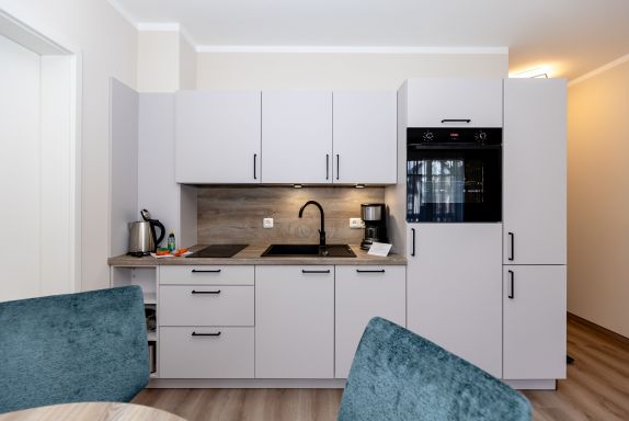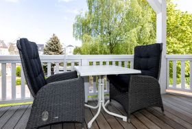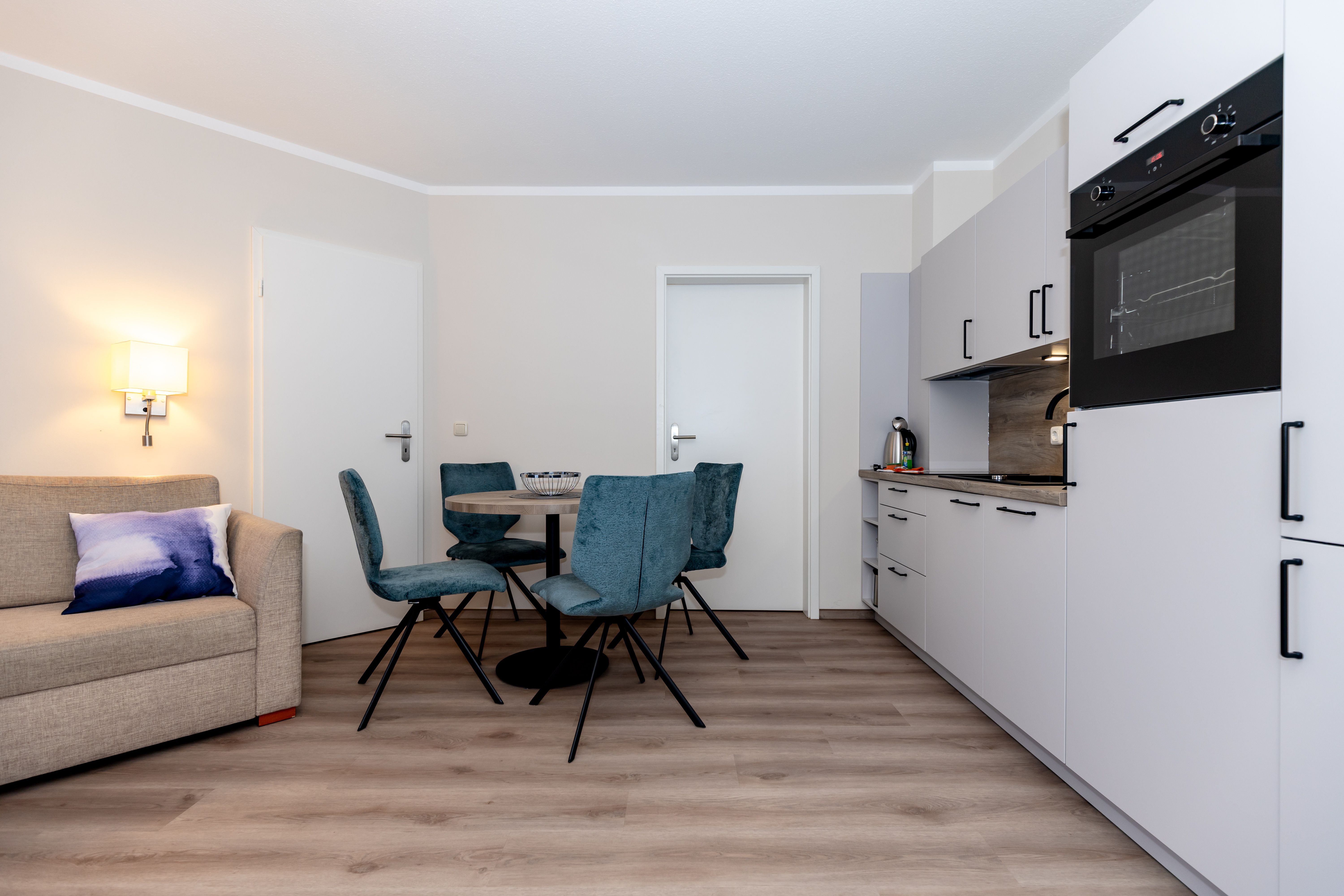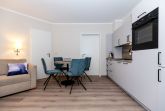 Die Wohnung ist im 2. Obergeschoss gelegen und hat einen Balkon zur Ostseite. Die Wohnungsgröße beträgt ca. 48 qm und teilt sich in Wohnzimmer, Küche, Schlafzimmer, kl. Kinderzimmer, Bad mit Dusche. Im Wohnzimmer befindet sich ein Esstisch mit 4 Stühlen, Küche mit 2 Kochfeldern, Kühlschrank, Geschirrspüler, Tresor, HD-Sat TV und Telefon.