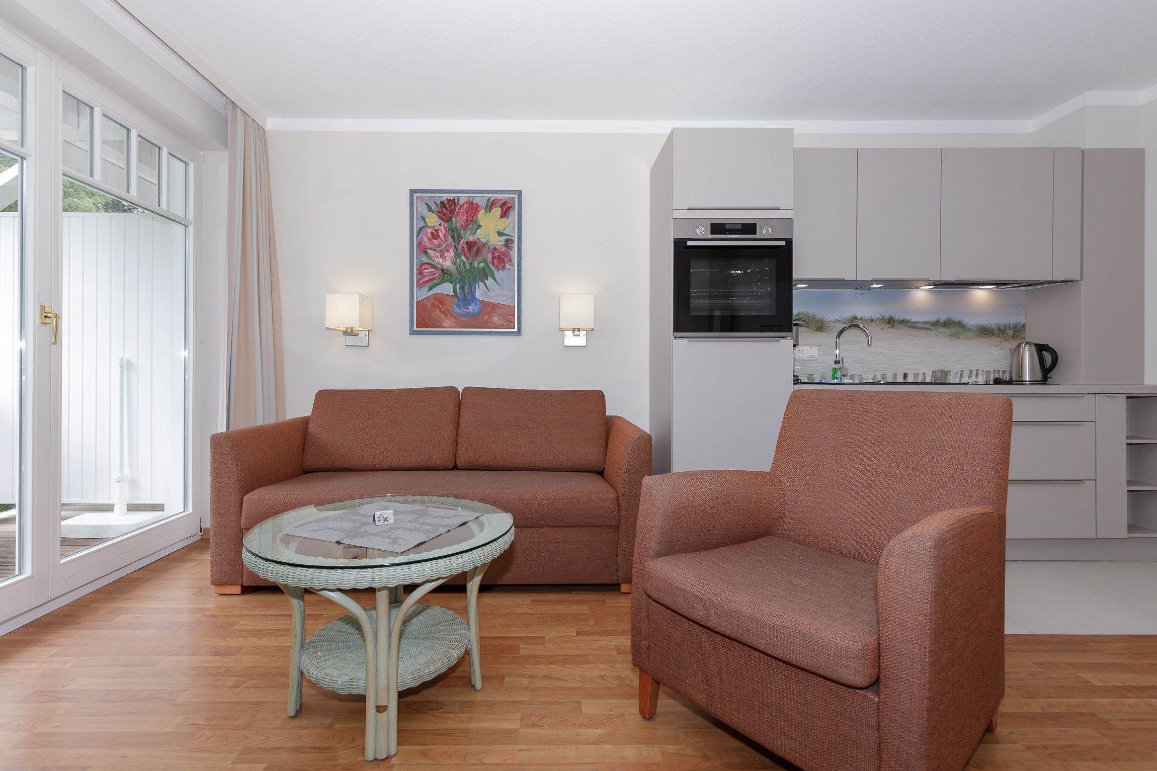 Zum Strand sind es nur ca. 50 Meter, der Stadtwald liegt hinterm Haus und zur Seebrücke etwa 500 Meter. Durch die Anbindung zum Hotel Am Strand haben Sie die Möglichkeit, Frühstücksbrötchen und Zeitung direkt an die Tür geliefert zu bekommen. Weitere Leistungen, wie zum Beispiel die Nutzung der Sauna oder auch das Frühstücksbüffet sind im Hotel am Strand zu buchbar.