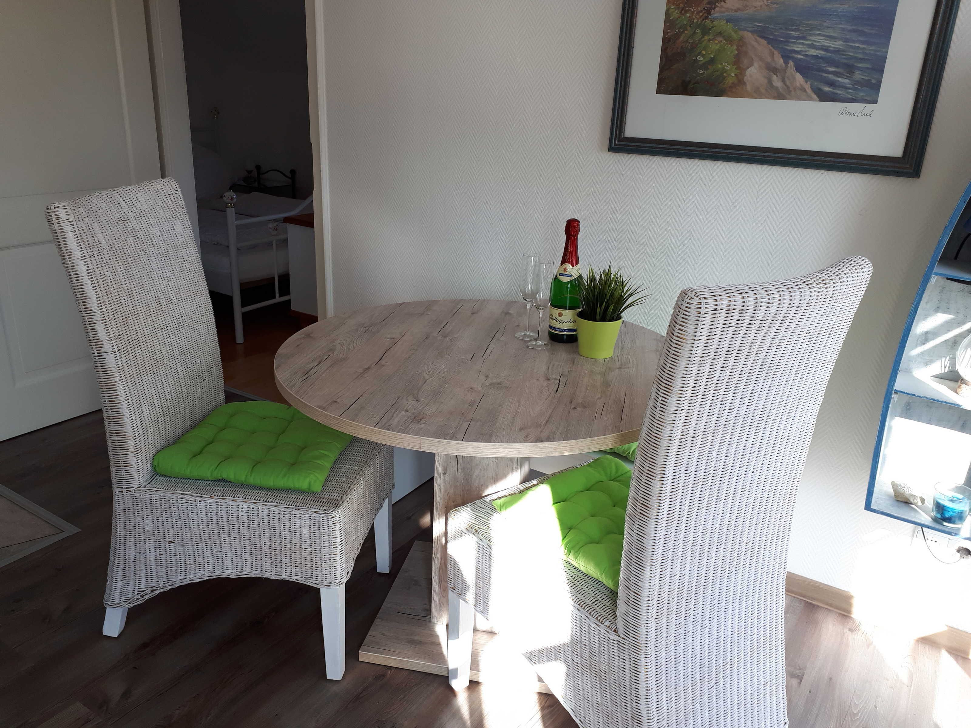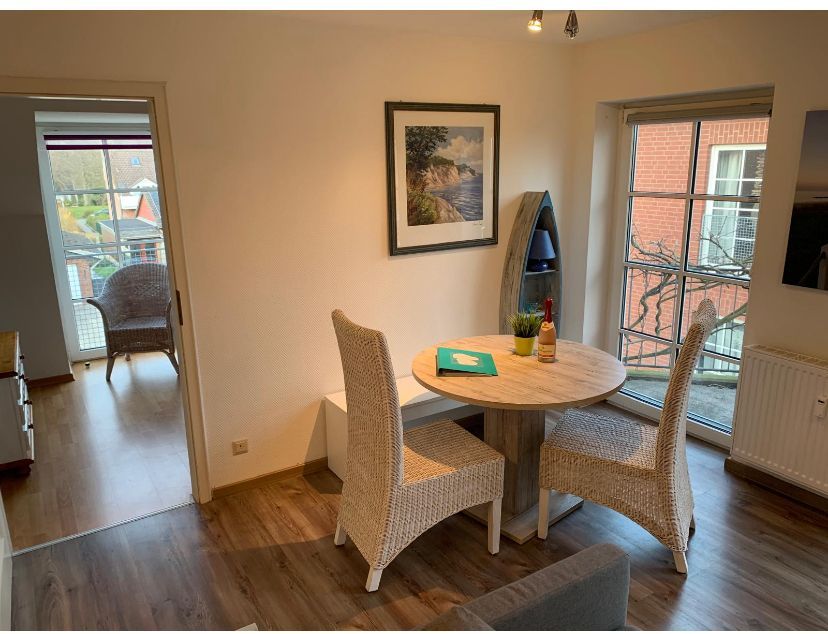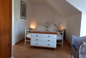 Die Ferienwohnung Krissi liegt in einer Sackgassenstraße und ist mit seinen 42 m² Wohnfläche für 2 Erwachsene und ein Kleinkind geeignet. Die Ferienwohnung befindet sich im 1. OG und verfügt über ein gemütliches Wohnzimmer, ein separates Schlafzimmer mit Doppelbett, eine Küchenzeile mit 2 Herdplatten und Geschirrspüler, Dusche/WC und einen möblierten Balkon. Vor dem Haus steht ein reservierter PKW-Stellplatz sowie ein reservierter Fahrradbügel zur Verfügung, außerdem gibt es einen kostenfreien WLAN-Anschluss in der Ferienwohnung Krissi.
