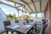 Das Ferienhaus Am Grünen Weg 48 mit seiner roten Backsteinfassade, der Außentreppe und dem liebevoll gestalteten Außenbereich befindet sich in einer ruhigen Eigenheimsiedlung im Ortsteil West des wunderschönen Ostseebades Kühlungsborn. Die wintergartenähnliche Terrasse, die nach Süden ausgerichtet ist, spendet an kalten und regnerischen Tage Schutz vor Wind und Wetter, in den heißen Sommermonaten schützt sie vor der prallen Sonne und lässt ein bisschen frische Sommerluft rein. Am Haus befinden sich Parkmöglichkeiten für unsere Feriengäste!