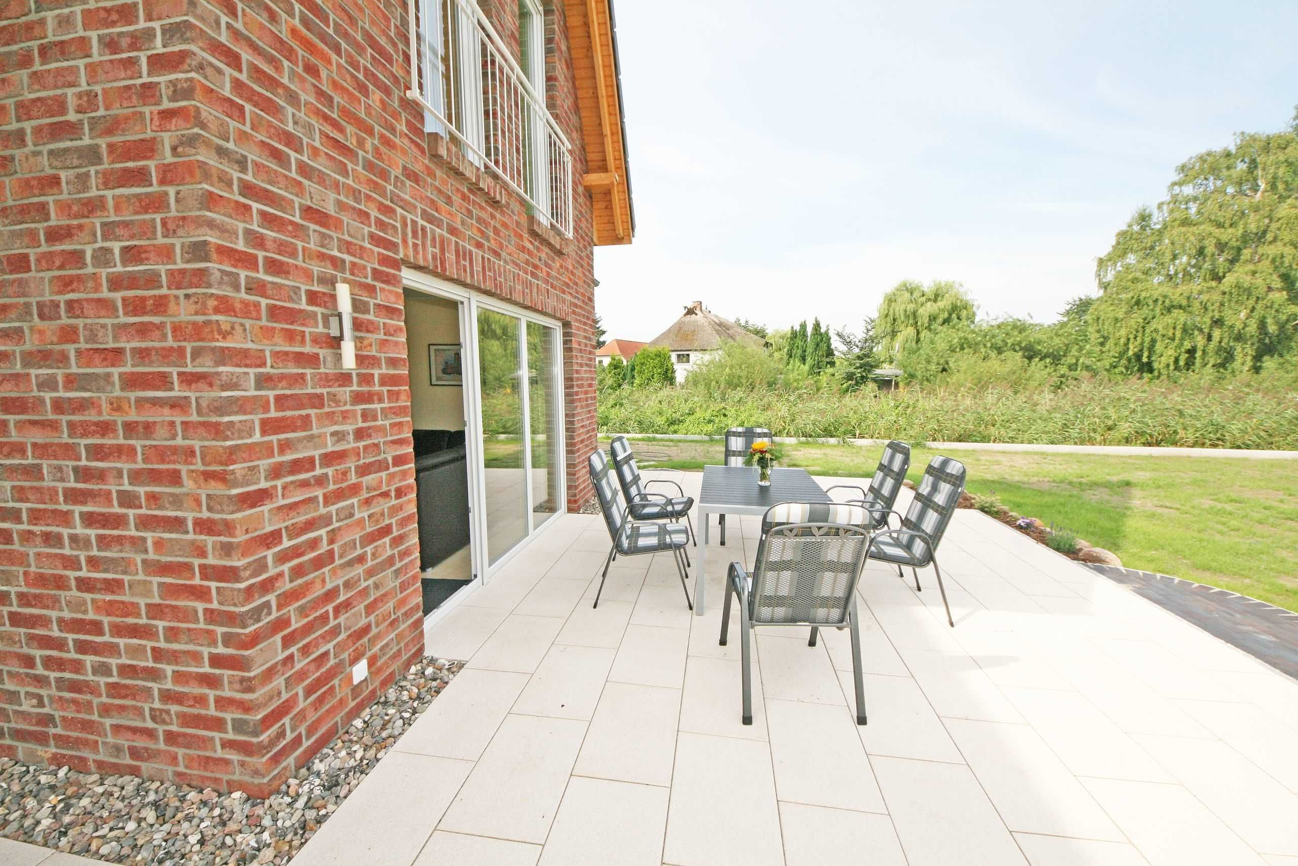 Das großzügige Ferienhaus Deichblick (Nichtraucher) bietet Ihnen auf einer Wohnfläche von ca. 140 m², verteilt auf Erd - und Dachgeschoss, Platz für 6 Erwachsene + 2 Kleinkinder bis 3 Jahre im Kinderreisebett. Die gehobene und moderne Einrichtung des Hauses ist mit viel Liebe zum Detail gewählt worden. Alle Räumlichkeiten im Erdgeschoss erreichen Sie von der Diele. Die komplett ausgestattete Küchenzeile lässt keine Wünsche offen. Vom Geschirrspüler, Backofen mit Ceranfeld, Mikrowelle, Kühlschrank mit Eisfach, Kaffeemaschine, Toaster, Wasserkocher bis hin zu ausreichenden Küchenutensilien haben Sie alles, um sich jede Mahlzeit selbst zuzubereiten. Angrenzend haben Sie hier den Esstisch mit 6 Stühlen, welcher offen zum Wohnbereich integriert ist. Dieser bietet Ihnen eine Couchecke mit Sessel, Couchtisch, Smart-TV mit Blu Ray-Player, CD-Player und Radio. Das optisch abgetrennte Lesezimmer passt sich mit seinen gemütlichen Ohrensesseln, Leselampe dem Wohnbereich an. Für gemütliche Stunden in der Vor - und Nachsaison haben Sie als Highlight einen Kaminofen. Aber auch die Fußbodenheizung im gesamten Haus bietet hier eine angenehme Wärme. Durch die Panoramafenster im Wohnbereich gelangen Sie auf die bestuhlte Terrasse mit Gartenanbindung und herrlichen Blick auf den Deich. Von der Diele aus haben Sie Möglichkeit in den Hauswirtschaftsraum zu gelangen. Hier können Sie eine Waschmaschine und einen Trockner nutzen. Das kleinere Bad im Erdgeschoss ist mit einer Runddusche, Waschplatz und WC versehen. Im Obergeschoss befinden sich 3 Schlafzimmer, wobei 2 Schlafzimmer mit je einem Doppelbett (2 x 0,90m x 2,00m), Nachtischkonsolen, einem Sideboard und einem Kleiderschrank ausgestattet sind. Hier besteht die Möglichkeit in jedem Schlafzimmer ein Kinderreisebett aufzustellen. Das 3. Schlafzimmer verfügt über 2 Einzelbetten (0,90m x 2,00m), Nachtischkonsolen und einen Kleiderschrank. Das großzügige und zweite Badezimmer wird durch einen hochwertigen Sanitärbereich mit 2 Waschplätzen, WC, Fön, ebenerdiger Dusche und Sauna abgerundet. Ihre Ruhephasen nach dem Saunagang können Sie auf 2 Relaxstühlen in der offenen und hellen Galerie genießen. Für ein gutes Raumklima sorgt im gesamten Haus eine kontrollierte Lüftungsanlage. Alle Räumlichkeiten können durch elektrische Außenrollläden verdunkelt werden und sind zum Teil auch mit Insektenschutzgitter versehen. Im Nebengebäude haben Sie die Möglichkeit, Ihre mitgebrachten Fahrräder oder auch Ihre vor Ort geliehenen Fahrräder einzuschließen. Direkt auf dem Grundstück befinden sich 3 PKW-Stellflächen. Im Garten gibt es einen festen Standgrill sowie einen Picknicktisch. Auf einen Internetzugang (WLAN) brauchen Sie im Urlaub nicht zu verzichten. Dieser ist für Sie inklusive. Haustiere sind im ganzen Haus nicht erlaubt!!! Die Erstausstattung eines Wäschepaketes (komplette Bettwäsche, 1 Duschhandtuch, 2 kleine Handtücher) können Sie bis 14 Tage vor Anreise gegen einen Aufpreis dazu buchen oder durch eigene ergänzen. Ab 2 gebuchten Paketen erhalten Sie einmalig 1 Geschirrhandtuch und 1 Duschvorleger hinzu.