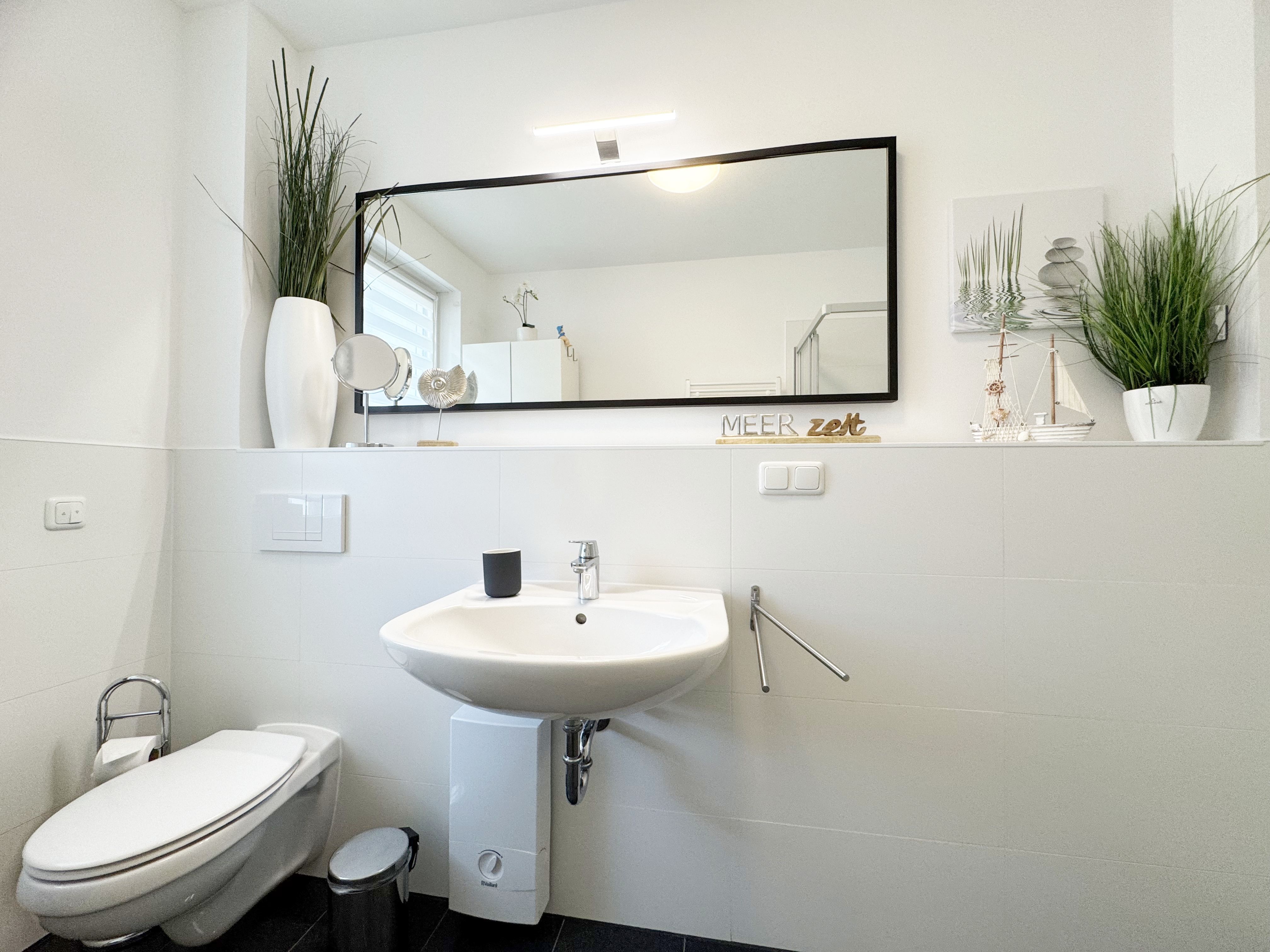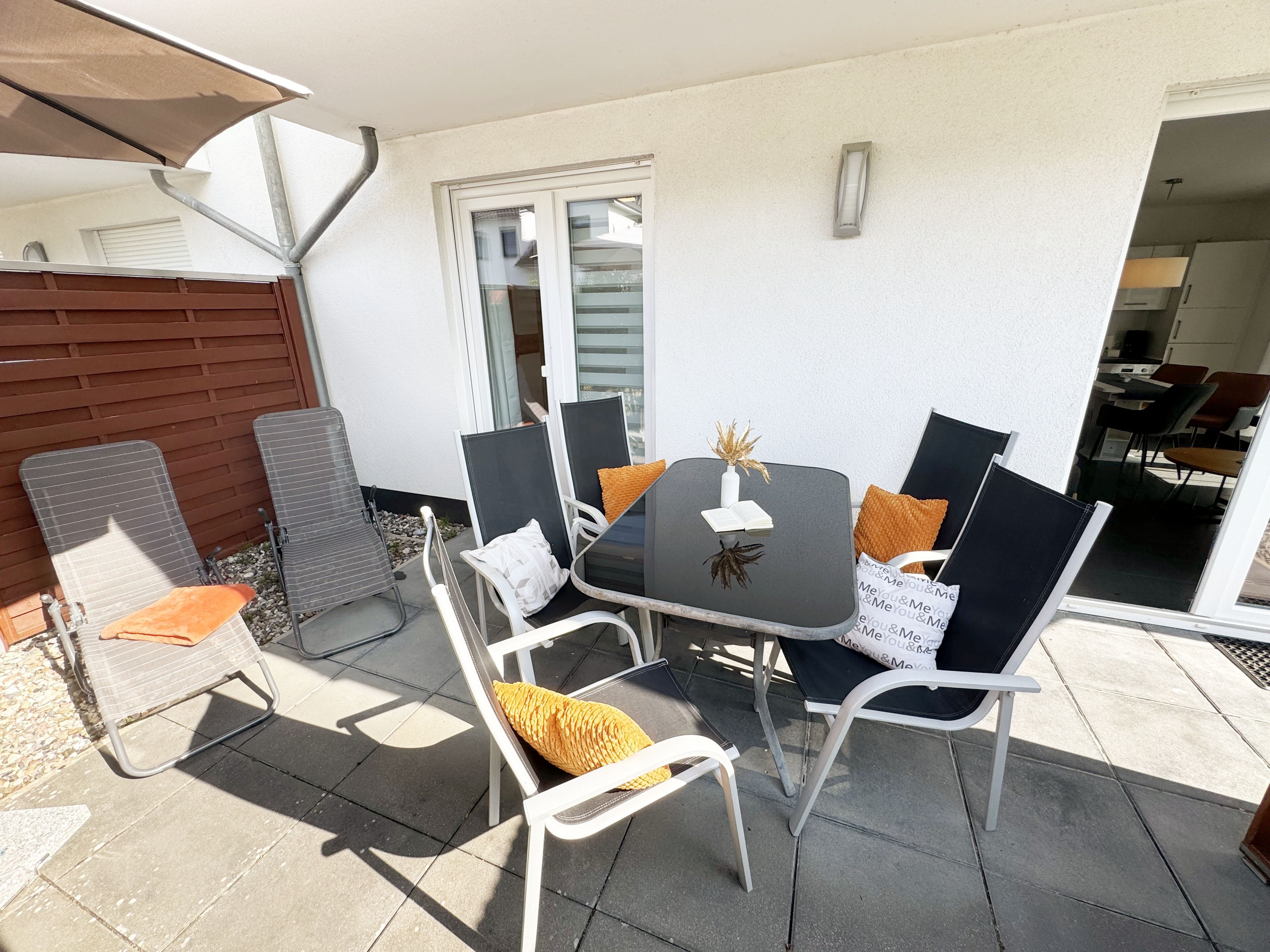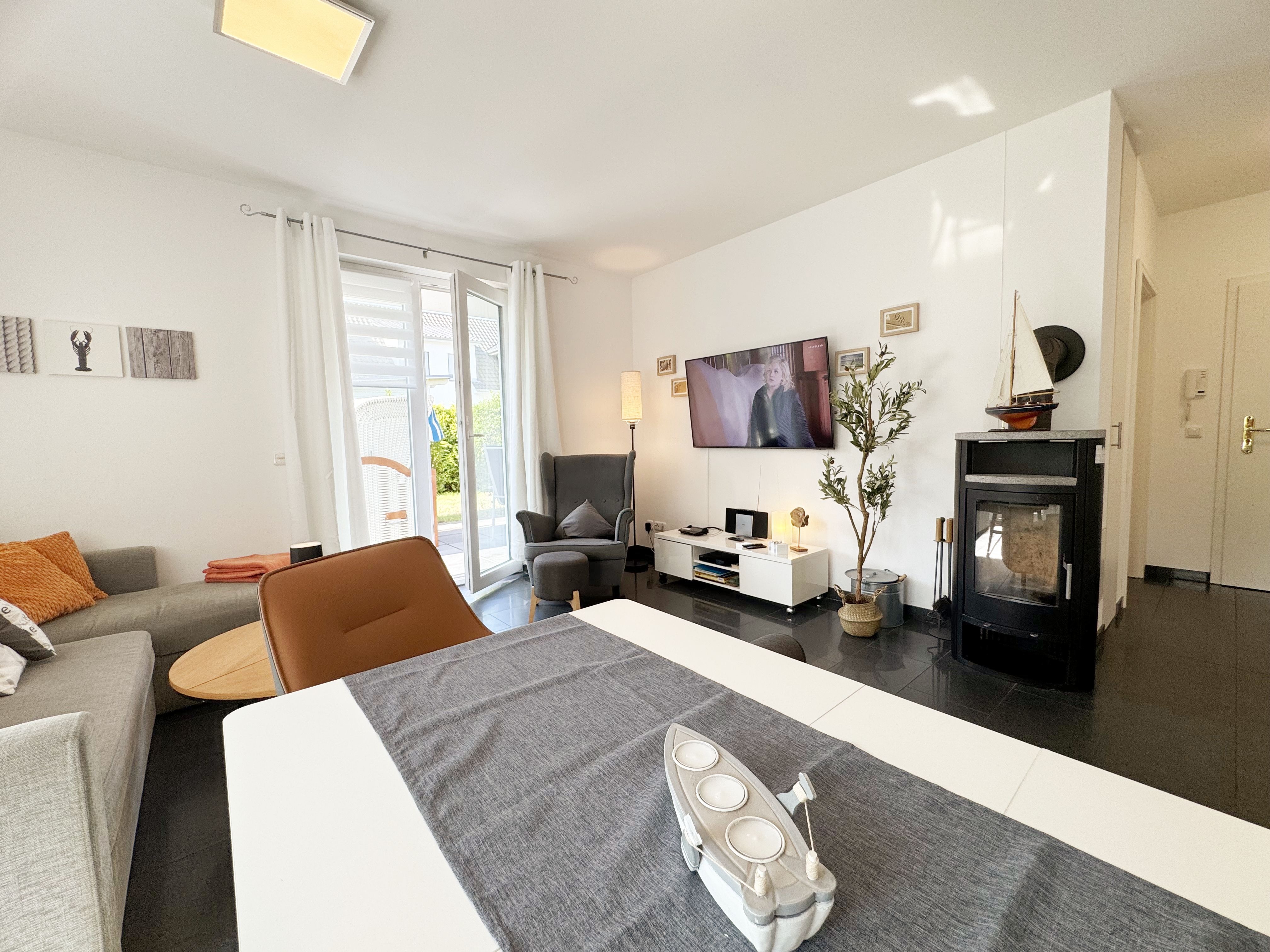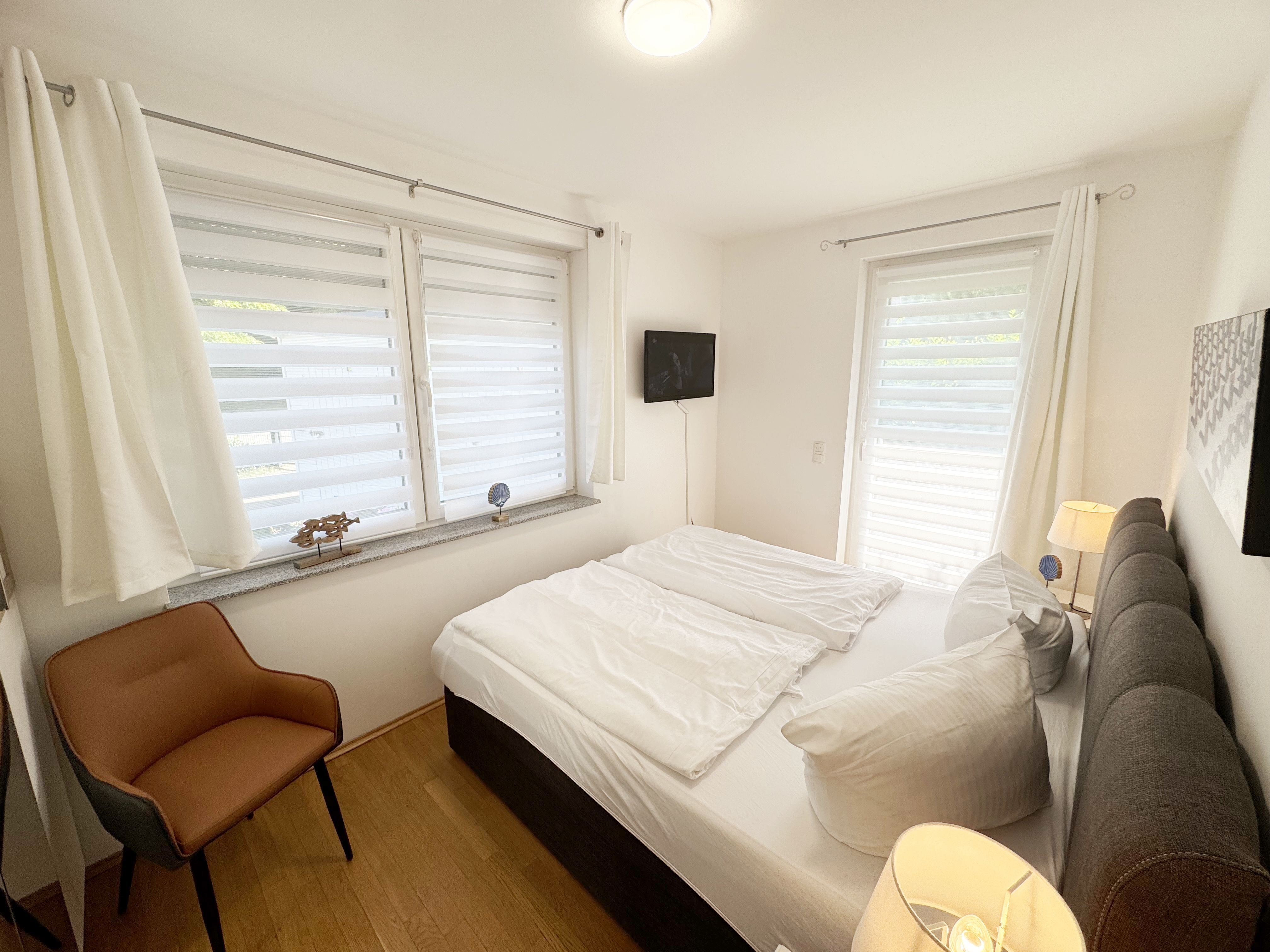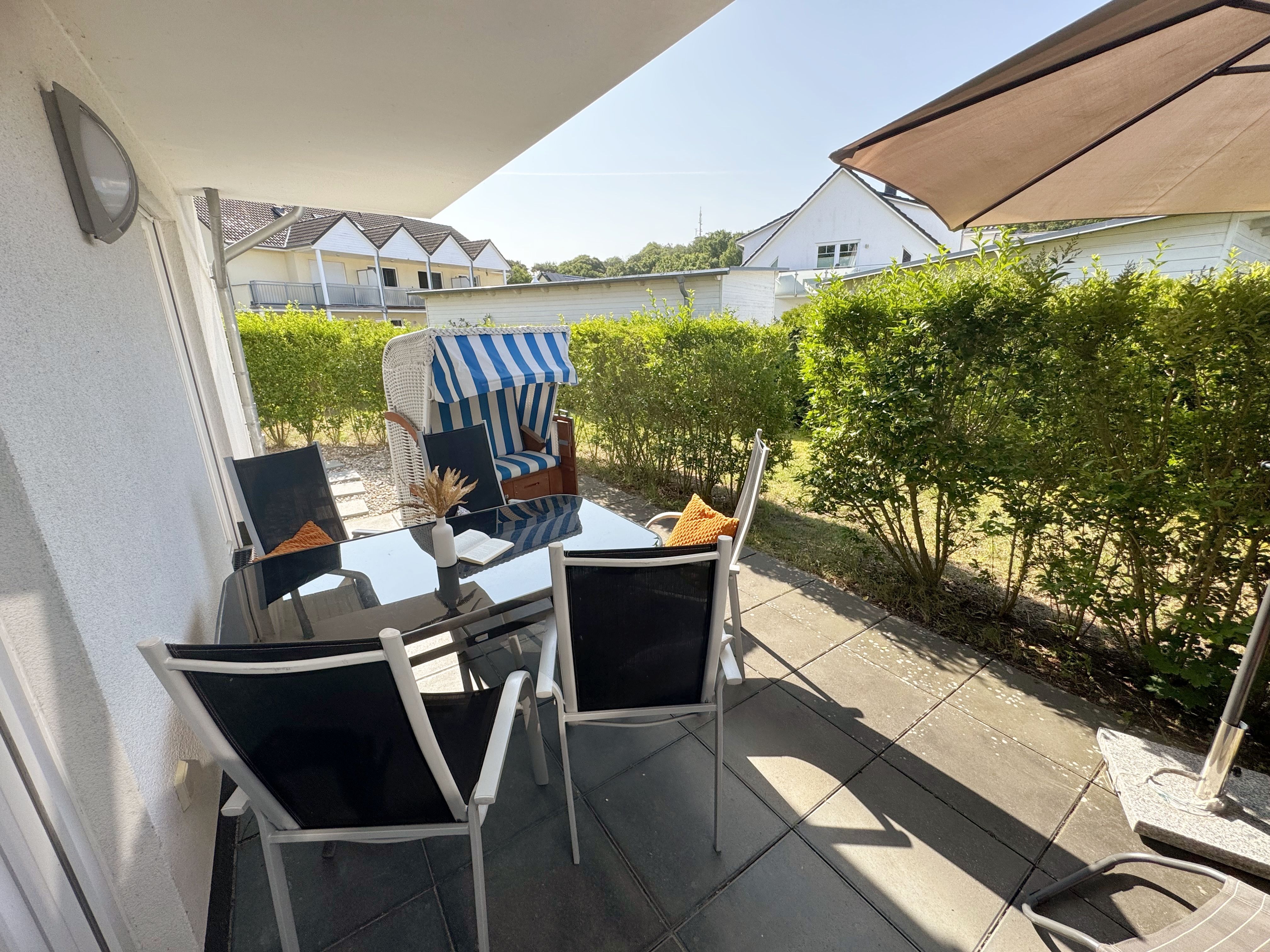 Die helle und großzügige 3-Zimmer-Komfort-Wohnung Nr. 04 im Haus Sanddorn ist modern eingerichtet und besticht durch ihre geschickte Raumaufteilung. Die Nichtraucher-Ferienwohnung mit ca. 67 m² befindet sich im Erdgeschoss des Hauses und bietet Ihnen 2 großen Terrassen. Der Wohnbereich verfügt über eine Eck-Couch (Aufbettungsmöglichkeit 5.Person /1,30m x 2,00m), einen Couchtisch, einen Lesesessel mit Hocker sowie ein TV-Board mit Smart-TV, Blu-Ray-Player und DAB-Radio mit USB, Bluetooth und CD-Player. Ein WLAN-Zugang rundet den technischen Bereich ab. An Gesellschaftsspiele und Urlaubslektüre wurde auch gedacht. An kühleren Tagen sorgt der Kamin für wohlige Wärme und die entsprechende Gemütlichkeit. Kaminholz können Sie gerne dazu buchen. Die angrenzende Küchenzeile fügt sich harmonisch an den Wohnbereich an. Um jede Mahlzeit zu genießen, steht Ihnen ein Kühlschrank mit Gefrierfach, ein Backofen, ein Cerankochfeld, eine Spülmaschine, eine Mikrowelle, eine Kaffeemaschine, eine Nespresso Maschine, ein Toaster, ein Wasserkocher sowie diverse Küchenutensilien zur Verfügung. Ein bequemer Essplatz rundet den Bereich ab. Vom Wohn-/Essbereich kommen Sie auf Ihre bestuhlte und überdachte Terrasse (Osten/Süden). Ein Sonnenschirm, sowie 2 Sonnenliegen, ein Strandkorb und ein Grill sorgen für die richtige Entspannung. Das 1. Schlafzimmer verfügt über ein Boxspringbett (1,80m x 2,00m), Nachttischablagen mit Beleuchtung, einen Kleiderschrank sowie ein Flachbild-TV mit integrierten DVD-Player. Hier haben Sie zusätzlich die Möglichkeit auf eine der zwei Terrassen zu gelangen. Das 2. Schlafzimmer verfügt über ein Boxspringbett (1,60m x 2,00m), Nachttischablagen mit Beleuchtung, einen Kleiderschrank, Insektenschutzgitter sowie ein Flachbild-TV. Auch hier haben Sie zusätzlich die Möglichkeit auf eine der zwei Terrassen zu gelangen. Für einen ruhigen und erholsamen Schlaf sorgen in beiden Schlafzimmern Aussenrollo´s welche Sie in der gesamten Wohnung vorfinden. Das Tageslichtbad ist mit einer ebenerdigen Dusche, einem WC, einer Waschmaschine mit integriertem Trockner, einem Waschplatz, einem Kosmetikspiegel, einem Fön, einem Ablagestuhl sowie Ablageflächen ausgestattet. In der gesamten Wohnung sorgt eine Fußbodenheizung für angenehme Wärme. Für unsere kleinen Gäste steht Ihnen 1x Kinderhochstuhl inklusive zur Verfügung. Ein Kinderreisebett kann dazu gebucht werden bzw. von zu Hause mitgebracht werden. Ihre mitgebrachten oder geliehenen Fahrräder können Sie in dem zu Ihrer Wohnung gehörenden Schuppen (Nr.04) verschließen.1 Haustier ist mit eigenem Schlafplatz gegen eine Gebühr ein gern gesehener Gast. Es besteht eine Leinenpflicht auf dem Grundstück. Ein PKW-Stellplatz Nr. 04 befindet sich direkt am Objekt. Die Erstausstattung eines Wäschepaketes (komplette Bettwäsche, 1 Duschhandtuch, 2 kleine Handtücher) können Sie bis 14 Tage vor Anreise gegen einen Aufpreis dazu buchen oder durch eigenes Ergänzen. Ab 2 gebuchten Paketen erhalten Sie einmalig 1 Geschirrhandtuch und 1 Duschvorleger hinzu.