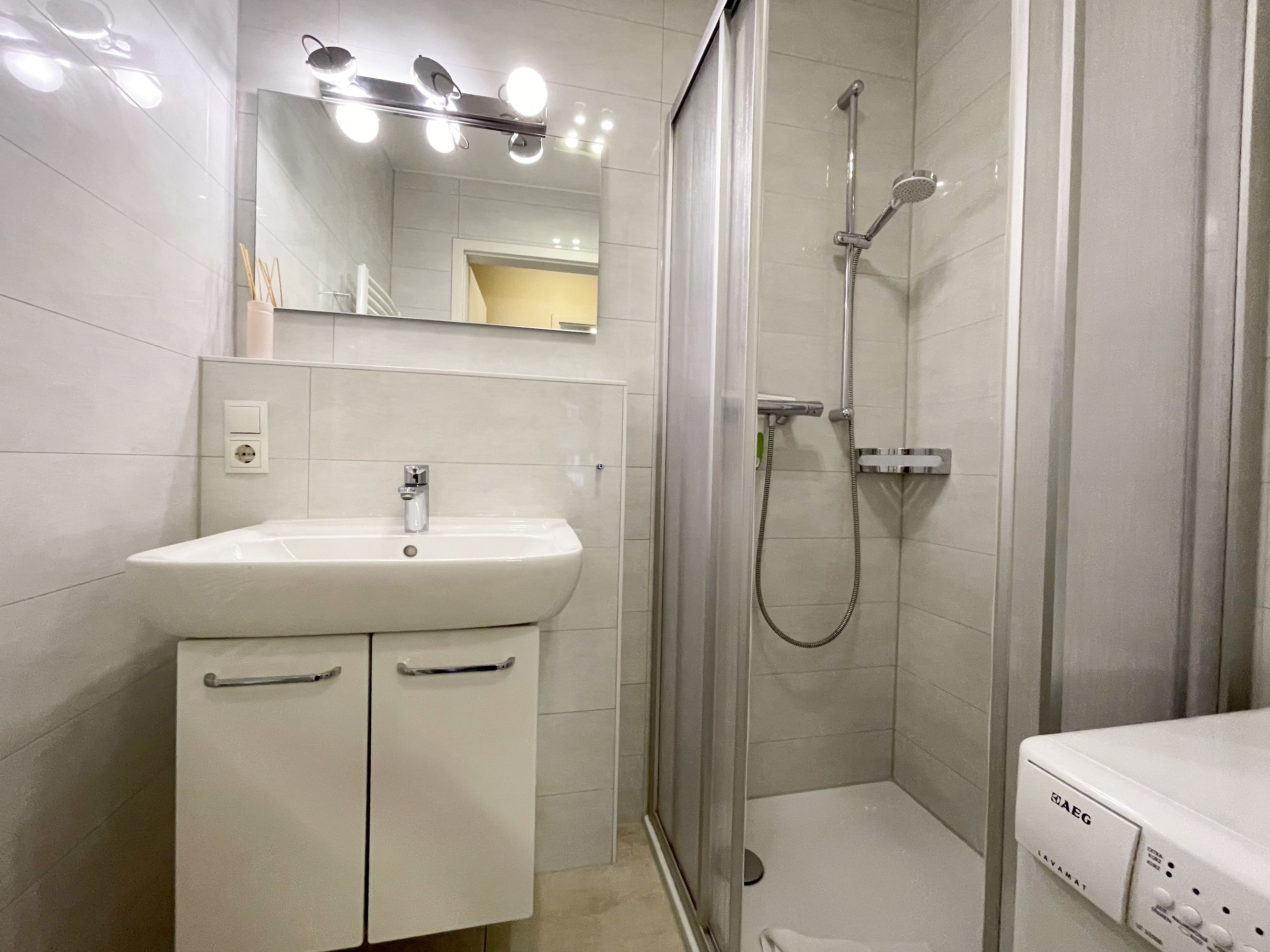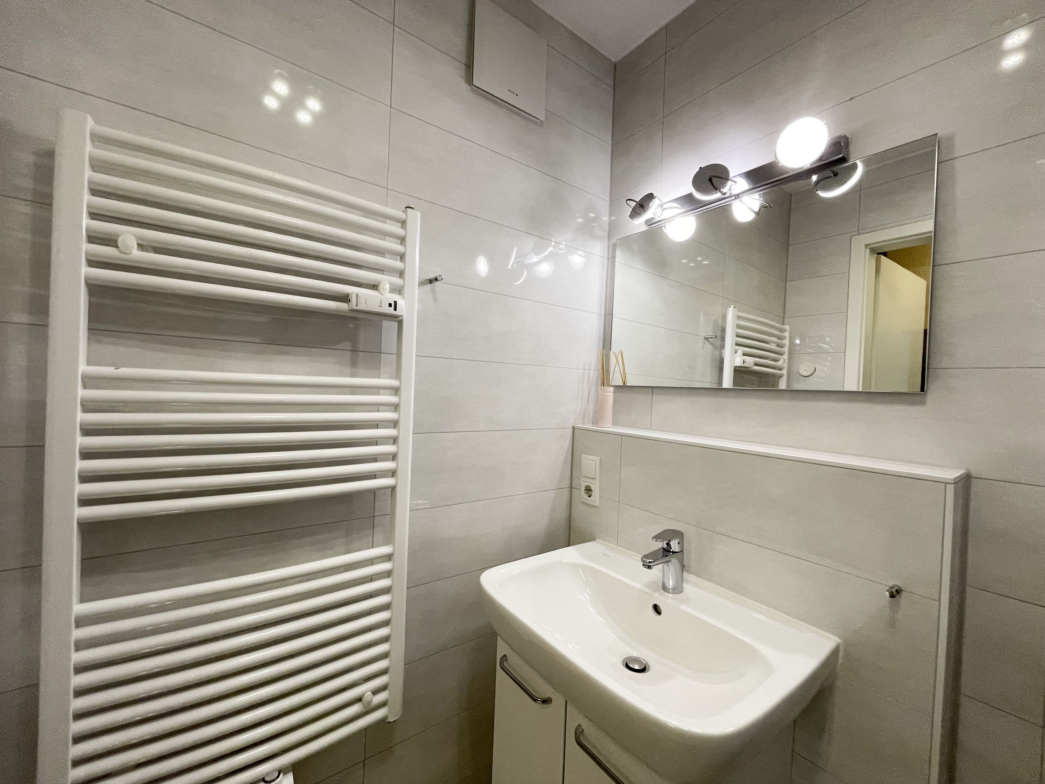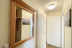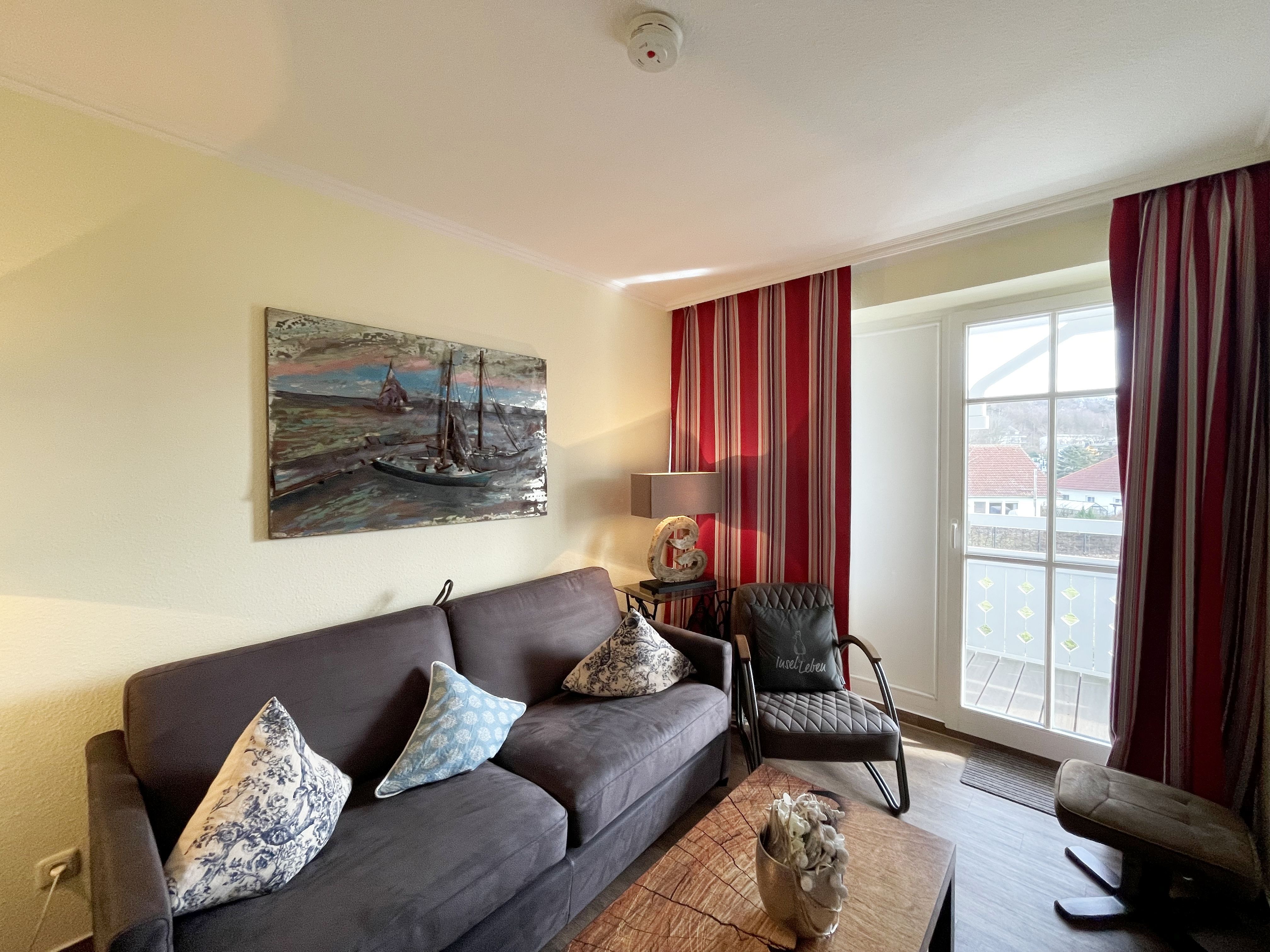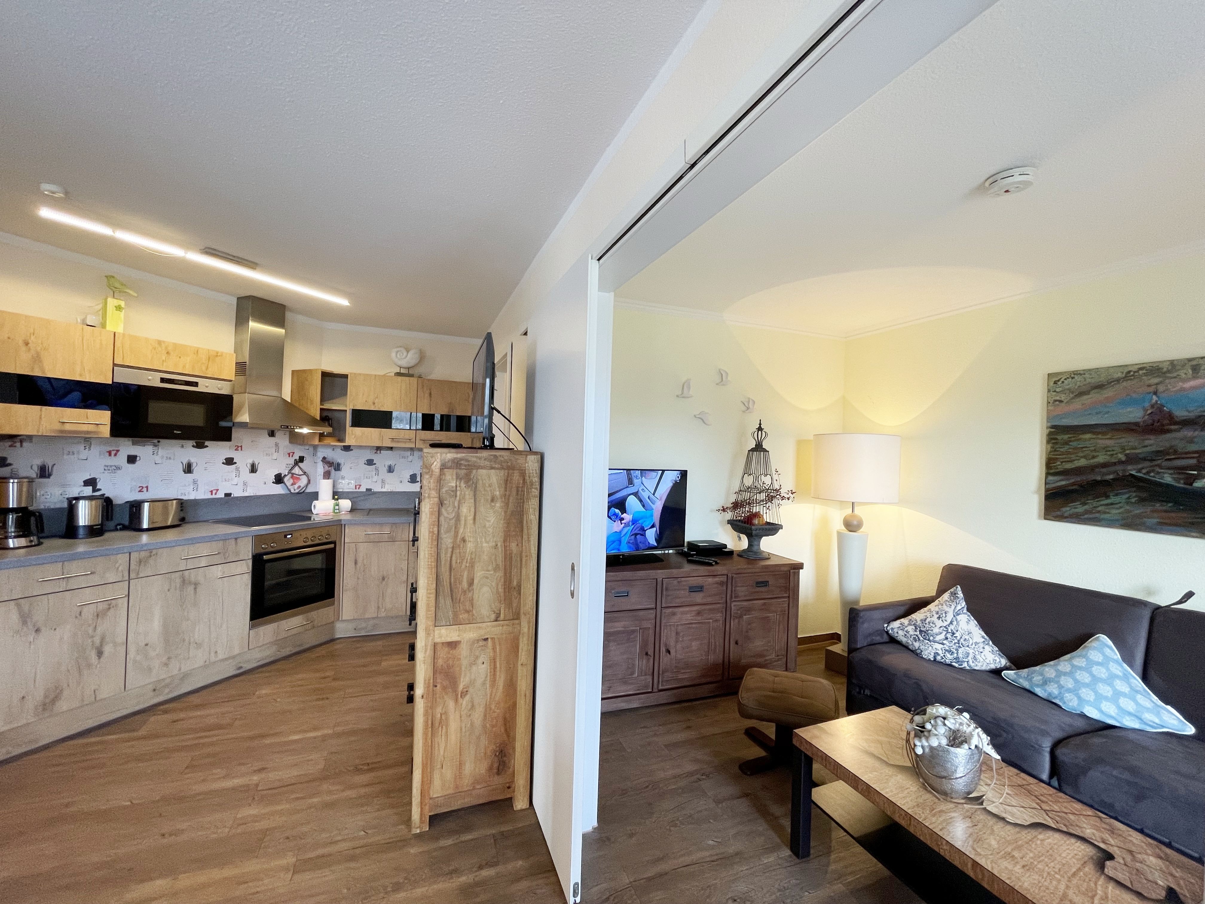 Die gemütlich eingerichtete Nichtraucherwohnung befindet sich in der 1. Etage des Hauses Südperd im Seepark Sellin. Durch die ca. 52 qm große Wohnfläche bietet Sie ausreichend Platz für max. 2 Personen. Der Wohn-/ Essbereich ist mit Schiebetüren voneinander abtrennbar. Der Essbereich verfügt über eine Einbauküche mit Induktionsceranfeld, Spüle, großen Kühl-und Gefrierschrank, Spülmaschine, Mikrowelle, Backofen, Kaffeemaschine, Toaster, Wasserkocher sowie diversen Küchenutensilien. Angrenzend haben Sie einen hellen und gemütlichen Essbereich, der nicht nur für die Mahlzeiten zum Verweilen einlädt. Zusätzlich haben Sie eine Leselampe, ein Highboard mit Smart-TV und Mini-Stereo-Anlage. Ein 2. TV-Flachbild (40) steht im Wohnbereich zur Verfügung, ebenso ein Blu-Ray-Player. Im Wohnbereich passt sich eine Couch, 1 Sessel, ein Couchtisch sowie eine Anrichte dem Raum an. Das geräumige Schlafzimmer bietet Ihnen ein Doppelbett (2 x 0,90 m x 2,00 m), verstellbare Lattenroste, Nachtischkonsolen und Kleiderschrank. Vom Schlaf-/Ess- & Wohnbereich können Sie den bestuhlten Balkon (Südosten) erreichen. Das Badezimmer ist in 2 Räume aufgeteilt, wo sich in einem der Räume eine ebenerdige Glasdusche sowie ein Waschtisch mit Fön sowie eine Waschmaschine befindet und in einem weiteren Raum das WC mit kleinem Waschbecken. Beide Badezimmer sind gefliest. Alle anderen Räumlichkeiten sind mit einem Vinylboden verlegt worden. Ein eigener PKW-Stellplatz (43) steht Ihnen in der Tiefgarage (Höhe 2,00m) zur Verfügung sowie auch eine Fahrradabstellmöglichkeit. Auch im Urlaub brauchen Sie in Ihrer Wohnung nicht auf einen Internetanschluss (WLAN) zu verzichten. Dieser ist für Sie inklusive!!! Für unsere kleinen Gäste ist 1x Kinderreisebett mit zusätzlicher Matratze (ohne Bettinlett) inklusive. 2 kleine Hunde oder 1 Kniehoher Hund (keine Katzen) sind gegen eine Gebühr gern gesehene Gäste in der Wohnung. Die Erstausstattung eines Wäschepaketes (komplette Bettwäsche, 1 Duschhandtuch, 2 kleine Handtücher) können Sie bis 14 Tage vor Anreise gegen einen Aufpreis dazu buchen oder durch eigene ergänzen. Ab 2 gebuchten Paketen erhalten Sie einmalig 1 Geschirrhandtuch und 1 Duschvorleger hinzu.