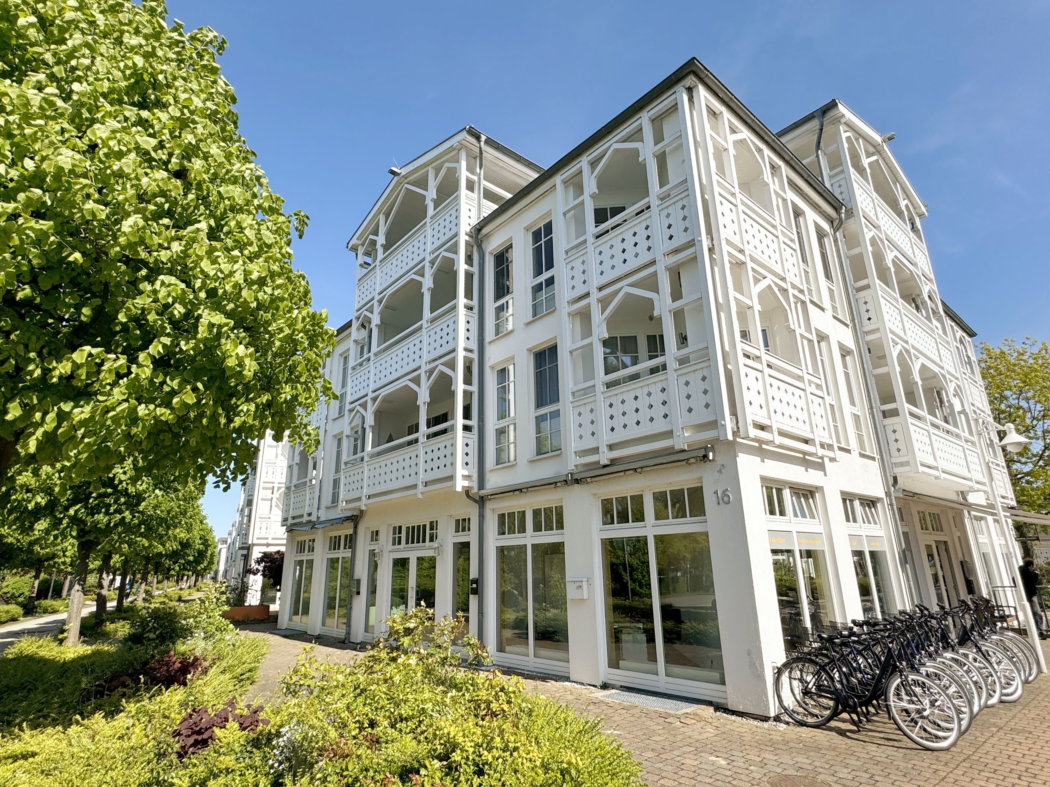 Der Selliner Seepark wurde im Stil der modernen Bäderarchitektur erbaut. Im Haus Südperd befindet sich die Wohnung 721 mit Balkon in der 1. Etage. Die Ferienwohnung verfügt über 52 qm und bietet Platz für max. vier Feriengäste. Bäcker, EDEKA, Post, Friseur, Schwimmbad, Spielplatz usw. alles im kurzen Laufbereich des Seeparks zu erreichen. In wenigen Gehminuten erreichen Sie die bekannte Wilhelmstraße des Ortes die Sie direkt zur Seebrücke führt und dem feinen Sandstrand. In nur wenigen Schritten erreichen Sie die Haltestelle des Rasenden Rolands, der Sie bis nach Putbus, Binz und Göhren bringt, sowie Cafés, Restaurants und Einkaufsmöglichkeiten.