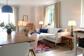 Die Wohnung ist sorgfältig renoviert worden. Das Parkett, die Küche, das Bad und die Einrichtung wurden ausgetauscht, die Wände und Decken neu beschichtet. Zwei Schlafzimmer bieten Platz für maximal vier Personen. Bett- Bad- und Küchenwäsche liegen bereit.
