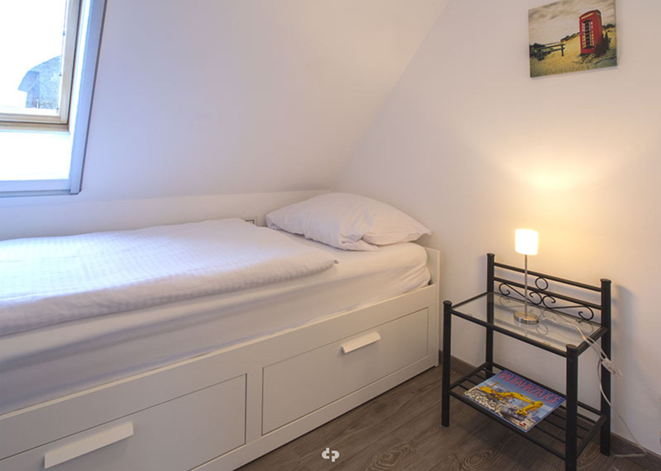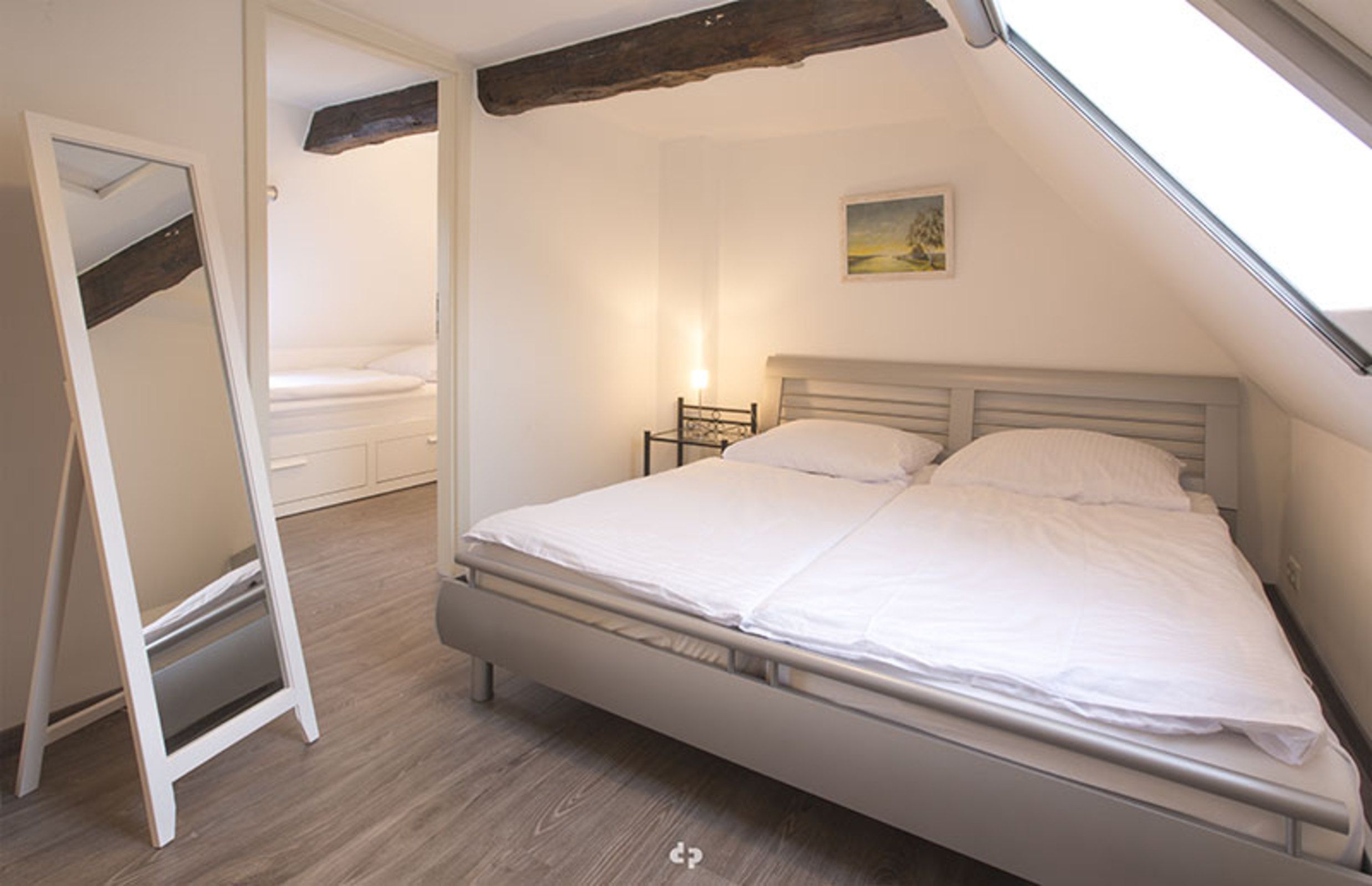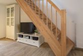 Im Dachgeschoss befinden sich ein offener Schlafbereich mit einem Doppelbett, sowie ein separates Schlafzimmer mit einem Einzelbett. Vom Küchen- und Essbereich gelangen Sie auf die Terrasse mit Gartenmöbeln.