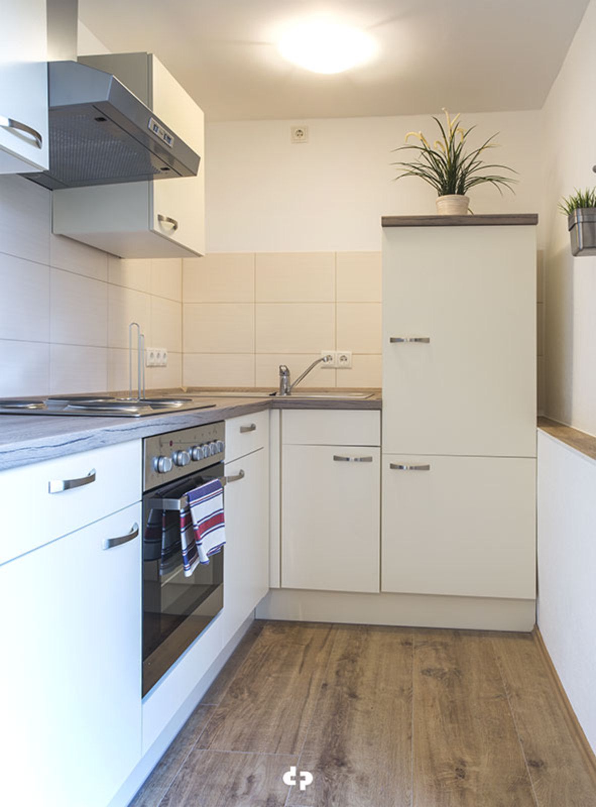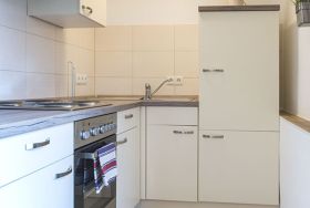 Die Küche ist mit Kühlschrank, Cerankochfeld und Backofen ausgestattet. Kaffeemaschine, Wasserkocher und Toaster sind ebenso selbstverständlich wie ausreichend Geschirr und Besteck. Der Essbereich ist bei 3 Personen etwas eingeschränkt.