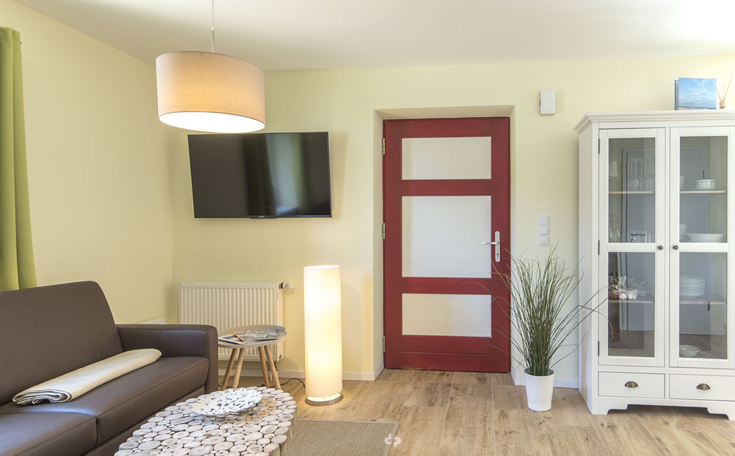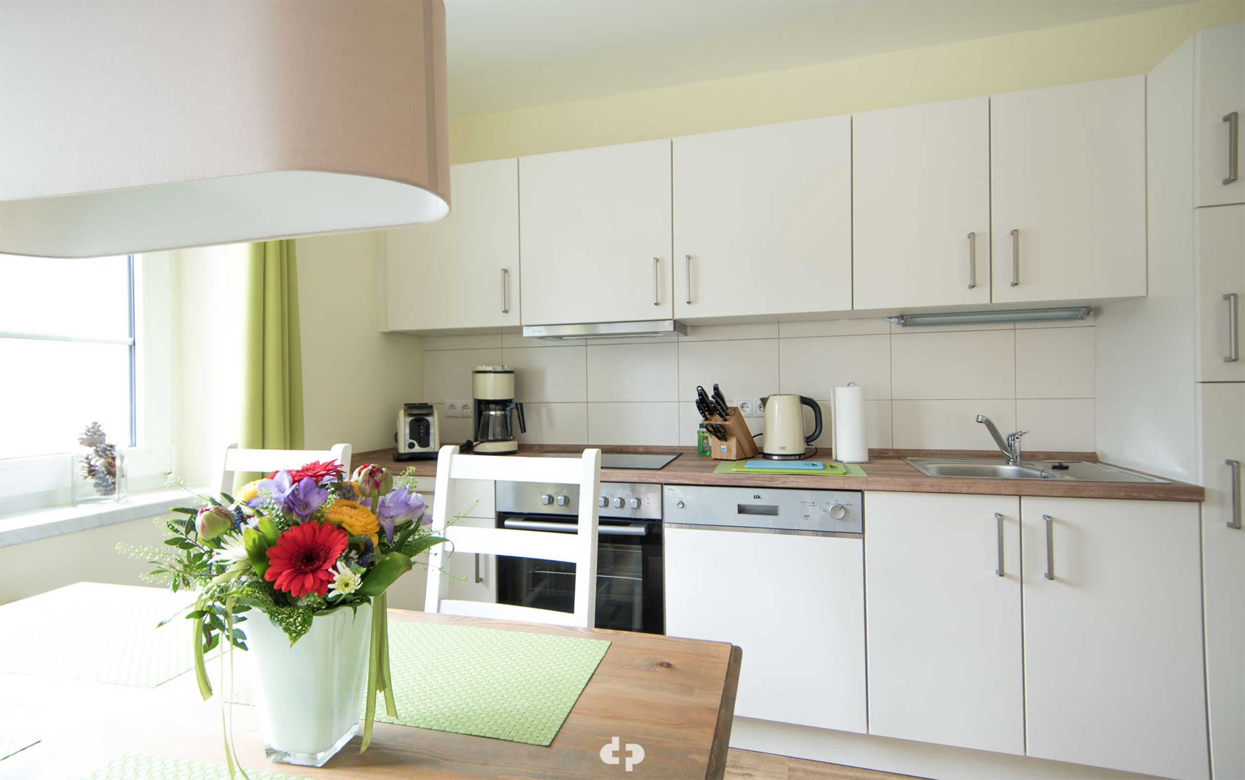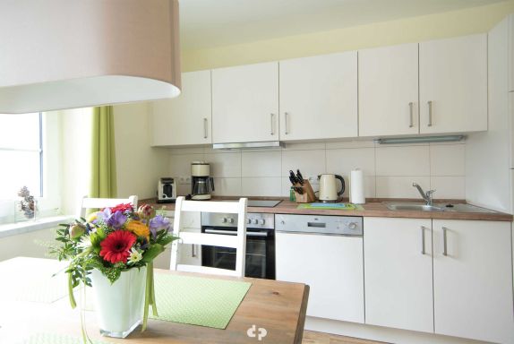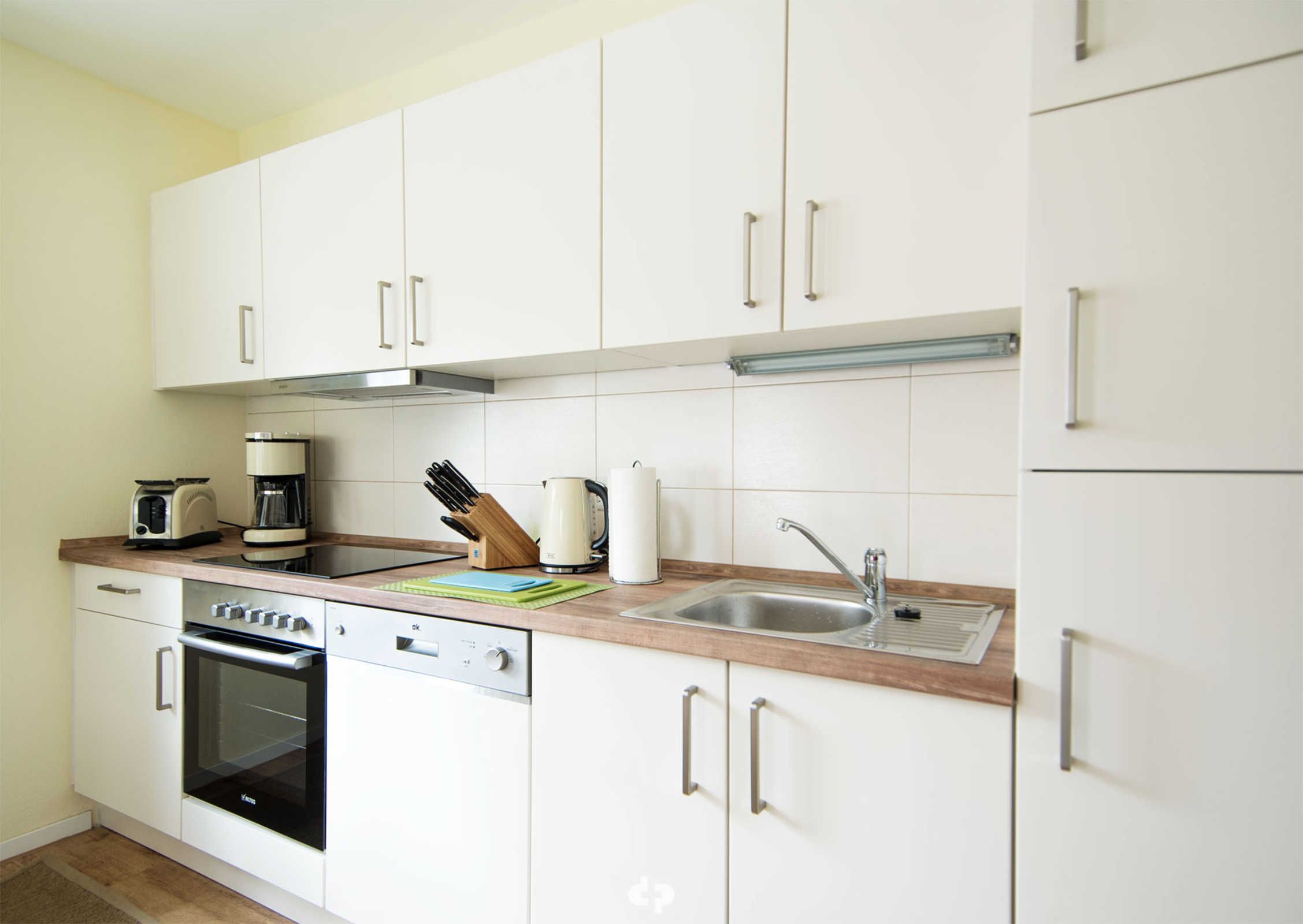 - Die Einbauküche ist mit Kühlschrank, Gefriermöglichkeit, Cerankochfeld, Backofen und Geschirrspüler ausgestattet. Kaffeemaschine, Wasserkocher und Toaster sind ebenso selbstverständlich wie ausreichend Geschirr und Besteck. Im Schlafzimmer, ausgestattet mit einem Flachbild-TV, erwarten Sie ein Doppelbett sowie ein Kleiderschrank mit genügend Stauraum. Das Duschbad ist mit einem Waschtisch und einer geräumigen Dusche ausgestattet.
