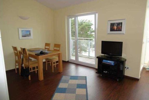 Das Appartement (57m²) befindet sich im Dachgeschoss des Gebäudes und ist sowohl über das großzügige Treppenhaus als auch mit dem Aufzug erreichbar. Die behindertenfreundliche Ausstattung ermöglicht eine komfortable Nutzung für alle Urlaubssuchenden. Der lichtdurchflutete Wohn- und Essbereich mit Aufbettungsmöglichkeit, das barrierefreie Duschbad , ein Schlafzimmer sowie eine Loggia nach Süden und eine zur Seeseite bieten reichlich Platz für 2 - 3 Personen. Parkplatz in der Tiefgarage. Babybett, Hochstuhl und Wickelauflage kann für Sie kostenlos reserviert werden. Anreise ab 15.00 Uhr, Abreise bis 10.00 Uhr.