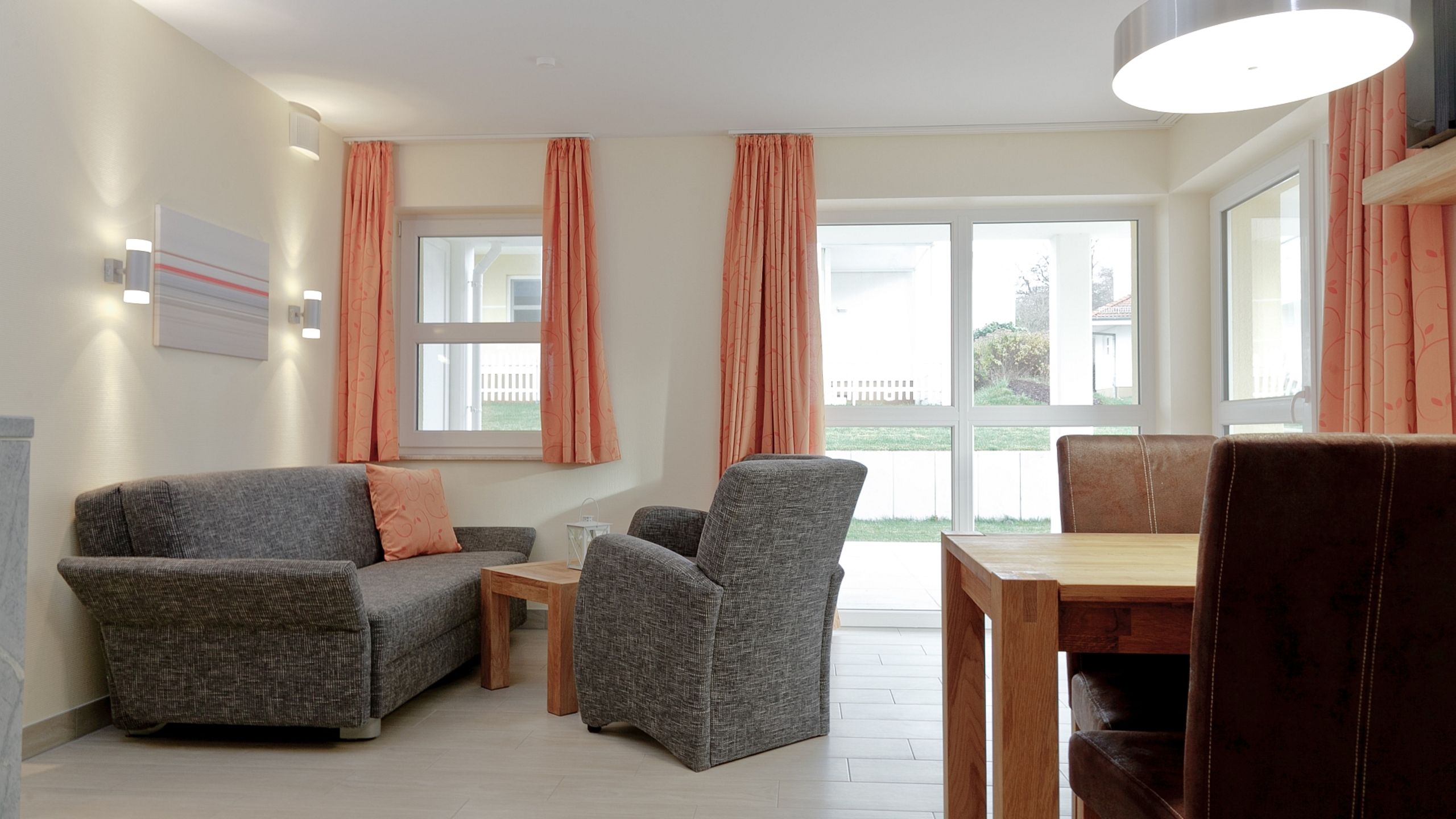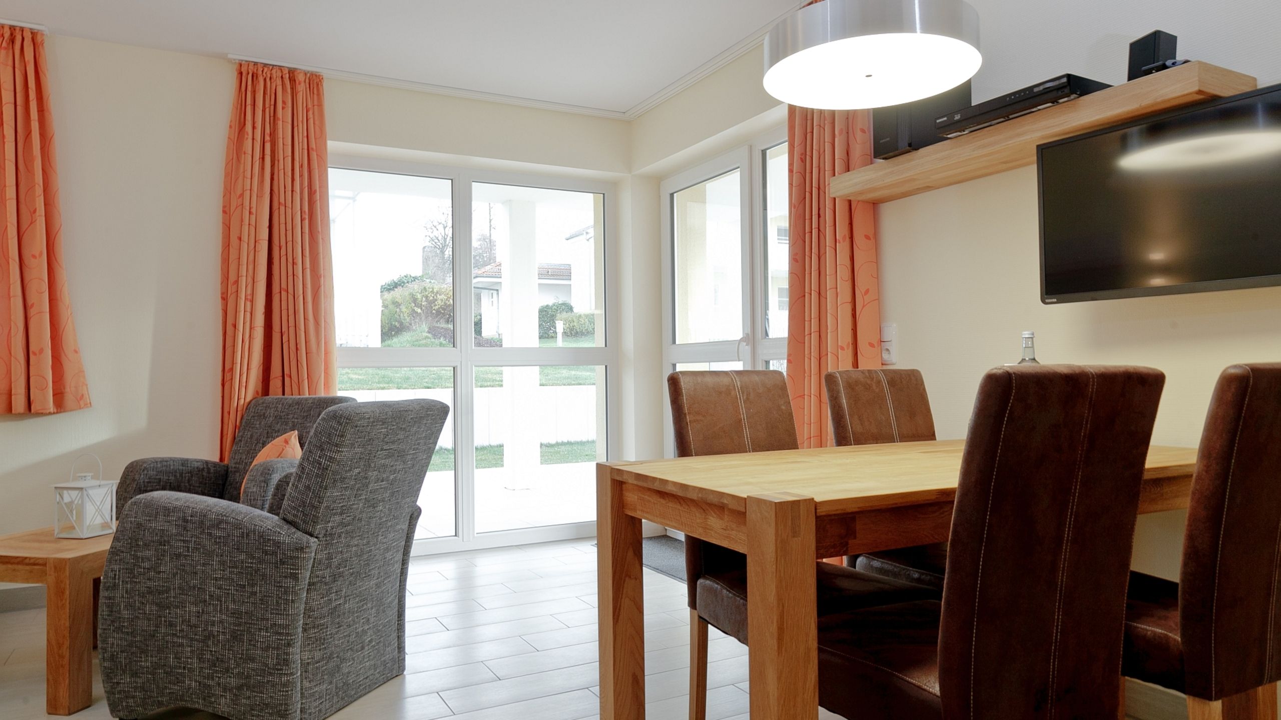Zu jeder Wohnung gehört ein reservierter Stellplatz. Die Nutzung von Einrichtungen des Vineta Ferienparks wie Schwimmbad, Sauna, Tennisplatz, Grillplatz und Tischtennisplatte ist im Mietpreis enthalten.