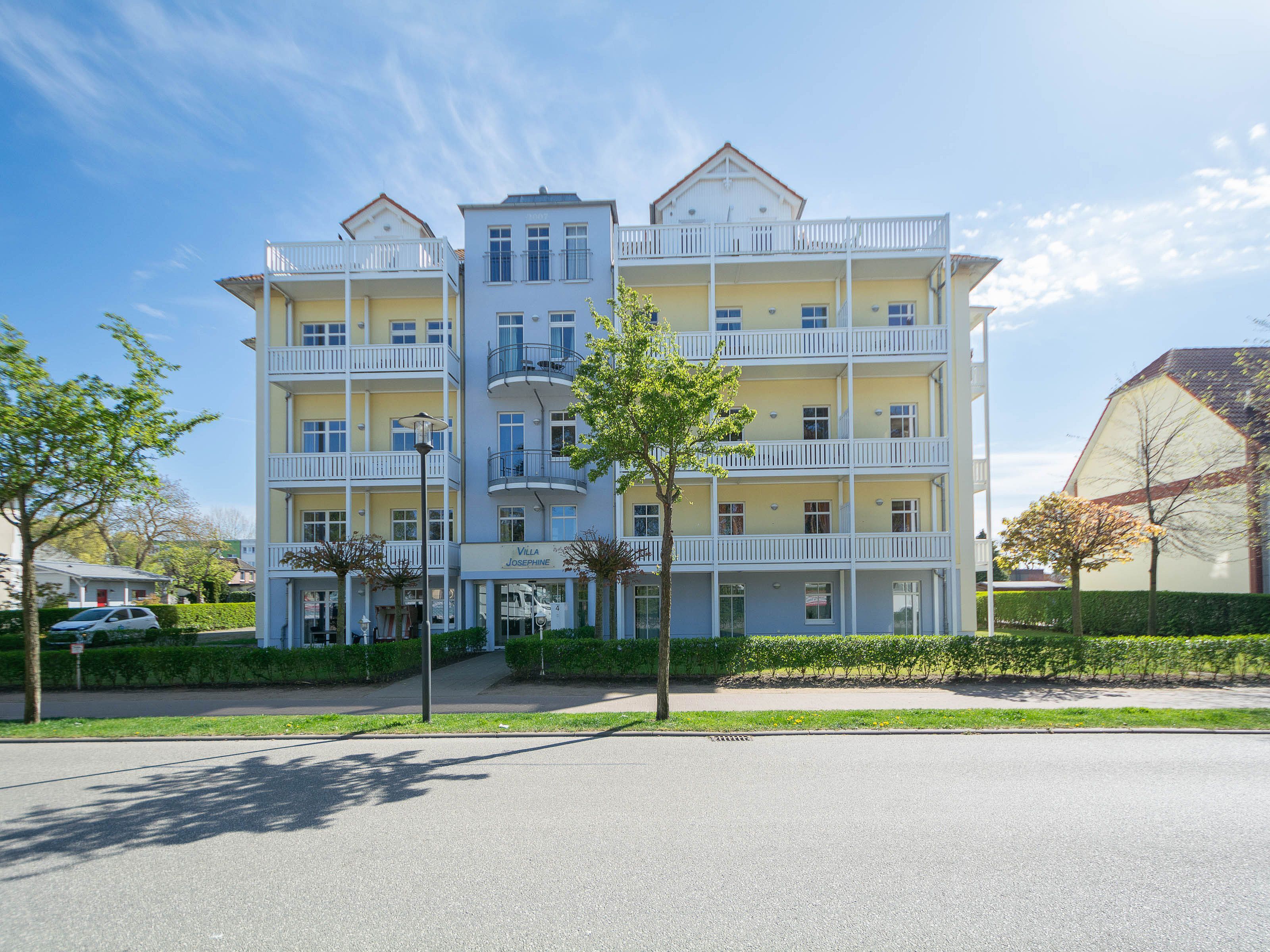 Die Villa Josephine wurde von 2003 bis 2006 im typischen Stil der Bäderarchitektur komplett umgebaut und modernisiert. Jede Wohnung ist mit einer großzügigen Terrasse oder einem Balkon ausgestattet. Hier können Sie Ihre Abende zu einem Glas Wein teilweise mit Blick auf den Küstenschutzwald ausklingen lassen.