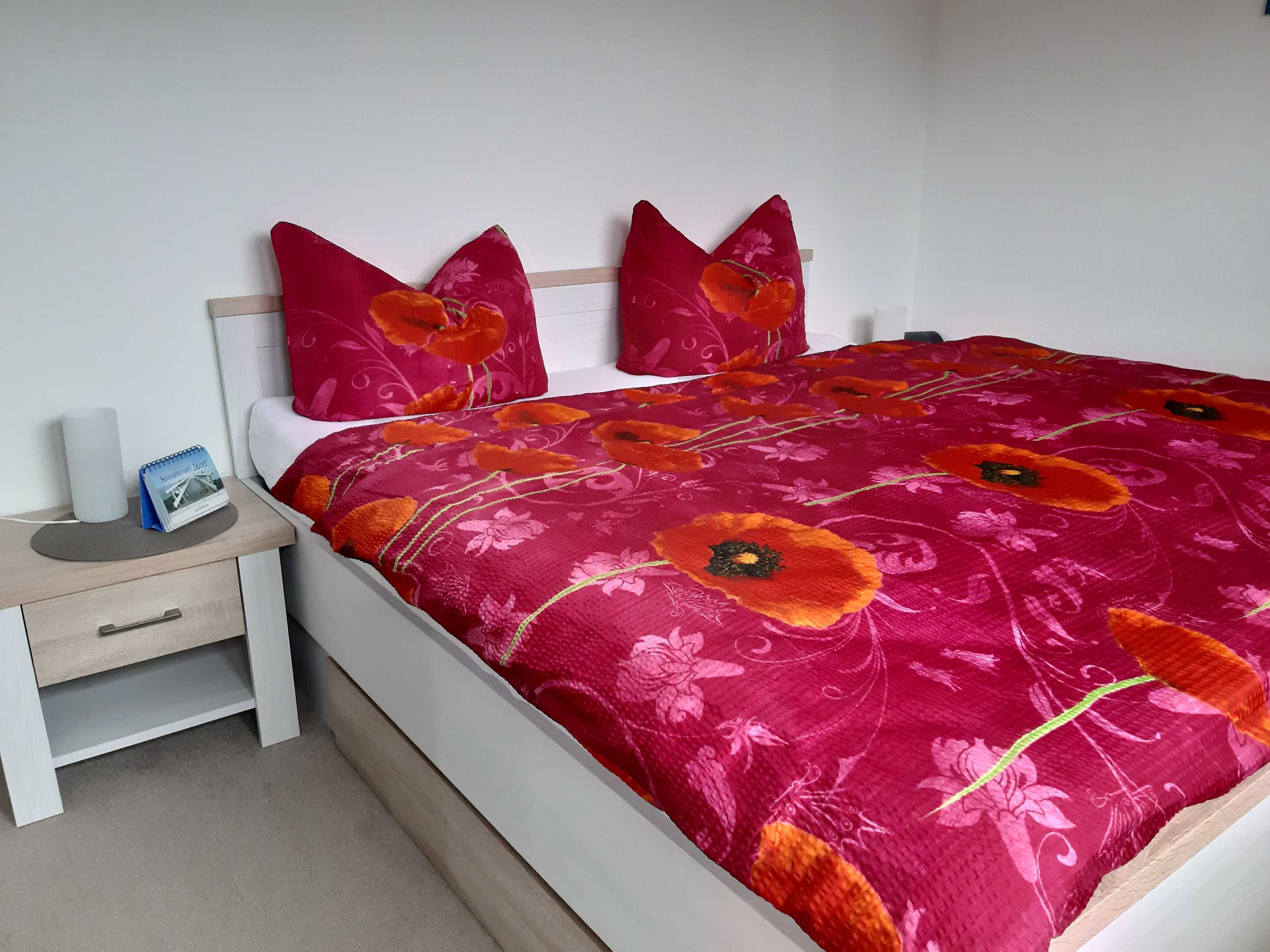 Die Ferienwohnung für 2 Personen besteht aus einem Schlafzimmer und einem Wohn- & Esszimmer mit Küchenzeile. Ein Babybett stellen wir kostenlos zur Verfügung.