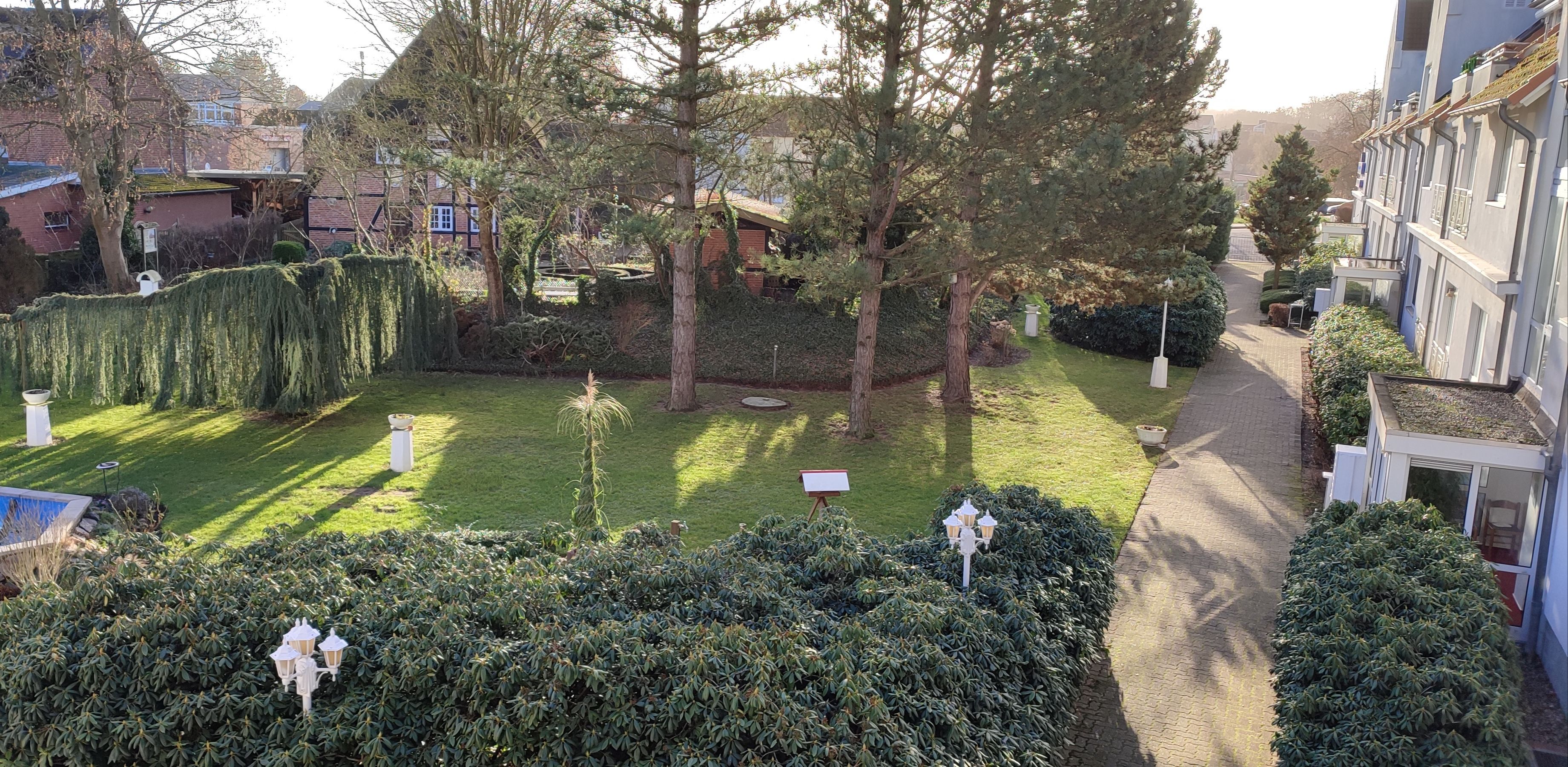 In der Wohnanlage steht Ihnen ein gepflegter Garten zum Entspannen zur Verfügung.
