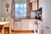 Haushälfte Daniela WHN 1 für 2-5 Personen mit 1 Kleinkind. Wohnraum mit kompletter Einbauküche (Herd/Backofen, Spülmaschine, Mikrowelle und Kühlschrank mit TK-Fach) einem Kaminofen. 1 Schlafzimmer mit Doppelbett und Einzelbett, 1 Schlafzimmer mit 2 Einzelbetten, Bad mit Dusche mit WC. Süd-Westterrasse mit Gartenmöbeln. Das Haus befindet sich auf einem 5.000m² großem Grundstück mit unverbautem, naturnahen Blick auf die idyllischen Salzwiesen, nur wenige Gehminuten vom Hafen und der Barmer Ersatzklinik entfernt.