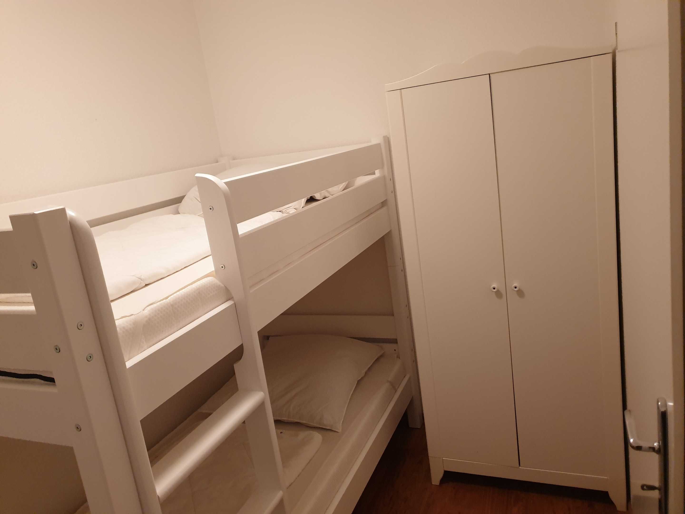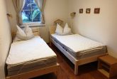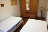 1 Schlafzimmer mit zwei Einzelbetten (lassen sich zu einem Doppelbett zusammenschieben) und Schrank