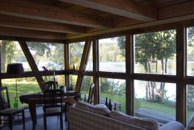 Die einmalige Fachwerkkonstruktion mit Dreifachverglasung der gesamten Längsseite gibt einen malerischen Blick auf See, Wald und holsteinische Hügellandschaft frei. Vom gegenüber liegenden Ufer lockt die Windmühle „Wagria“ auf dem nördlichsten Weinberg Deutschlands zu einer Erkundungstour. Das Wahrzeichen des Ortes Grebin leuchtet des Nachts im goldenen Schein. Am Morgen grüßen die Wasservögel und laden zum Frühstück unter freiem Himmel ein.