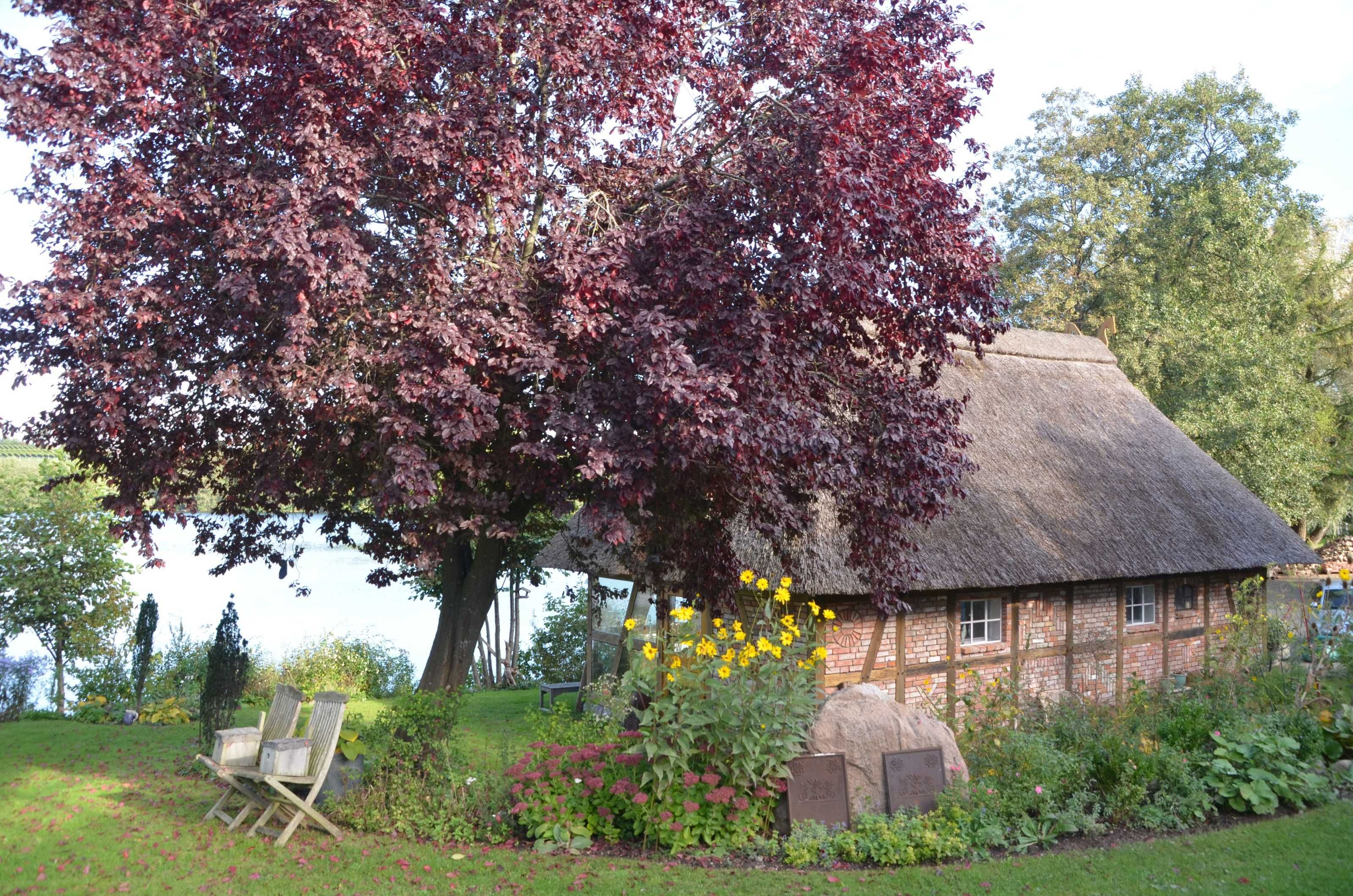 Die reetgedeckte Fischerkate des Gestütes Schierensee liegt traumhaft unmittelbar am privaten Gewässer.