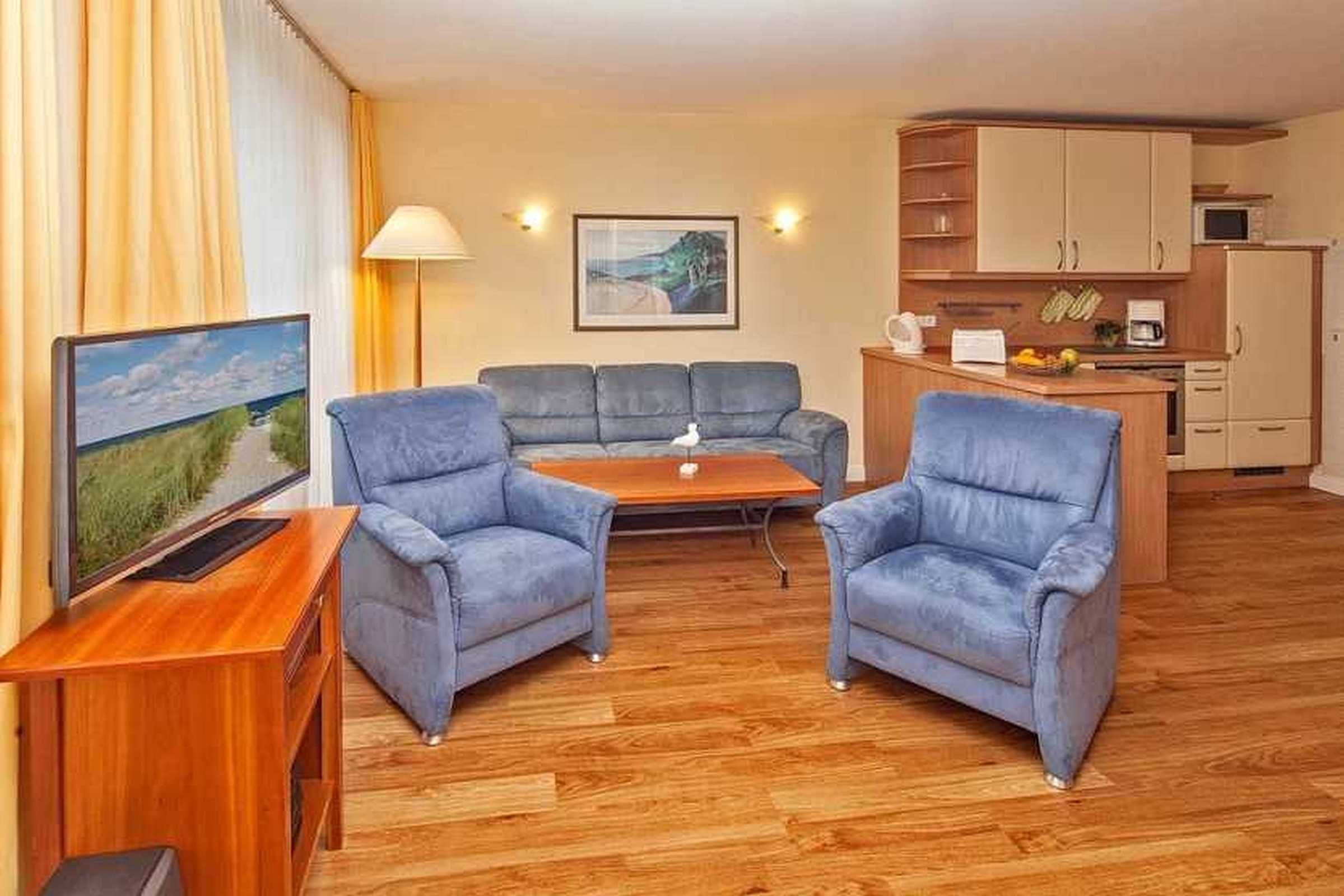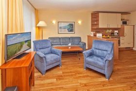 Die komfortable Ferienwohnung befindet sich im ersten Obergeschoss im Haus 1 der Anlage Strandpark Heringsdorf. Die Promenade und den breiten Ostseestrand sind direkt vom Grundstück aus erreichbar.