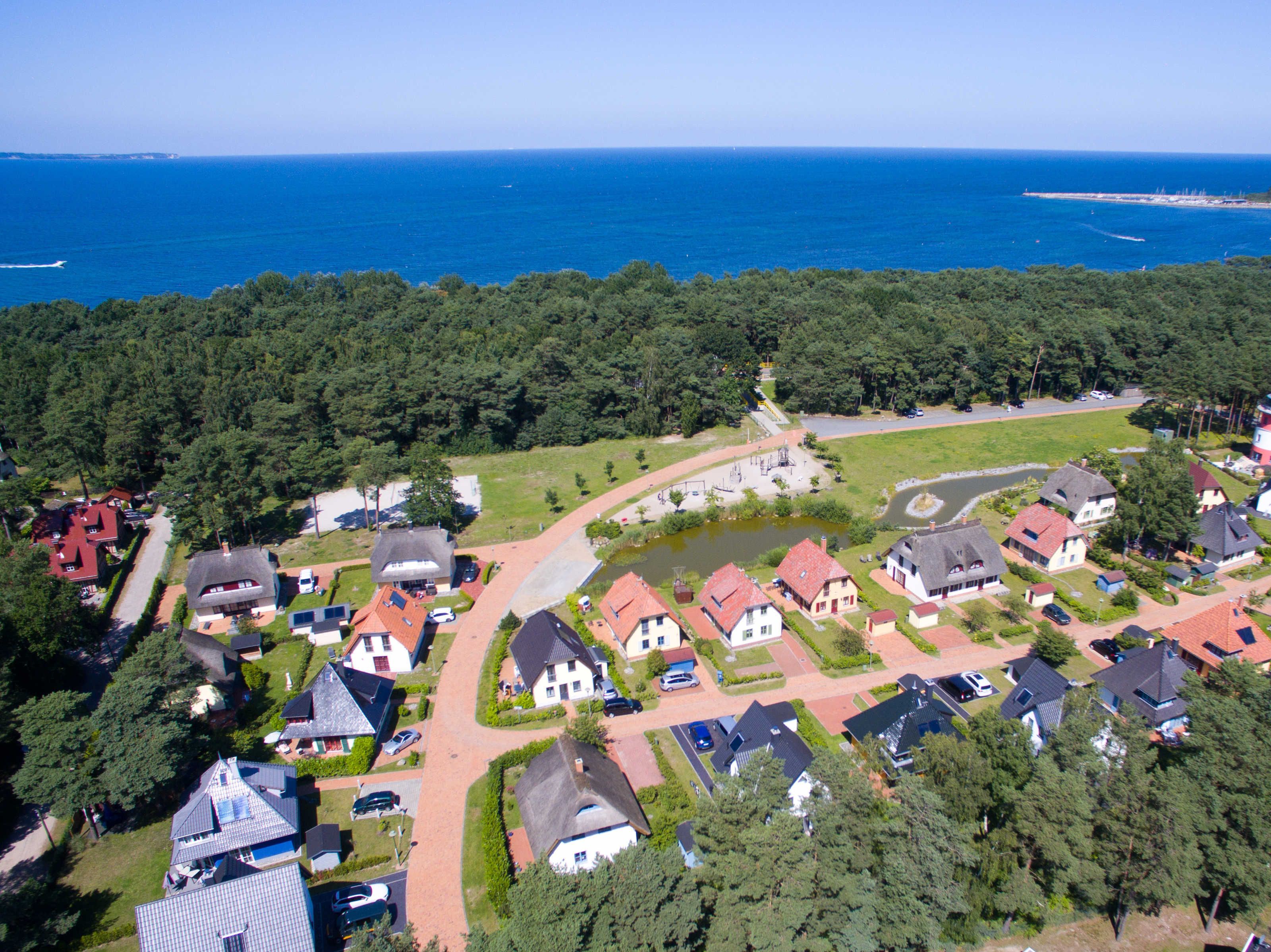 Die Ferienanlage liegt am Ortsausgang von Glowe. Nur einen Steinwurf vom