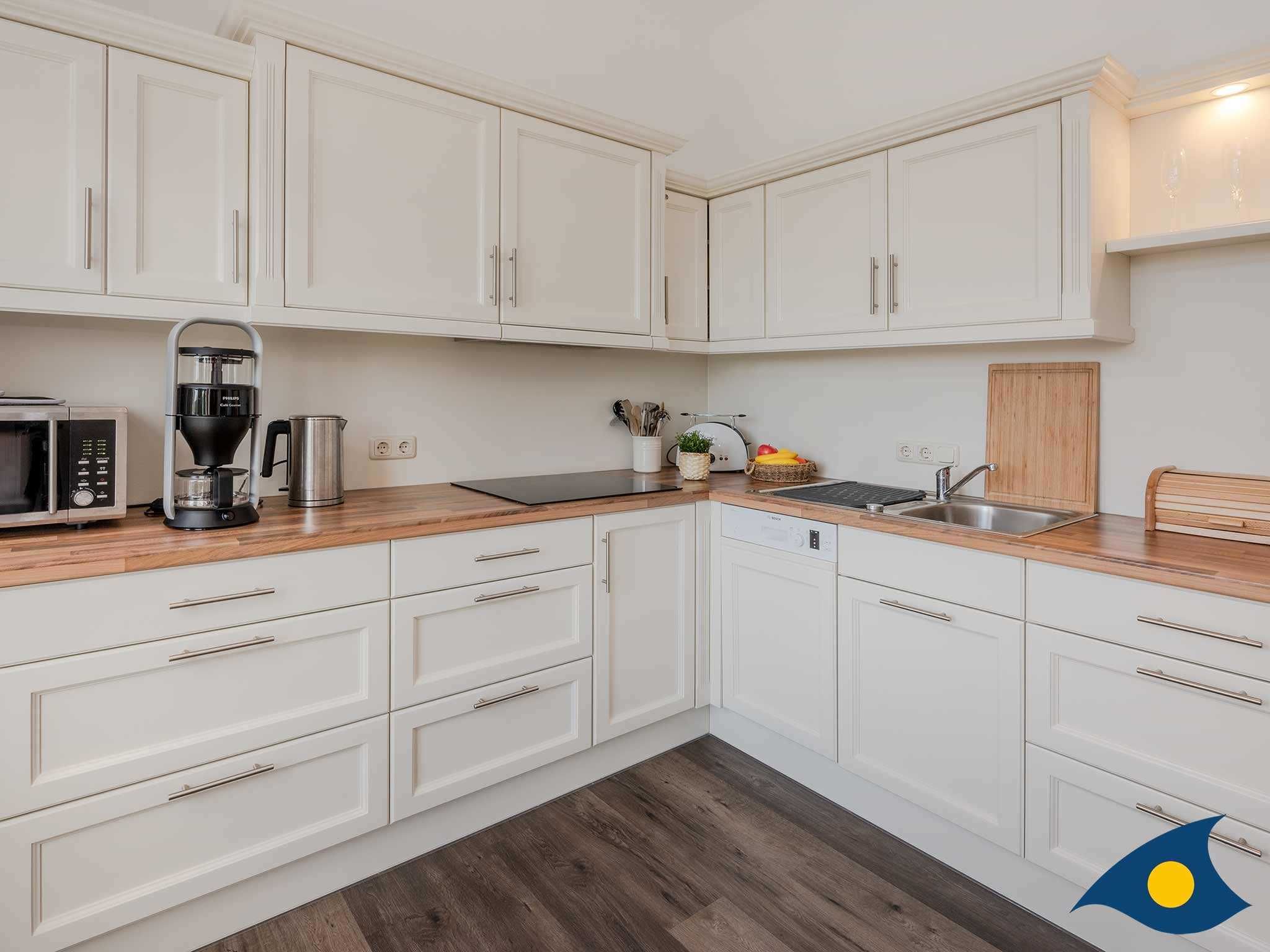 Der Panoramablick auf das Meer und den weißen Sandstrand wird Sie verzaubern. In dem großzügigen, offen gestalteten 2-Zimmer-Appartement erwartet Sie ein gemütlicher Flur. Dieser dient als Esszimmer, Garderobe und zentraler Mittelpunkt der Wohnung. Das Schlafzimmer mit einem bequemen Doppelbett und viel Stauraum für Ihre persönlichen Sachen sowie ein Badezimmer mit WC und Dusche sind ebenfalls vorhanden. Die separate Küche lädt zum gemeinsamen Kochen ein.