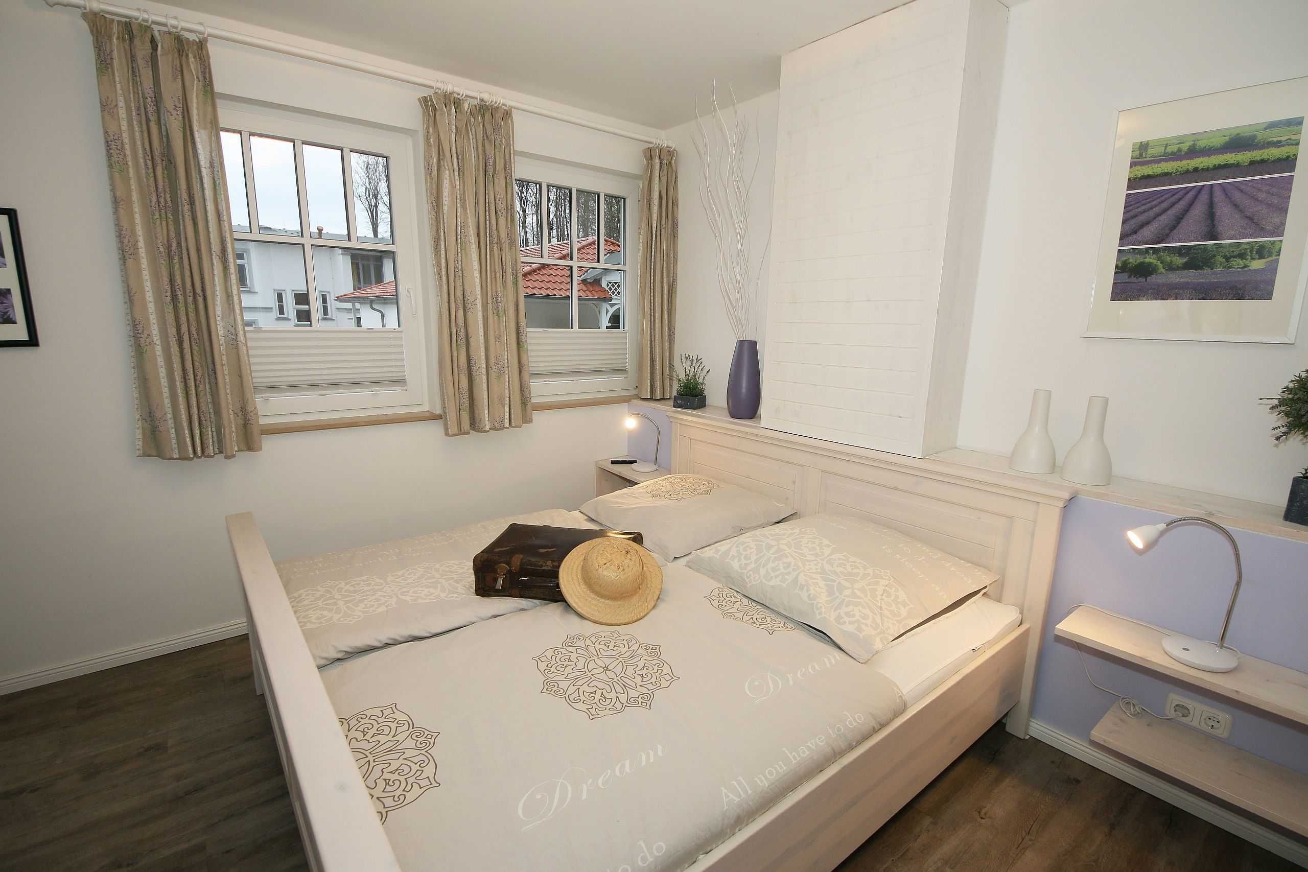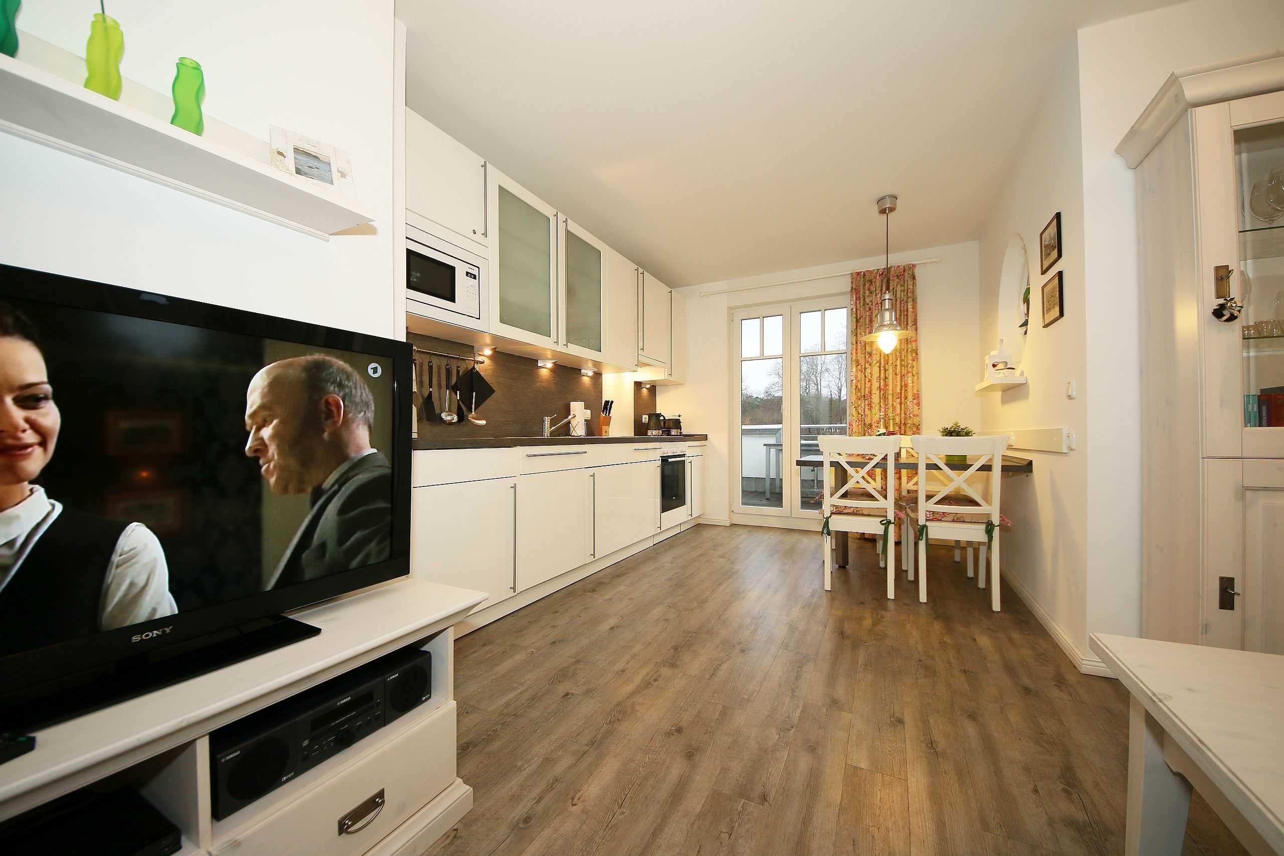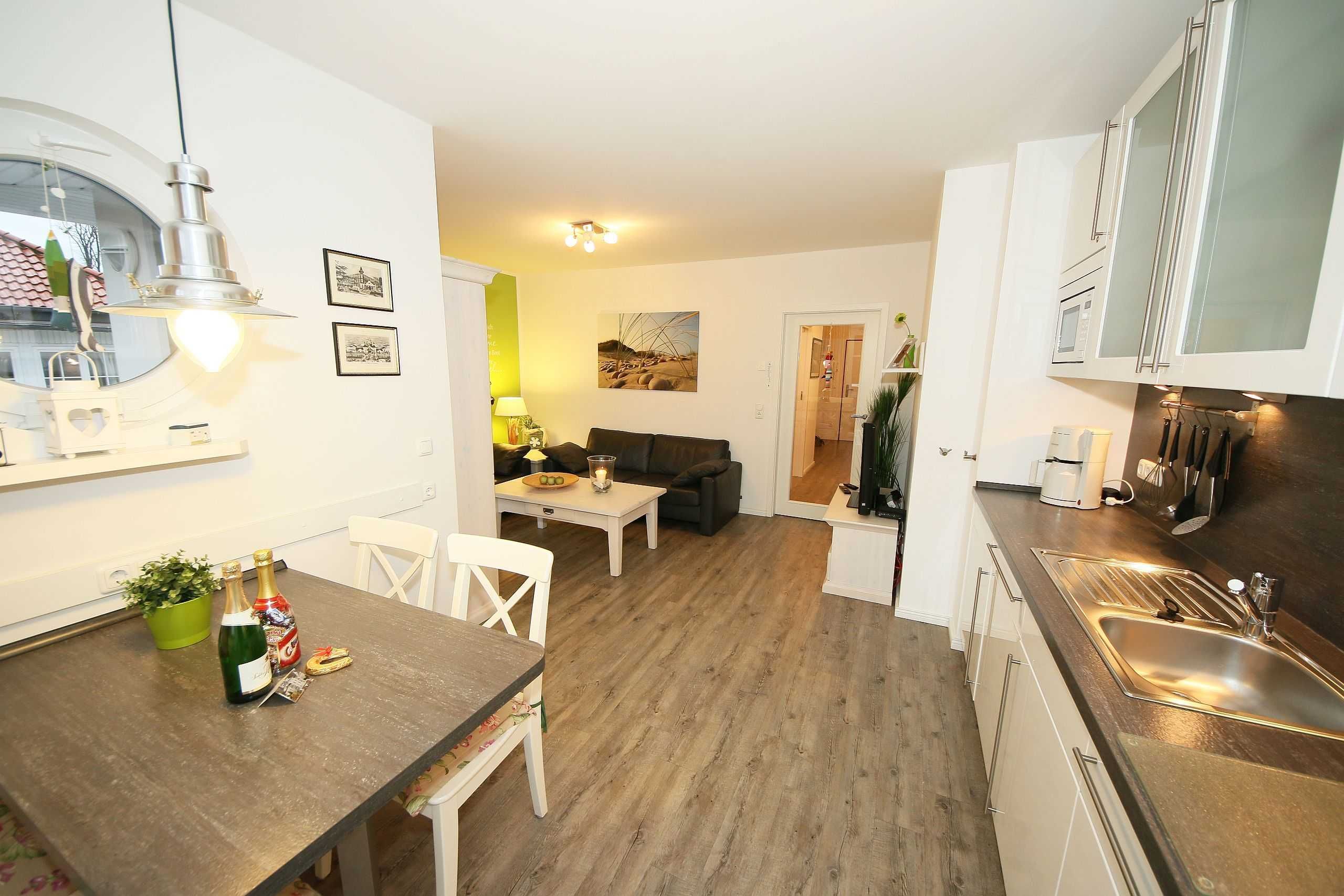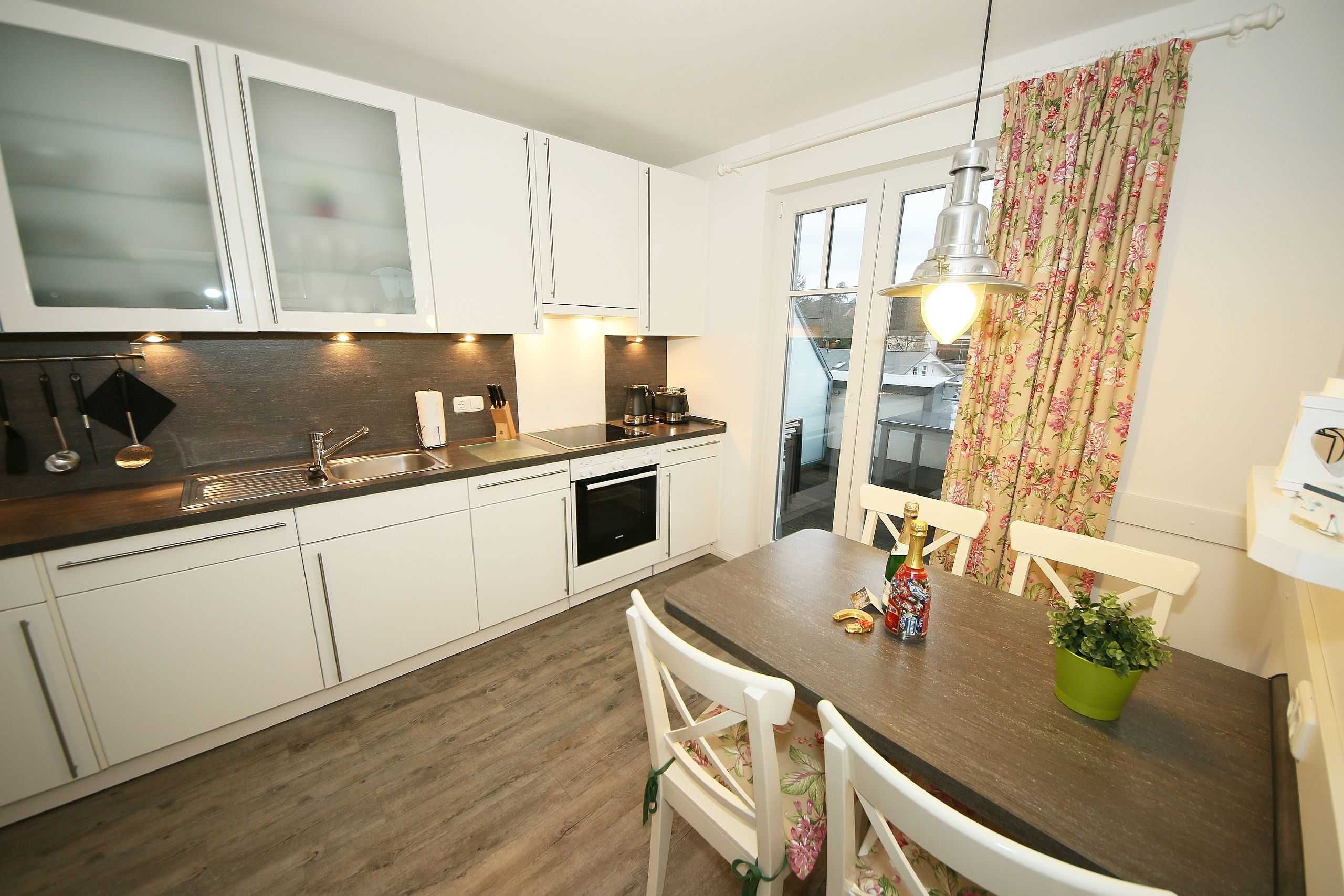 Die liebevoll im Landhausstil eingerichtete 67 qm große Nichtraucher-Wohnung befindet sich in der 3. Etage der Villa Rosa. Als Dreiraumwohnung bietet Sie Ihnen ausreichend Platz für 2 bis 4 Erwachsene und 1 Kleinkind (bis 3 Jahre im Kinderreisebett). Die hochwertige Ausstattung der Wohnung garantiert einen unbeschwerten Urlaub. Die großzügige Küchenzeile bietet Ihnen eine Geschirrspülmaschine, Backofen mit Ceranfeld, Mikrowelle, Kühlschrank mit Gefrierfach, Kaffeemaschine, Senseo Pad-Maschine, Toaster, Wasserkocher, Eierkocher, Mixer, diverse Küchenhelfer sowie ein gemütlicher Essplatz mit 4 Stühlen. Bei schönem Wetter können Sie zusätzlich die Dachterrasse (Süd/West und Nord/West) zu einem Essplatz umfunktionieren. Diese wird durch einen eigenen Strandkorb und eingeschränktem Meerblick abgerundet. Der angrenzende und geschmackvoll eingerichtete Wohnbereich mit 2 Ledercouchen und Couchtisch, Leselampe, Sideboard mit 40 Full-HD Smart-TV mit Blu-Ray-Player, Musikanlage mit DAB-Radio sowie Glasvitrine runden die Gemütlichkeit ab. Auch auf einen Internetzugang (WLAN) brauchen Sie nicht verzichten. Dieser ist für Sie inklusive. Alle Räumlichkeiten wurden mit einem hochwertigen Vinylboden, Fliesen sowie Fußbodenheizung versehen. Im großen Schlafzimmer mit Doppelbett (1,80 m x 2,00 m), 7-Zonen-Kaltschaummatratzen, verstellbaren Lattenrosten, Nachttischablagen und Kleiderschrank finden Sie zusätzlich ein TV-Gerät. Von hier gelangen Sie auch auf die Dachterrasse. Das kleine Schlafzimmer ist mit einem Kojenbett (ausziehbar bis zu einer Liegefläche von 1,60 m x 2,00 m), 7-Zonen-Kaltschaummatratze, Nachttischablage und Kleiderschrank ausgestattet. Für einen ruhigen Schlaf dienen die Verdunklungsmöglichkeiten. Der Mittelpunkt des Bades ist ein moderner Waschplatz, ein WC, eine ebenerdige Dusche (0,90m x 1,40m), Fön und eine Waschmaschine (inklusive). Ein eigener Tiefgaragenparkplatz (Nr.16, Einfahrtshöhe 2,00m) steht Ihnen inklusive zur Verfügung. Im Untergeschoss finden Sie zudem einen großen abschließbaren Fahrradraum sowie einen Extraraum für Kinder- und Bollerwagen. Der Fahrstuhl bringt Sie bequem zur Wohnung. Im Erdgeschoss der Villa Rosa finden Sie einen kleinen kostenpflichtigen Spa-Bereich mit Sauna, Dampfsauna, Dusche und Ruheraum. Ab einem Aufenthalt von 5 Nächten, sind 2 Saunamarken in der Zeit vom 01. November bis 30. April für Sie inklusive. Die Wertmarken können Sie auf Nachfrage während Ihres Urlaubes in der Zimmervermittlung erwerben. Der kleine Garten hinter dem Haus steht allen Gästen zur Verfügung. Hier gibt es einen Grillplatz und einen kleinen Spielplatz. 1x stabiles Kinderbett (1,20 m x 0,60 m, ohne Bettinlett) und 1x Kinderhochstuhl sind für unsere kleinen Gäste inklusive. Haustiere sind nicht erlaubt. Die Erstausstattung eines Wäschepaketes (komplette Bettwäsche, 1 Duschhandtuch, 1 kleines Handtuch) können Sie bis 14 Tage vor Anreise gegen einen Aufpreis dazu buchen oder durch eigene ergänzen. Ab 2 gebuchten Paketen erhalten Sie einmalig 1 Geschirrhandtuch und 1 Duschvorleger hinzu.
