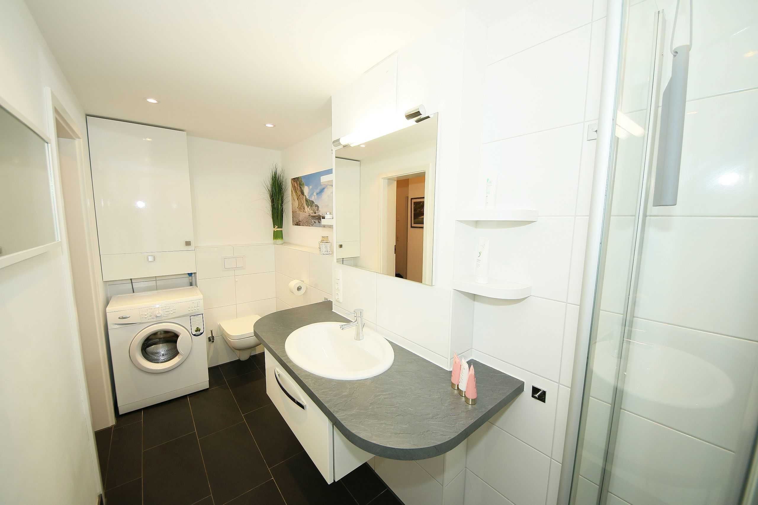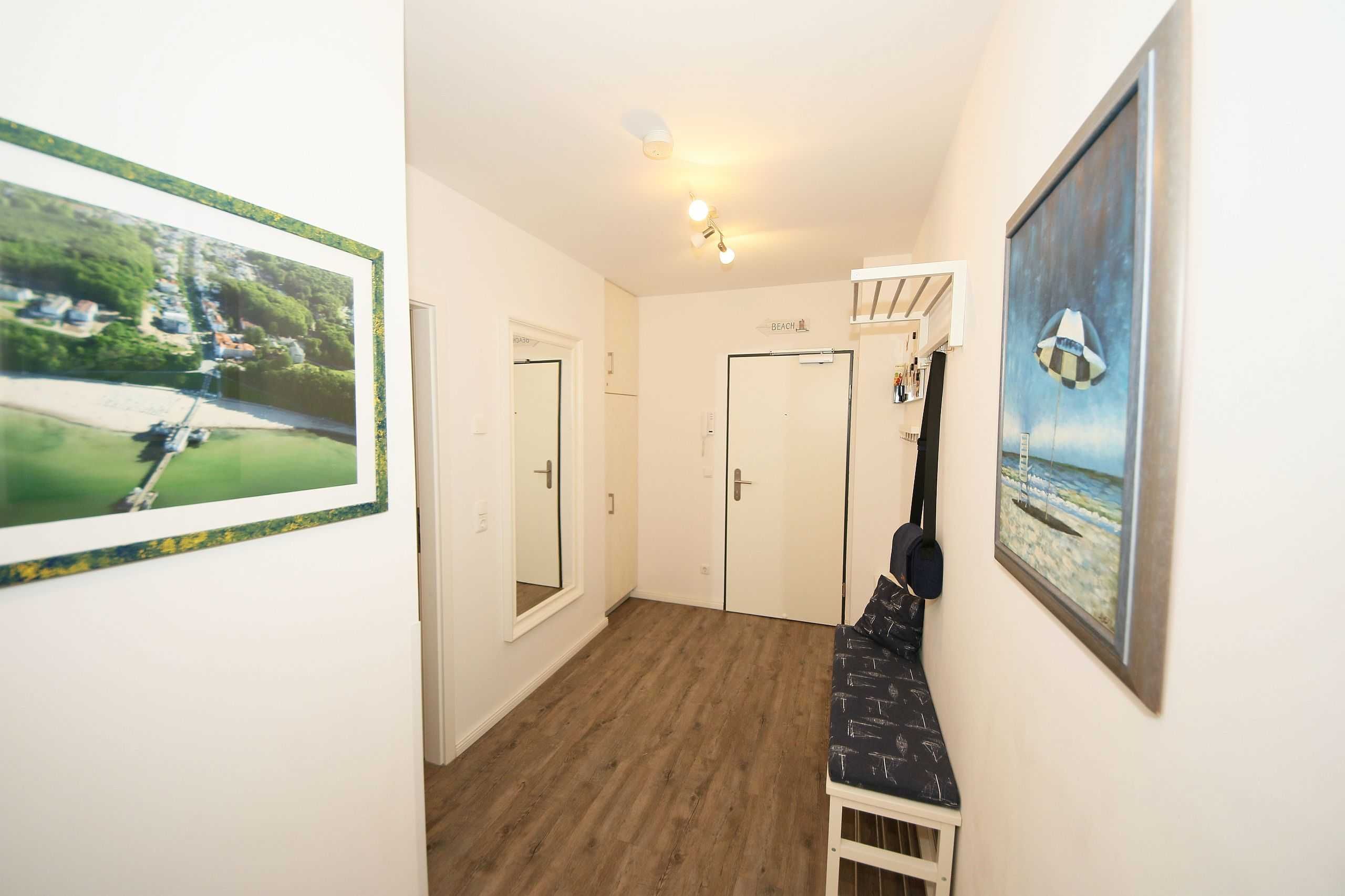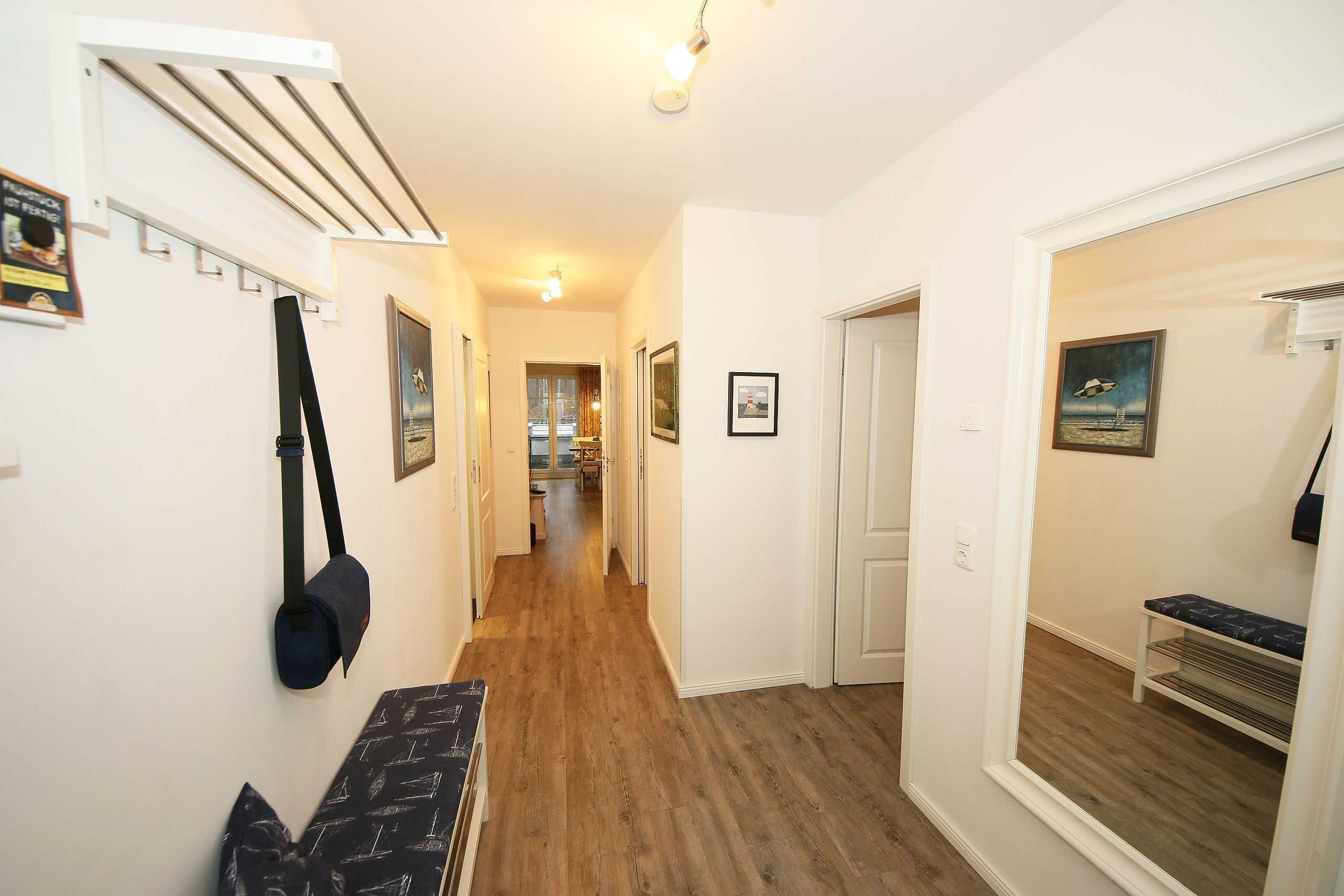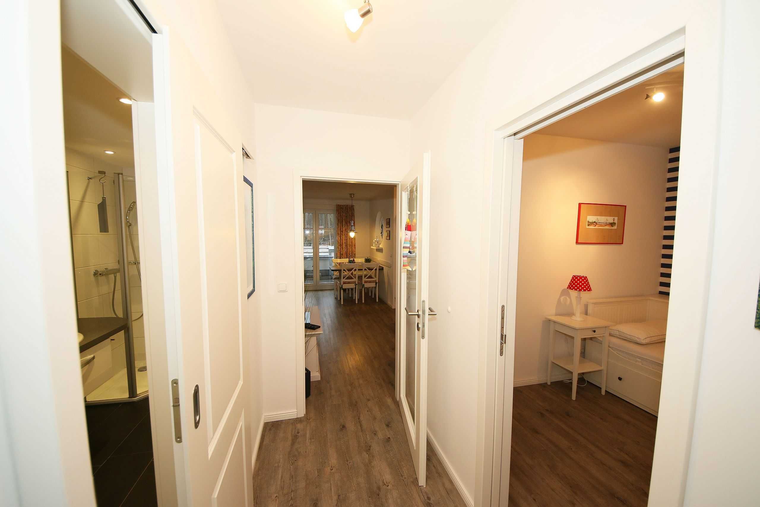 Die liebevoll im Landhausstil eingerichtete 67 qm große Nichtraucher-Wohnung befindet sich in der 3. Etage der Villa Rosa. Als Dreiraumwohnung bietet Sie Ihnen ausreichend Platz für 2 bis 4 Erwachsene und 1 Kleinkind (bis 3 Jahre im Kinderreisebett). Die hochwertige Ausstattung der Wohnung garantiert einen unbeschwerten Urlaub. Die großzügige Küchenzeile bietet Ihnen eine Geschirrspülmaschine, Backofen mit Ceranfeld, Mikrowelle, Kühlschrank mit Gefrierfach, Kaffeemaschine, Senseo Pad-Maschine, Toaster, Wasserkocher, Eierkocher, Mixer, diverse Küchenhelfer sowie ein gemütlicher Essplatz mit 4 Stühlen. Bei schönem Wetter können Sie zusätzlich die Dachterrasse (Süd/West und Nord/West) zu einem Essplatz umfunktionieren. Diese wird durch einen eigenen Strandkorb und eingeschränktem Meerblick abgerundet. Der angrenzende und geschmackvoll eingerichtete Wohnbereich mit 2 Ledercouchen und Couchtisch, Leselampe, Sideboard mit 40 Full-HD Smart-TV mit Blu-Ray-Player, Musikanlage mit DAB-Radio sowie Glasvitrine runden die Gemütlichkeit ab. Auch auf einen Internetzugang (WLAN) brauchen Sie nicht verzichten. Dieser ist für Sie inklusive. Alle Räumlichkeiten wurden mit einem hochwertigen Vinylboden, Fliesen sowie Fußbodenheizung versehen. Im großen Schlafzimmer mit Doppelbett (1,80 m x 2,00 m), 7-Zonen-Kaltschaummatratzen, verstellbaren Lattenrosten, Nachttischablagen und Kleiderschrank finden Sie zusätzlich ein TV-Gerät. Von hier gelangen Sie auch auf die Dachterrasse. Das kleine Schlafzimmer ist mit einem Kojenbett (ausziehbar bis zu einer Liegefläche von 1,60 m x 2,00 m), 7-Zonen-Kaltschaummatratze, Nachttischablage und Kleiderschrank ausgestattet. Für einen ruhigen Schlaf dienen die Verdunklungsmöglichkeiten. Der Mittelpunkt des Bades ist ein moderner Waschplatz, ein WC, eine ebenerdige Dusche (0,90m x 1,40m), Fön und eine Waschmaschine (inklusive). Ein eigener Tiefgaragenparkplatz (Nr.16, Einfahrtshöhe 2,00m) steht Ihnen inklusive zur Verfügung. Im Untergeschoss finden Sie zudem einen großen abschließbaren Fahrradraum sowie einen Extraraum für Kinder- und Bollerwagen. Der Fahrstuhl bringt Sie bequem zur Wohnung. Im Erdgeschoss der Villa Rosa finden Sie einen kleinen kostenpflichtigen Spa-Bereich mit Sauna, Dampfsauna, Dusche und Ruheraum. Ab einem Aufenthalt von 5 Nächten, sind 2 Saunamarken in der Zeit vom 01. November bis 30. April für Sie inklusive. Die Wertmarken können Sie auf Nachfrage während Ihres Urlaubes in der Zimmervermittlung erwerben. Der kleine Garten hinter dem Haus steht allen Gästen zur Verfügung. Hier gibt es einen Grillplatz und einen kleinen Spielplatz. 1x stabiles Kinderbett (1,20 m x 0,60 m, ohne Bettinlett) und 1x Kinderhochstuhl sind für unsere kleinen Gäste inklusive. Haustiere sind nicht erlaubt. Die Erstausstattung eines Wäschepaketes (komplette Bettwäsche, 1 Duschhandtuch, 1 kleines Handtuch) können Sie bis 14 Tage vor Anreise gegen einen Aufpreis dazu buchen oder durch eigene ergänzen. Ab 2 gebuchten Paketen erhalten Sie einmalig 1 Geschirrhandtuch und 1 Duschvorleger hinzu.