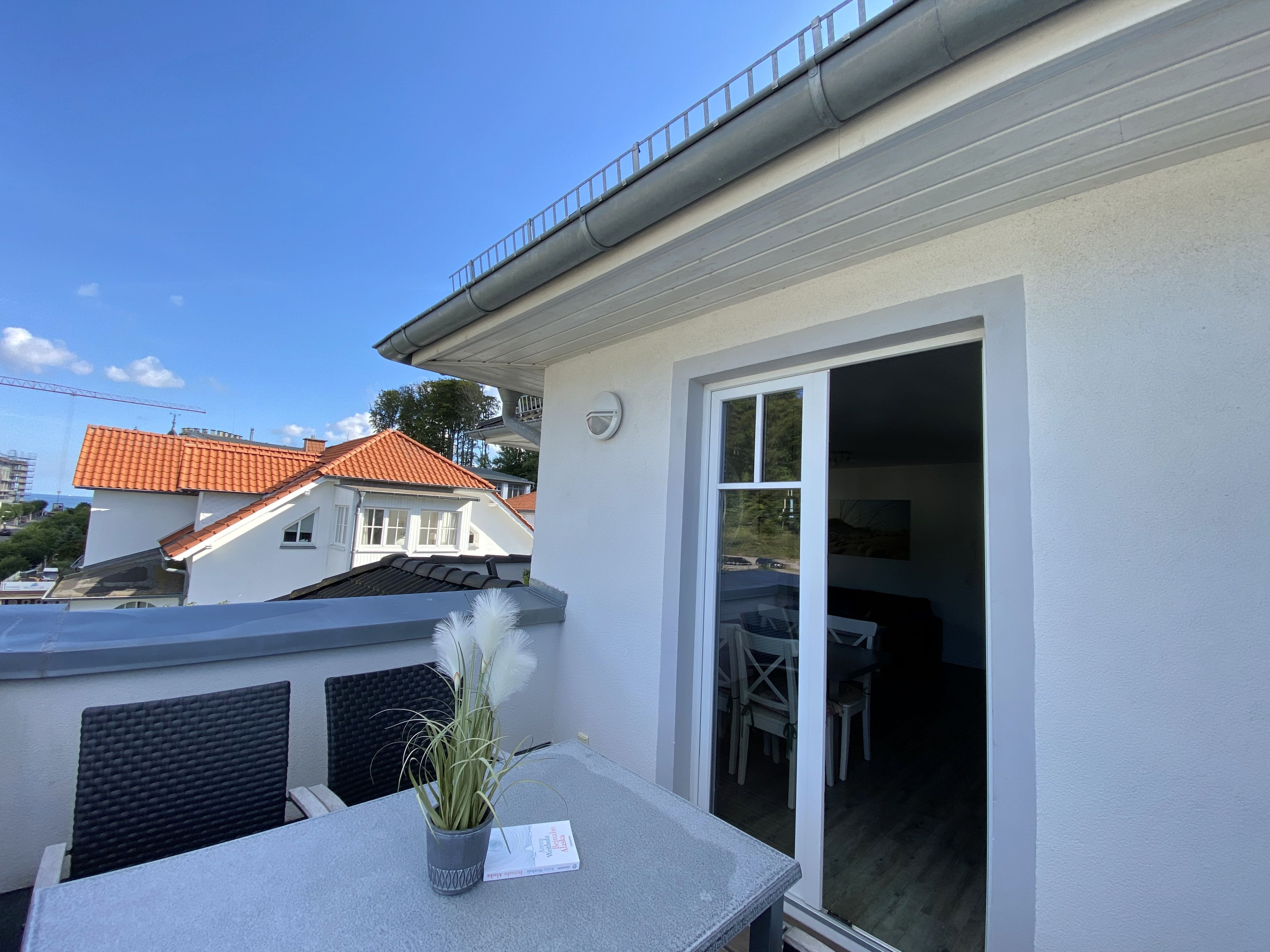 Die Villa Rosa ist ein Apartmenthaus mit 19 Ferienwohnungen, das auf einem 1200 qm großen Hanggrundstück in der bekannten Wilhelmstraße errichtet wurde. Sie fügt sich ein in die Reihe der prachtvollen Villen im Stile der Bäderarchitektur, die den Charme der Straße ausmachen. Zahlreiche kleine Läden und Restaurants laden zum Flanieren ein. Von den zwei Dachterrassen die zur Wohnung gehören, genießen Sie einen Rundumblick vom Selliner See im Süden über die Wilhelmstraße und den Friedensberg bis zum Meer im Norden.