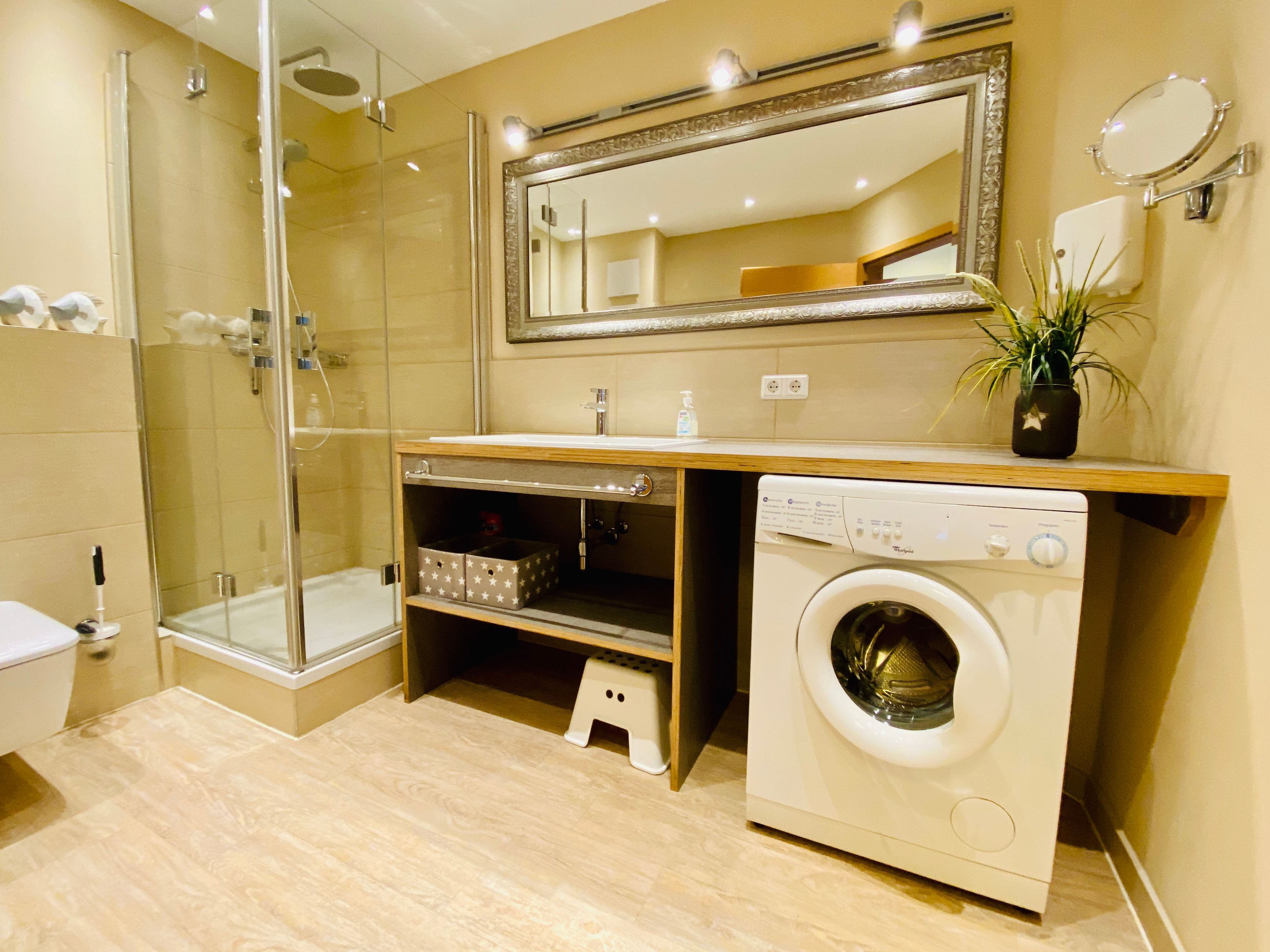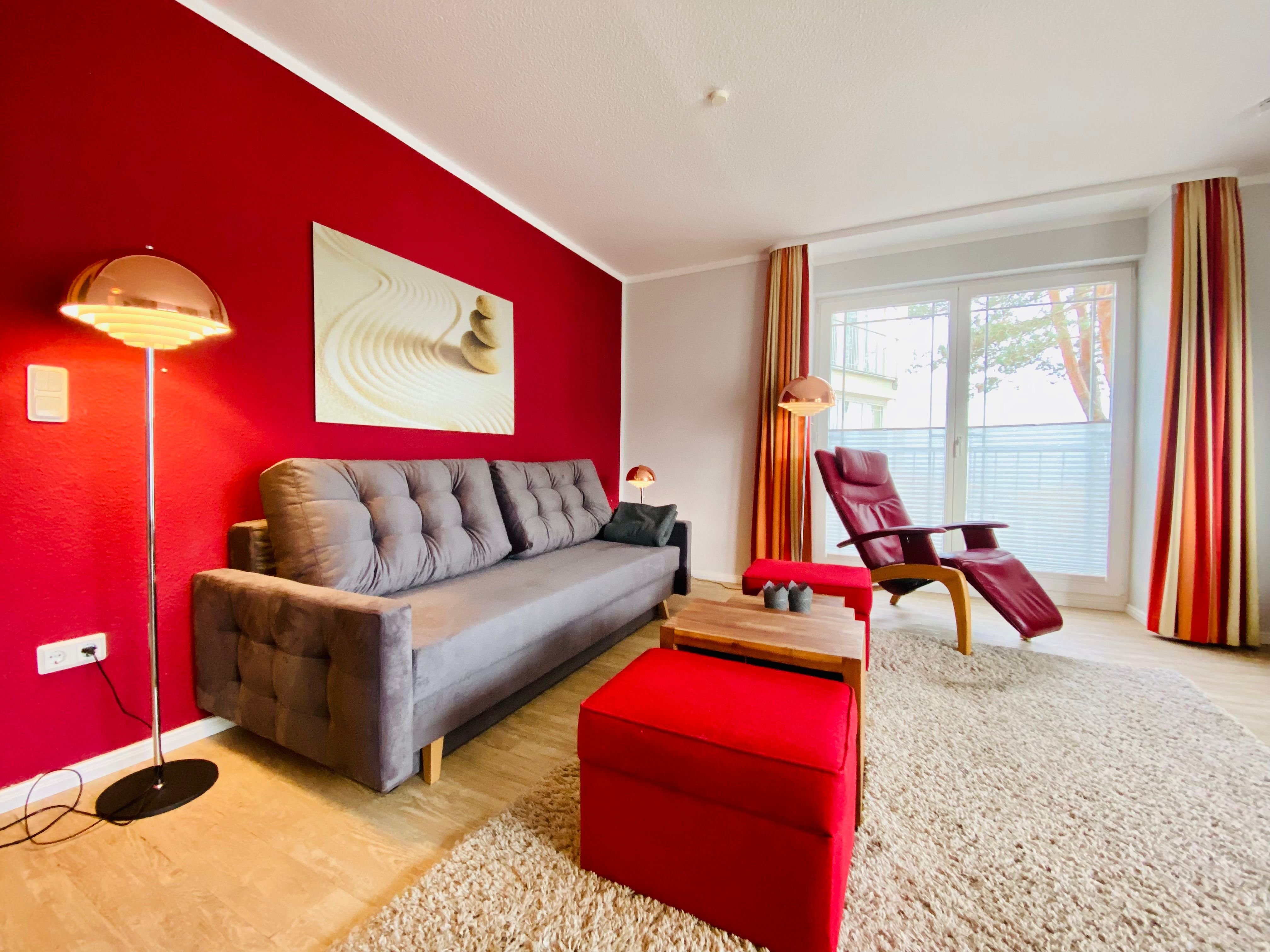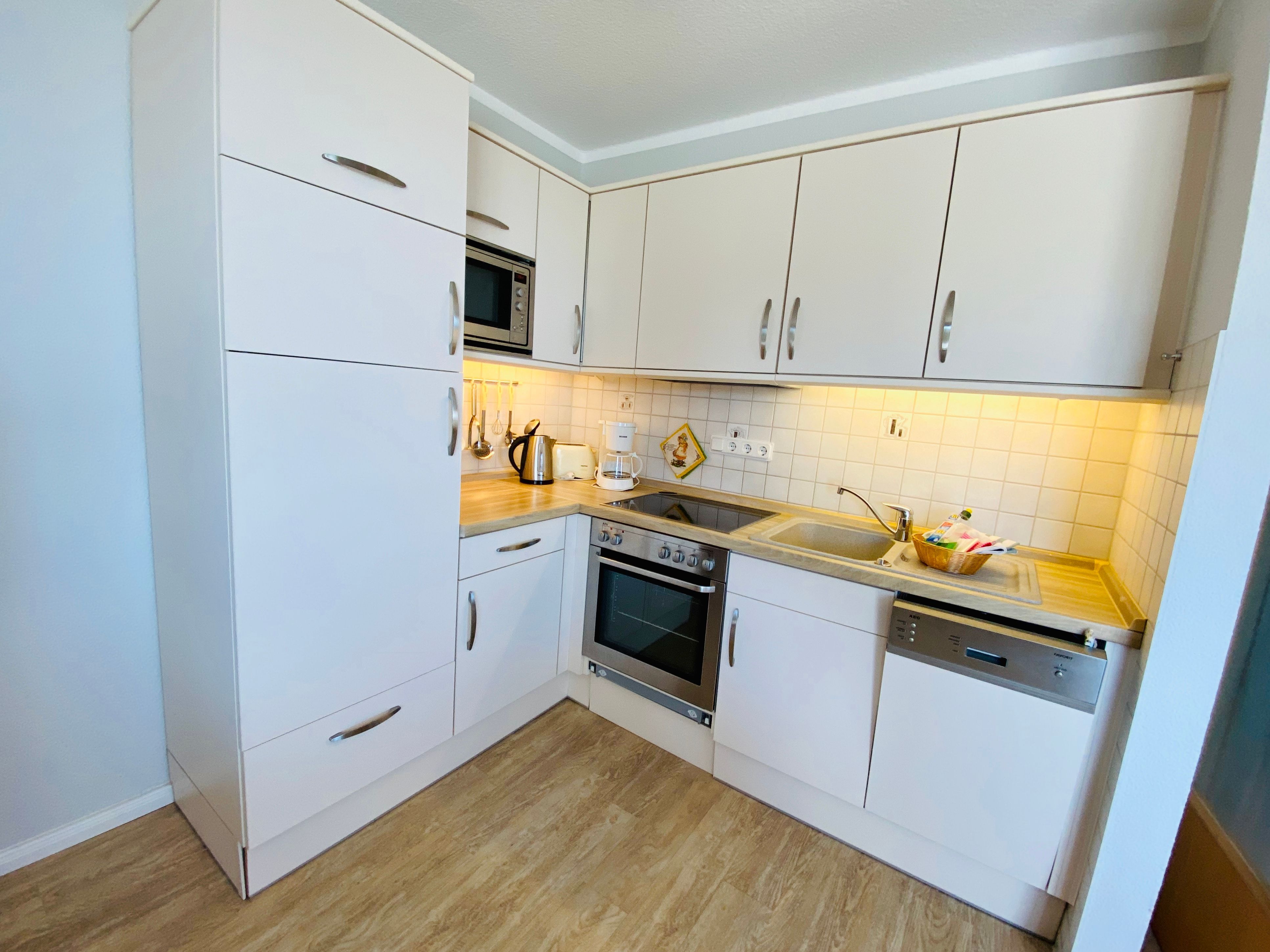 Die schöne 2 Raumwohnung Nr. 9 mit 65m² befindet sich im ersten Obergeschoss des Hauses und ist über das Treppenhaus zu erreichen. Sie ist komplett modernisiert und bietet Platz für 2 bis 4 Personen (Schlafcouch im Wohnzimmer). Die hochwertige Möblierung und viele geschmackvolle Details schaffen das perfekte Urlaubsfeeling. Aus allen Zimmern Seeblick und natürlich vom Balkon. Die Komplettküche ist klug in den Wohnraum inegriert, so dass Kochen zum Familienerlebnis werden kann. Das Bad überzeugt durch eine schicke Echtglasdusche und die Waschmaschine (Gebühr). Die gesamte Ferienwohnung ist mit pflegleichtem Designbelag ausgelegt.