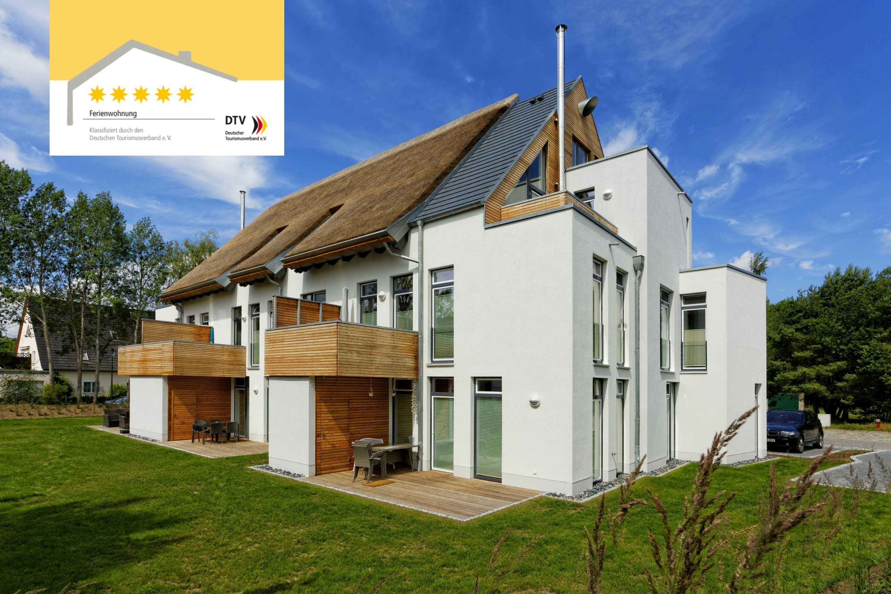 VAKON Ostseeland in Karlshagen ist eine in Mecklenburg-Vorpommern einzigartige 5-Sterne-Ferienhaus-Anlage bestehend aus 42 großzügigen, schilfrohrgedeckten Strandhäusern mit bis zu 220 m² Wohnfläche und 26 Ferienwohnungen mit bis zu ca. 180 m² Wohnfläche. Dieses exklusive, 2016 erbaute Appartementhaus mit 8 Wohneinheiten ist ca. 4 Gehminuten vom Strand entfernt. Die Wohnungen verfügen über Waschmaschine, Safe, kostenloses Internet WLAN, Terrasse oder Balkon und PKW Stellplatz.
